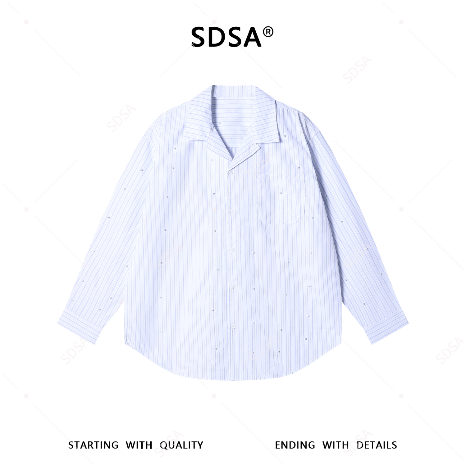 SDSA男装2026新款高贵轻奢简约细条纹长袖衬衫立体珠子装饰百搭
