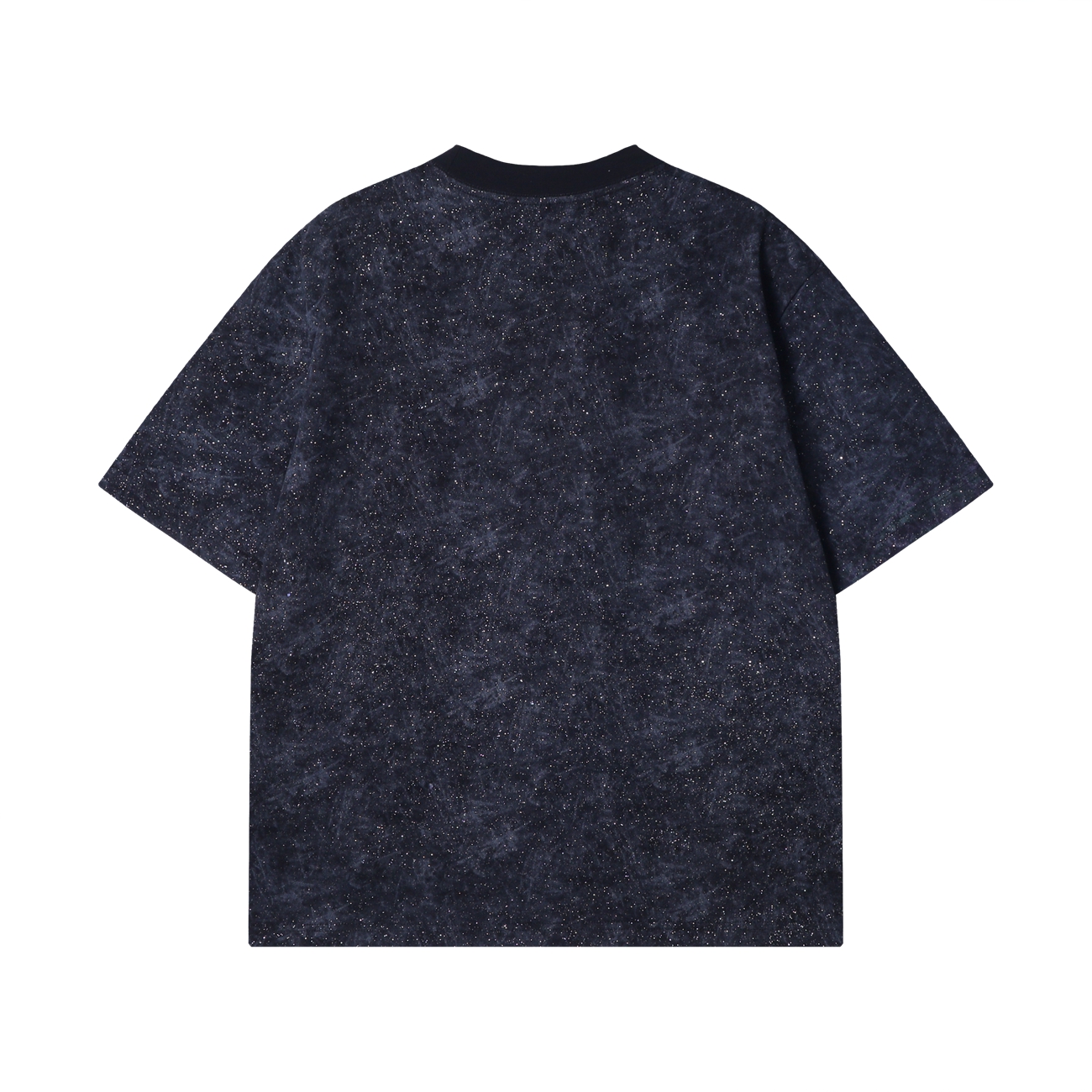 T2639夏季高级感新款扎染绒面印花字母圆领短袖T恤宽松潮流套头上衣