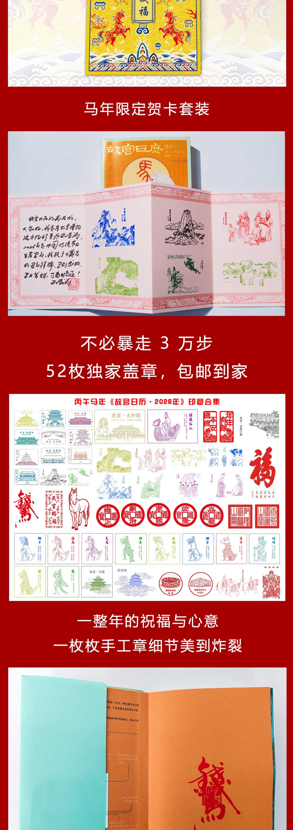 故宫日历2026 马年盖章版 ,故宫正版,手工盖章51枚+骑缝章1枚,原故宫书画修复专家王恒涛亲刻十大名画+亲创马年贺卡!祝丙午马年,马到成功!【72小时发货】