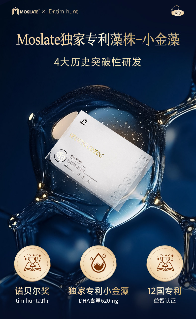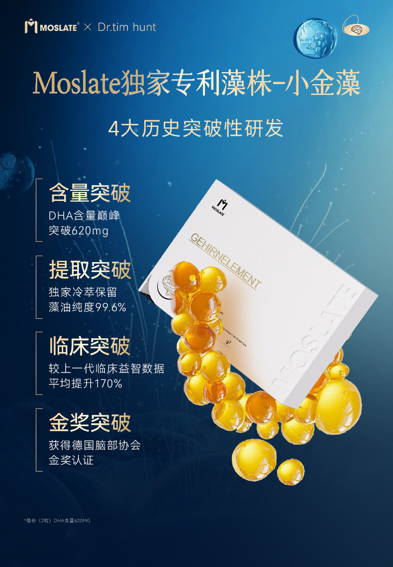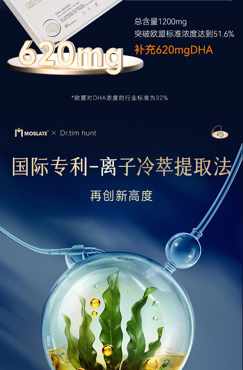 【焕脑金奖】Moslate小金藻DHA软胶囊 620mg 专利藻油 青少年儿童
