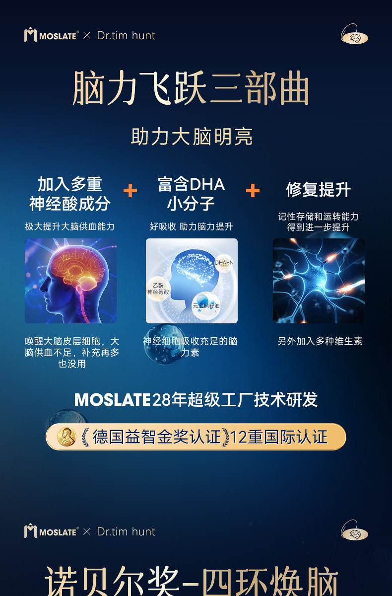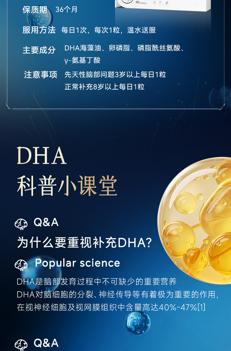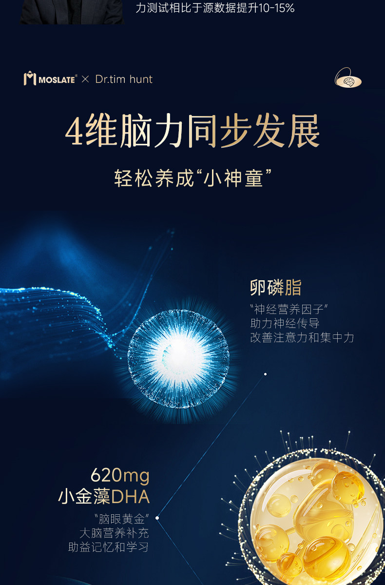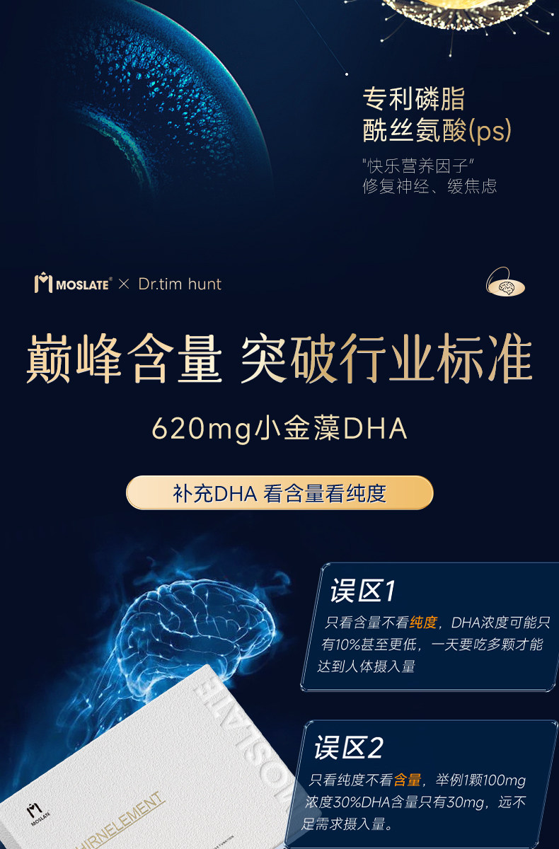 【焕脑金奖】Moslate小金藻DHA软胶囊 620mg 专利藻油 青少年儿童
