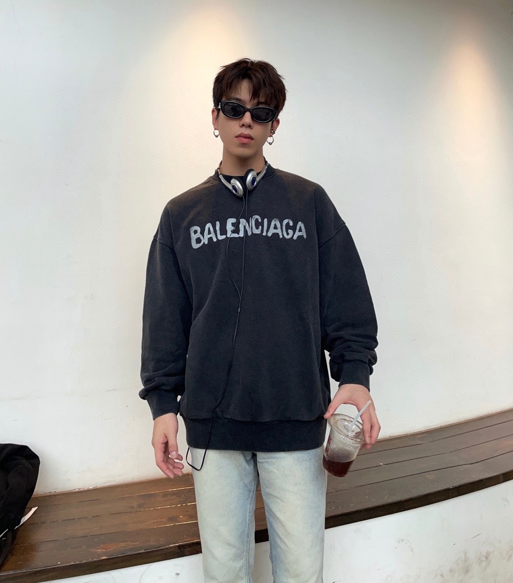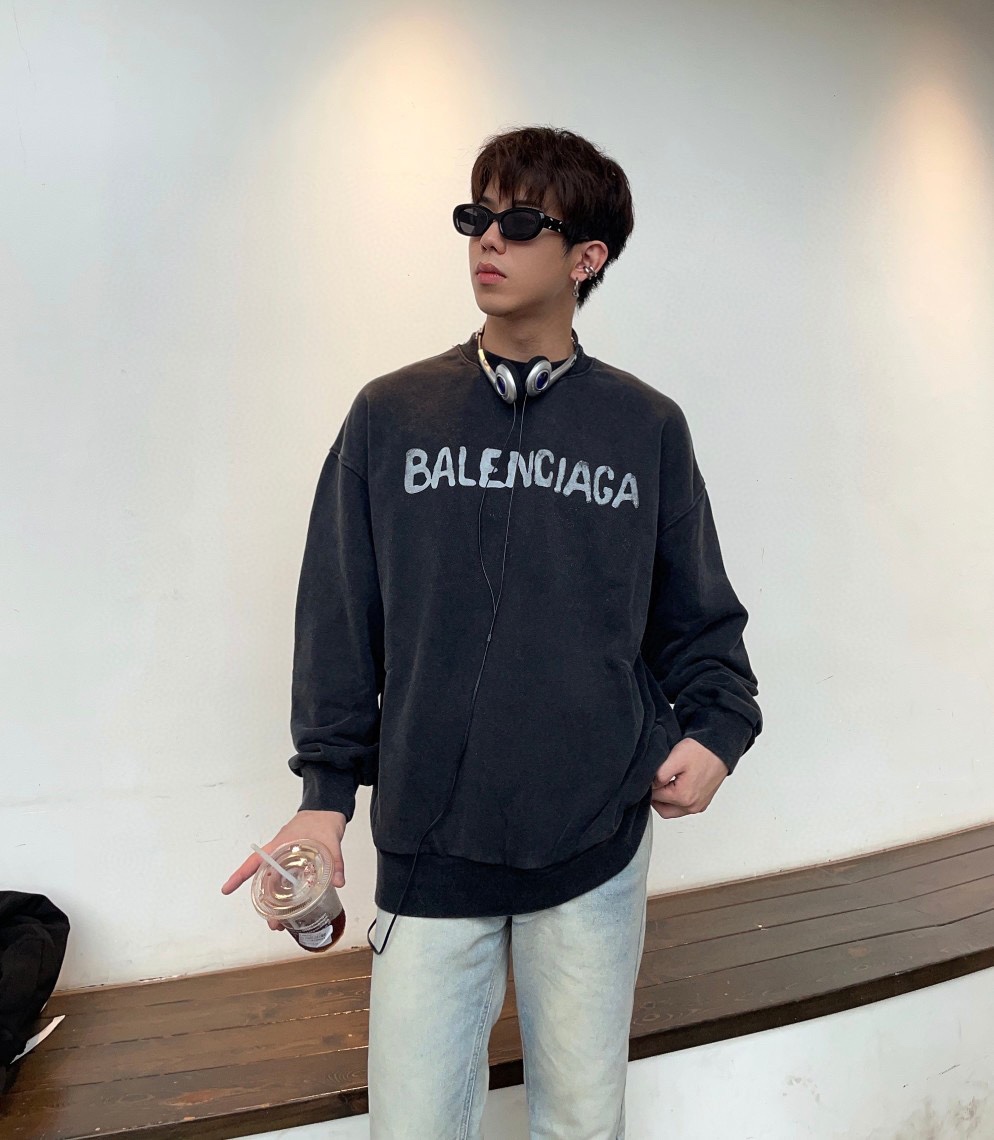 高品质 BAL 巴黎世*  油漆做旧圆领卫衣