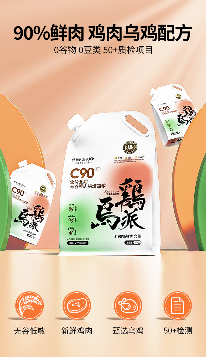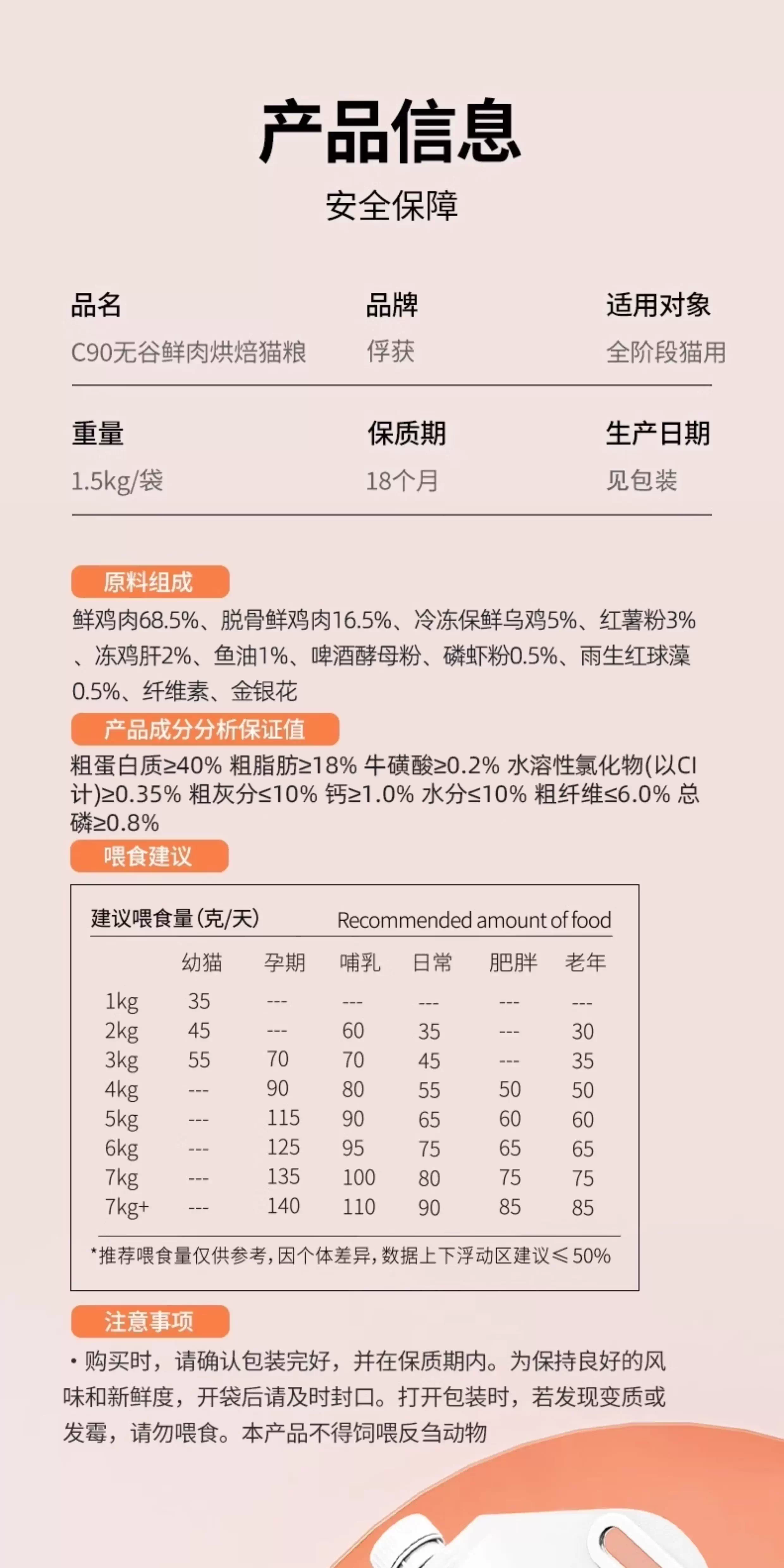 【会员·主粮拼团】俘获C90鸡肉乌鸡配方90%鲜肉低温烘焙猫粮全价全期主粮