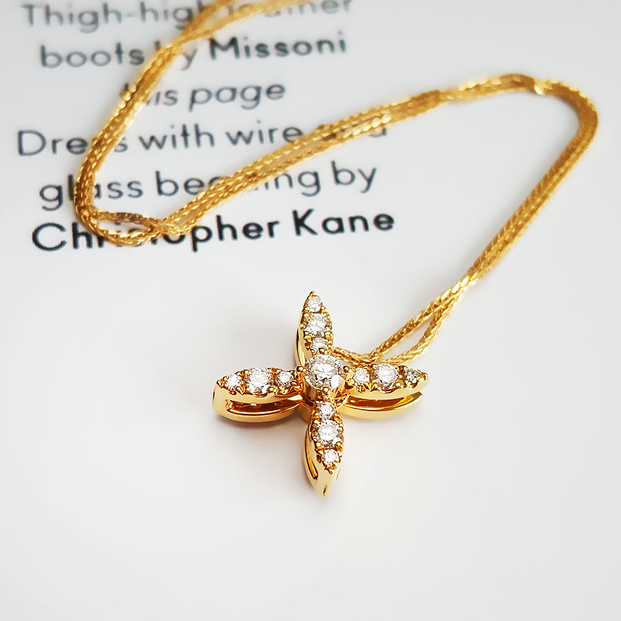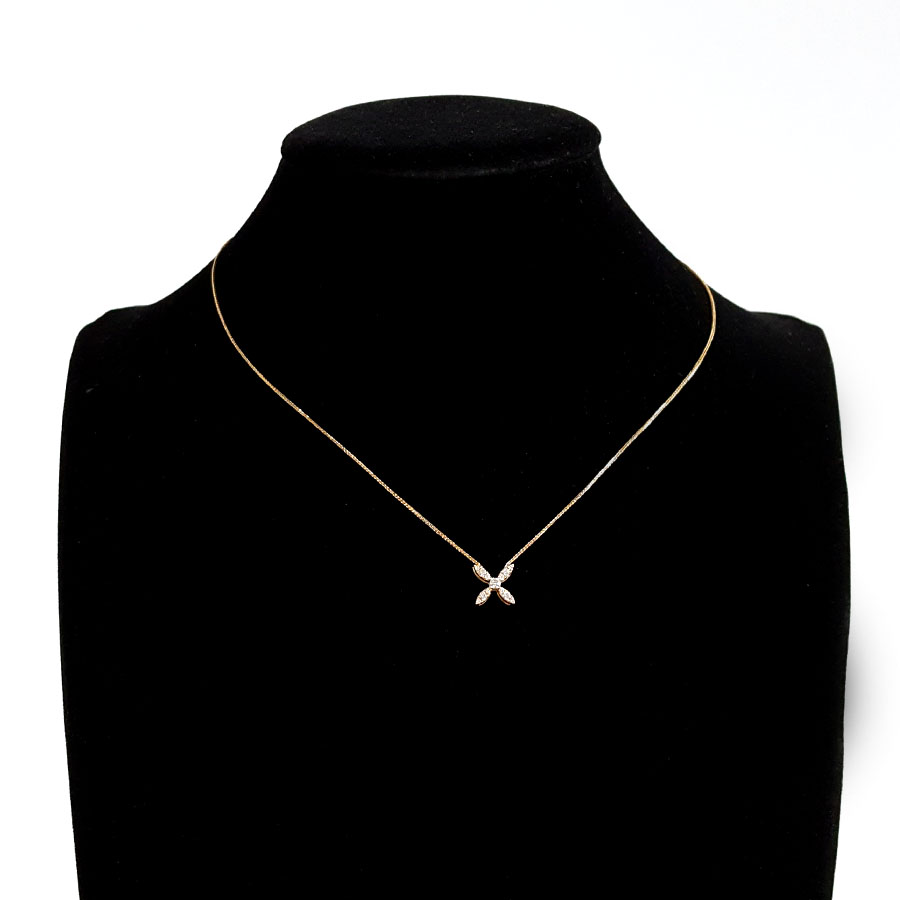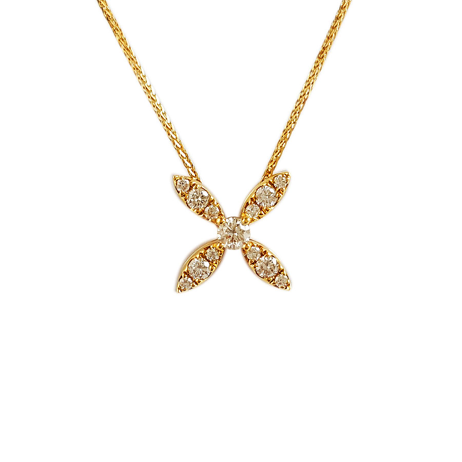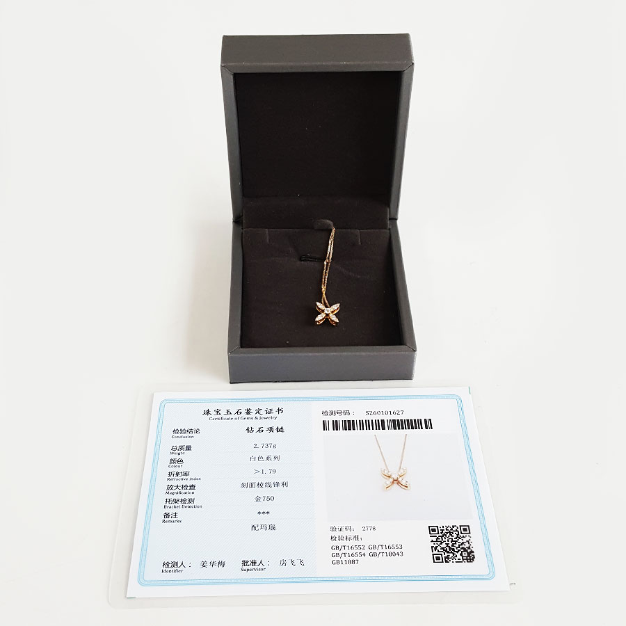 款式 | AU750黄金经典时尚四叶草造型0.073克拉钻石配玛瑙吊坠项链 |