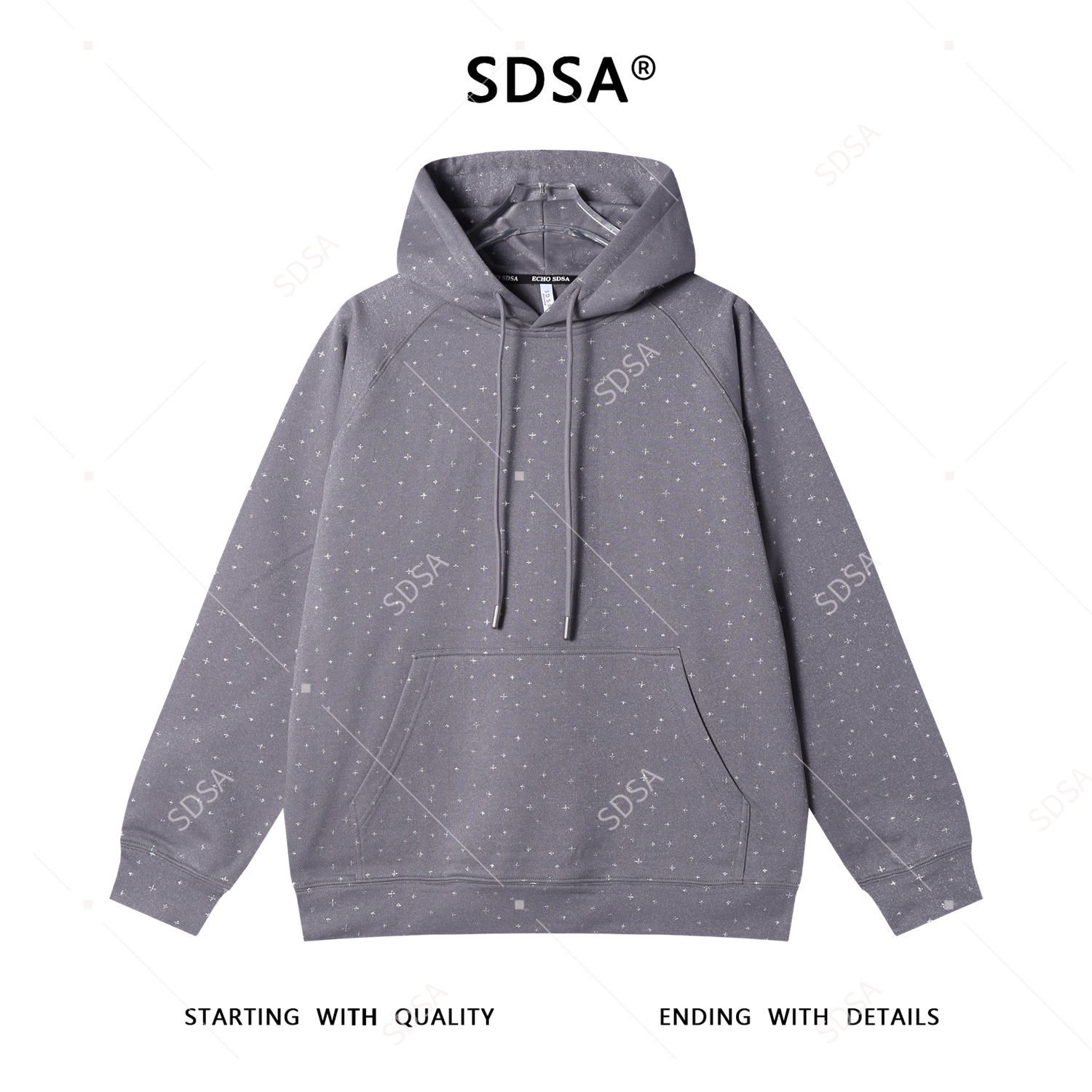 WY1248SDSA男士秋冬新款痞帅男装潮牌洒金满印十字印花抽绳连帽卫衣百搭