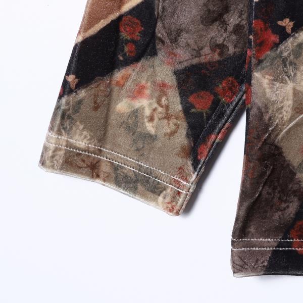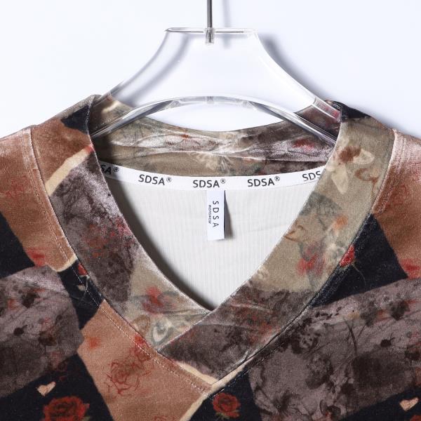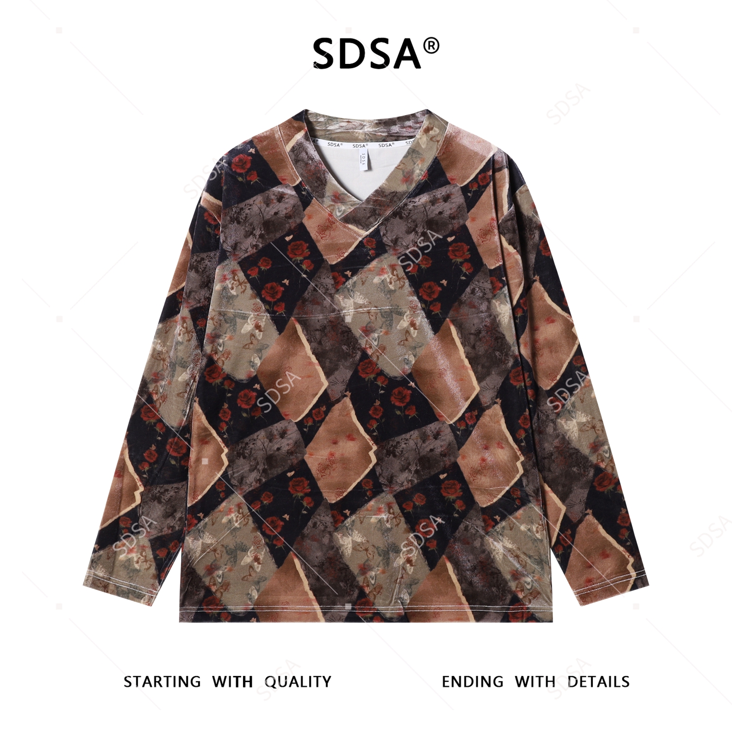 T4915SDSA秋冬新款痞帅男装潮牌绒面拼色玫瑰花交叉V领长袖T恤时尚百搭