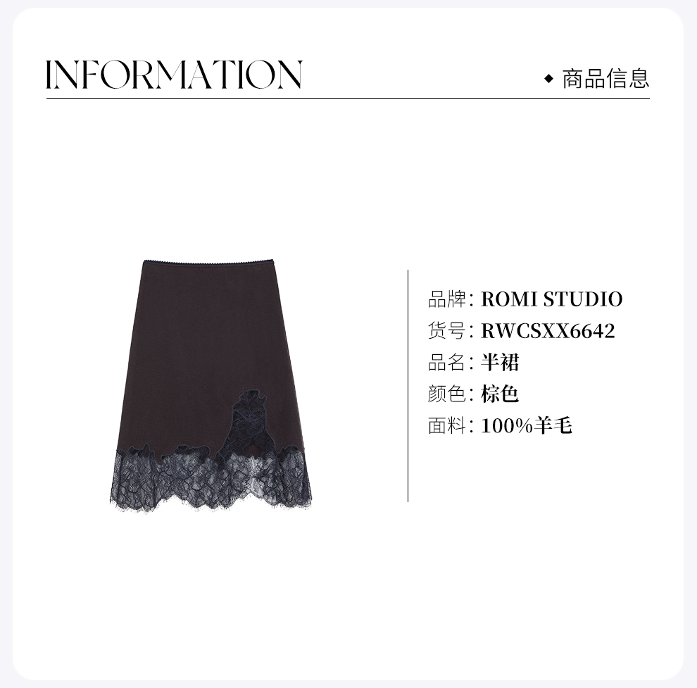 ROMI STUDIO“超细羊毛纱”轻薄刺绣蕾丝小开叉半身裙RWCSXX6642