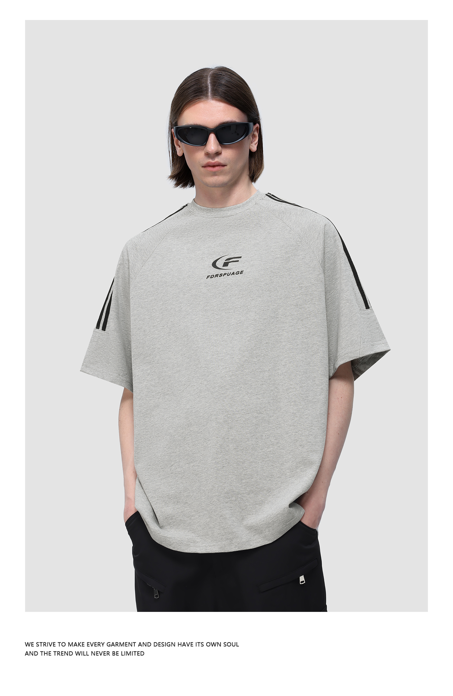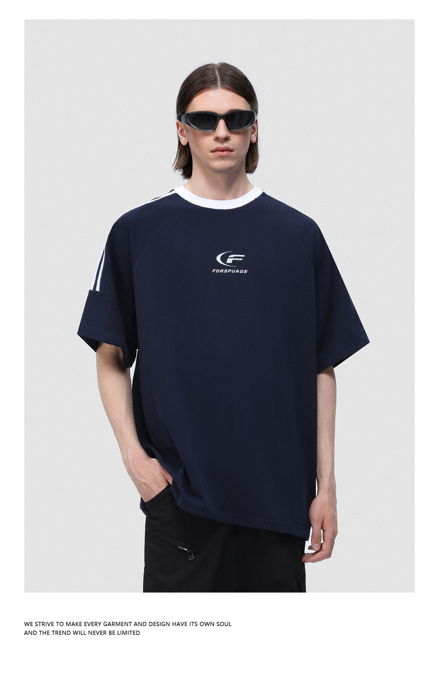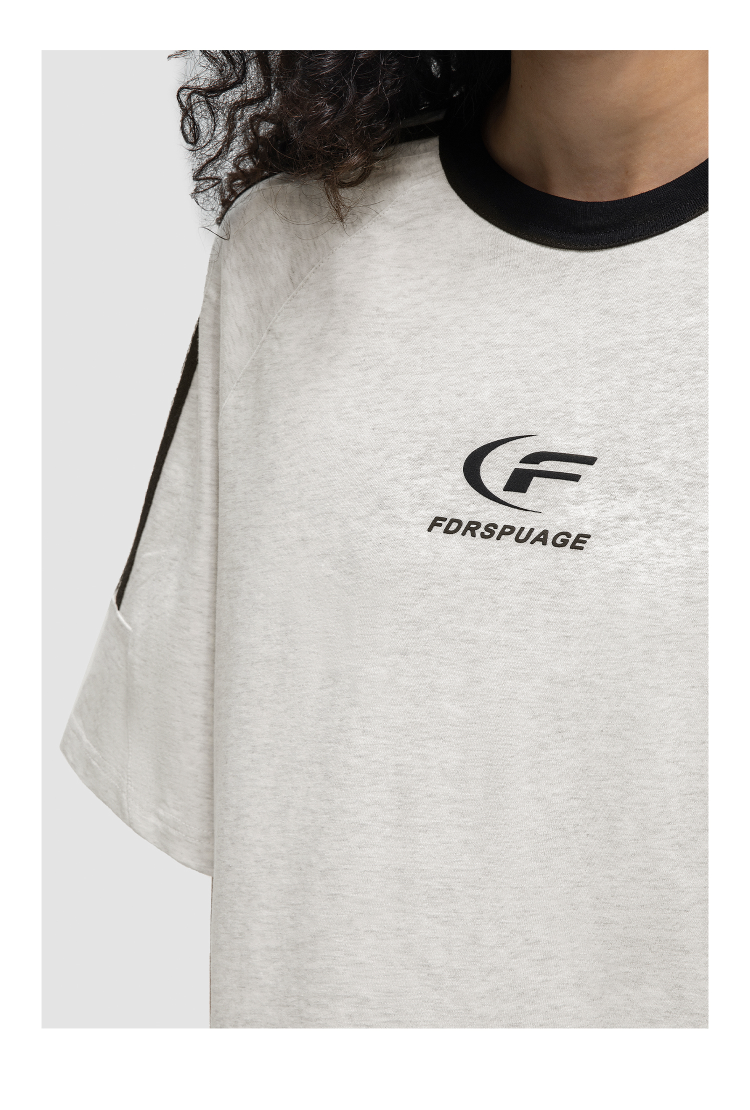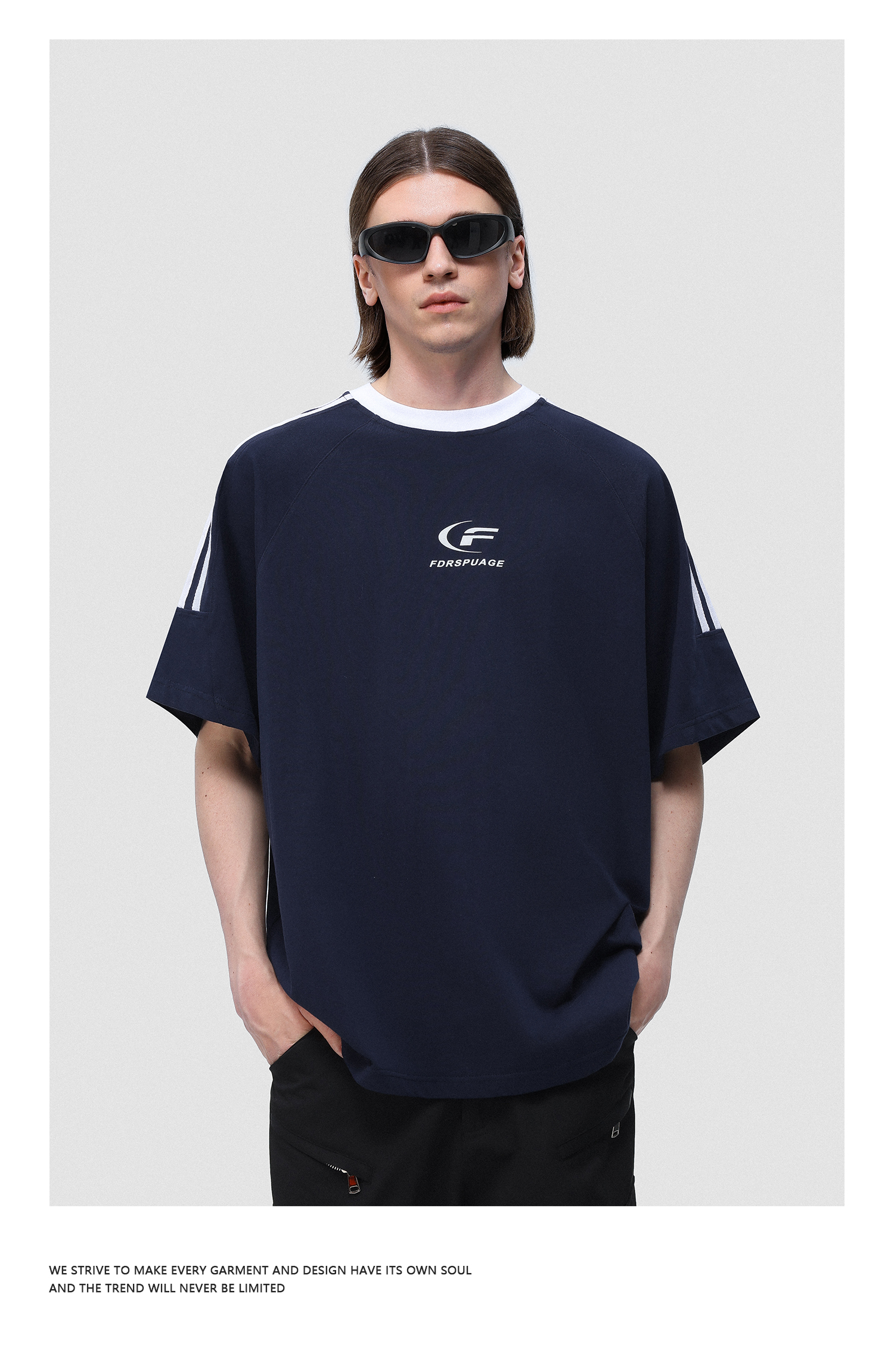 FDR 国潮美式复古拼接插肩短袖t恤男女夏季高街情侣宽松织带上衣