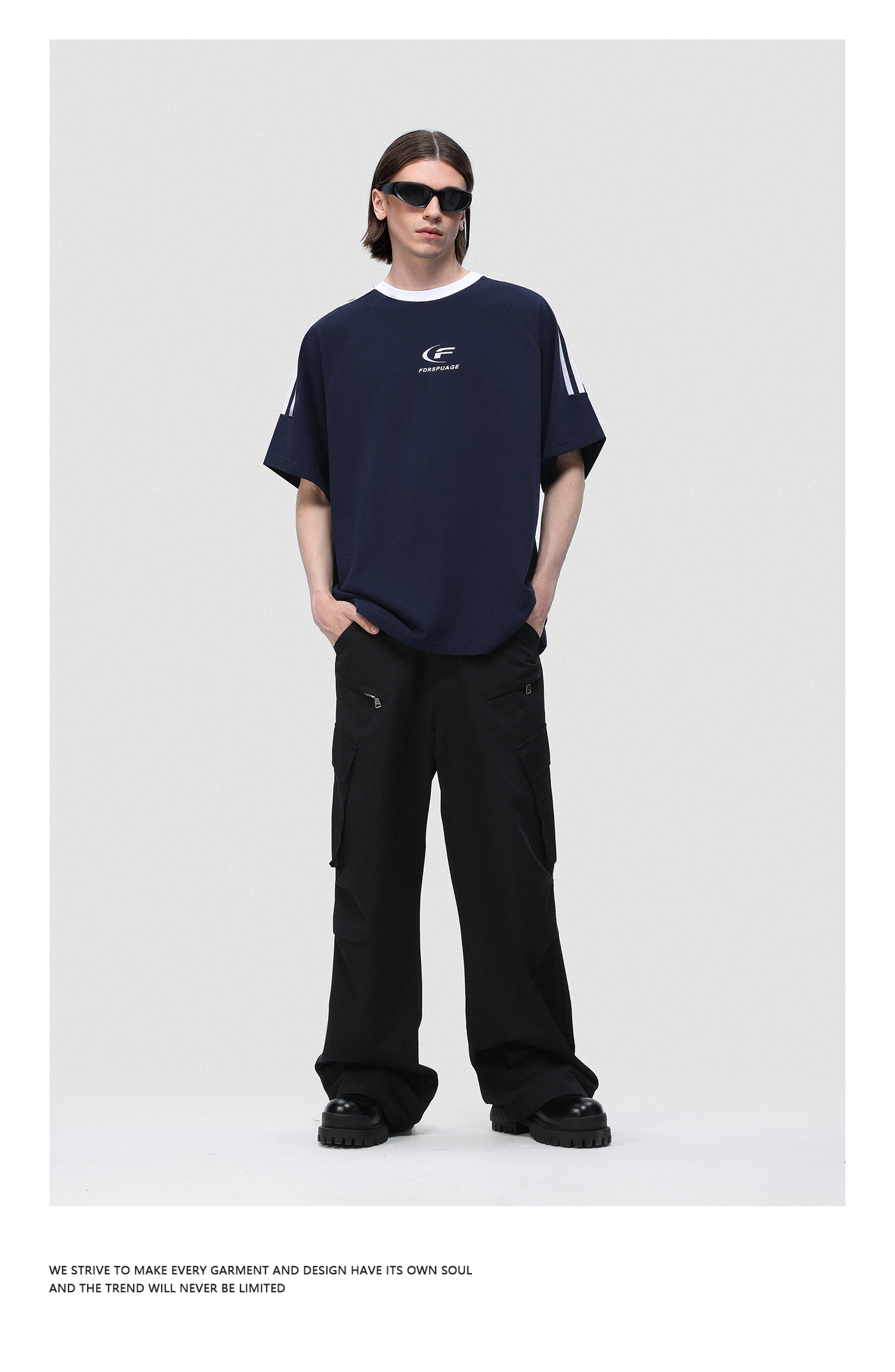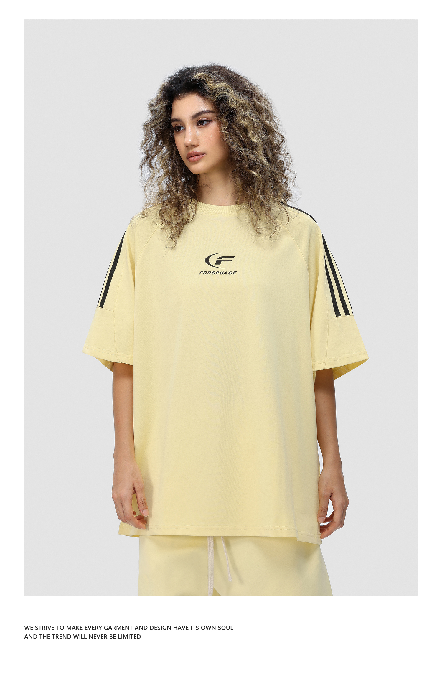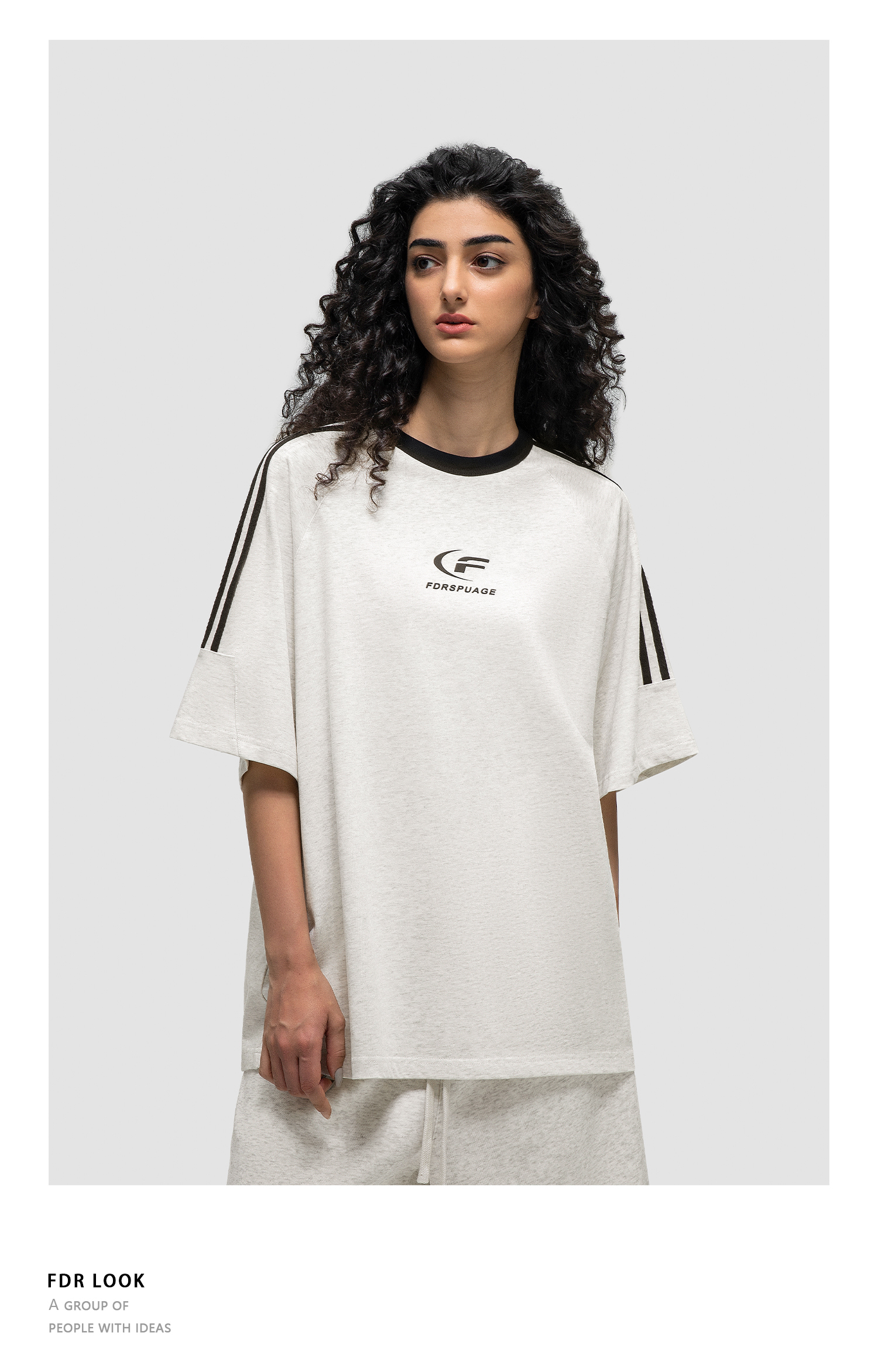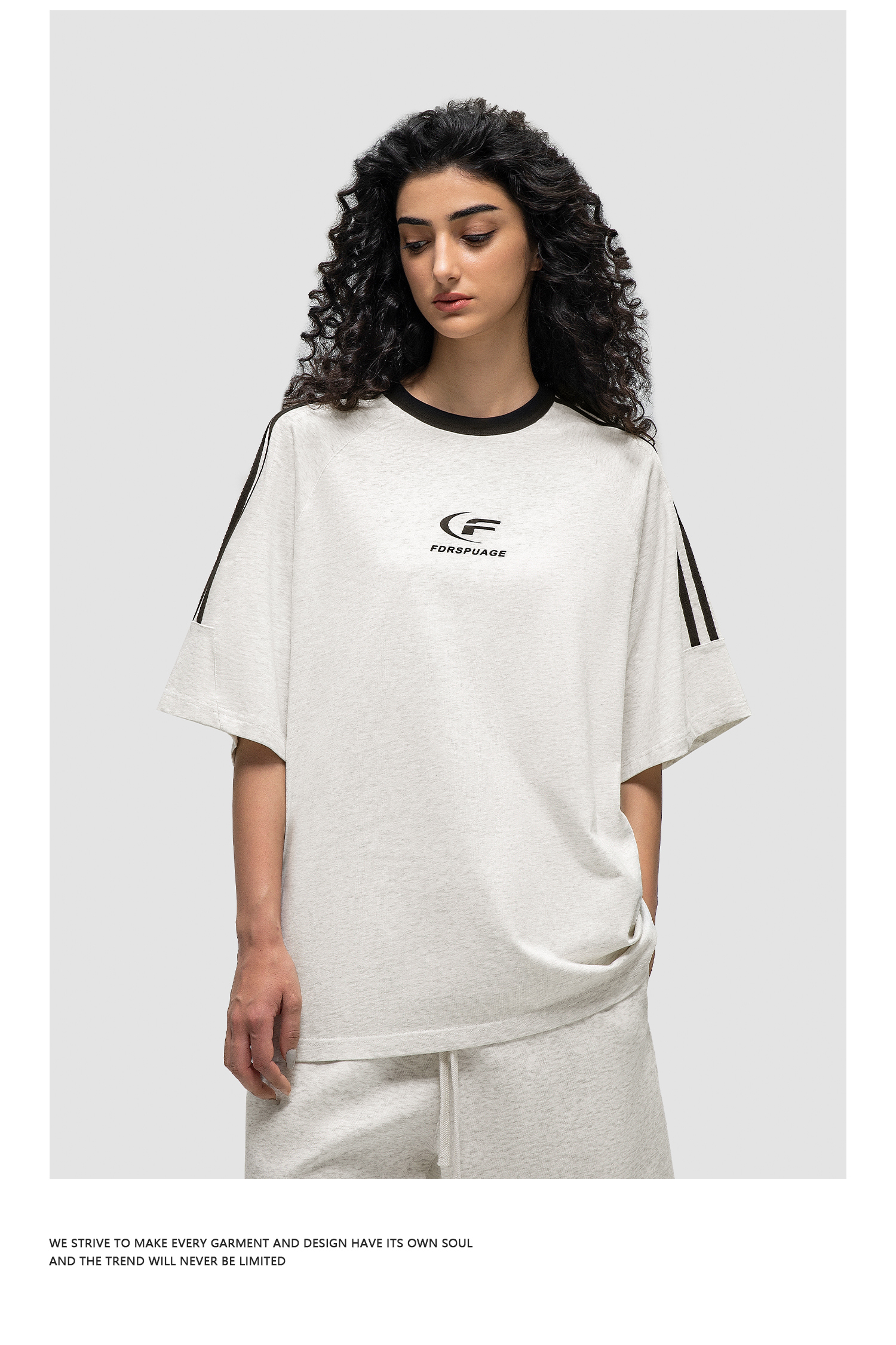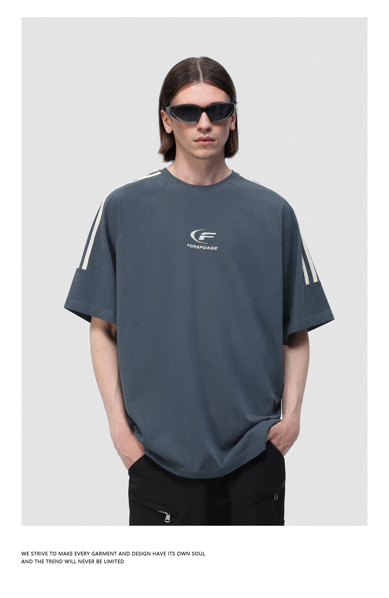 FDR 国潮美式复古拼接插肩短袖t恤男女夏季高街情侣宽松织带上衣