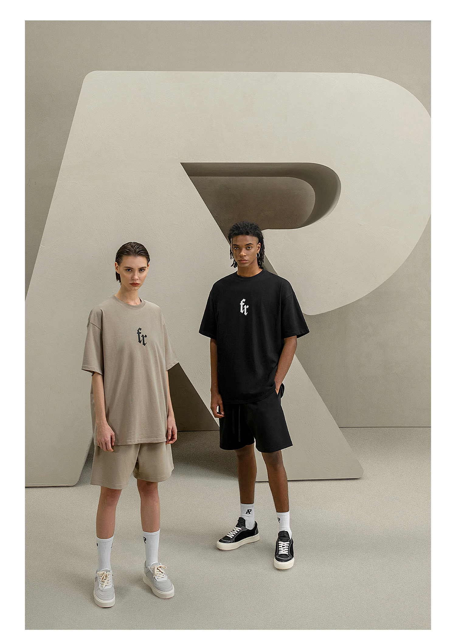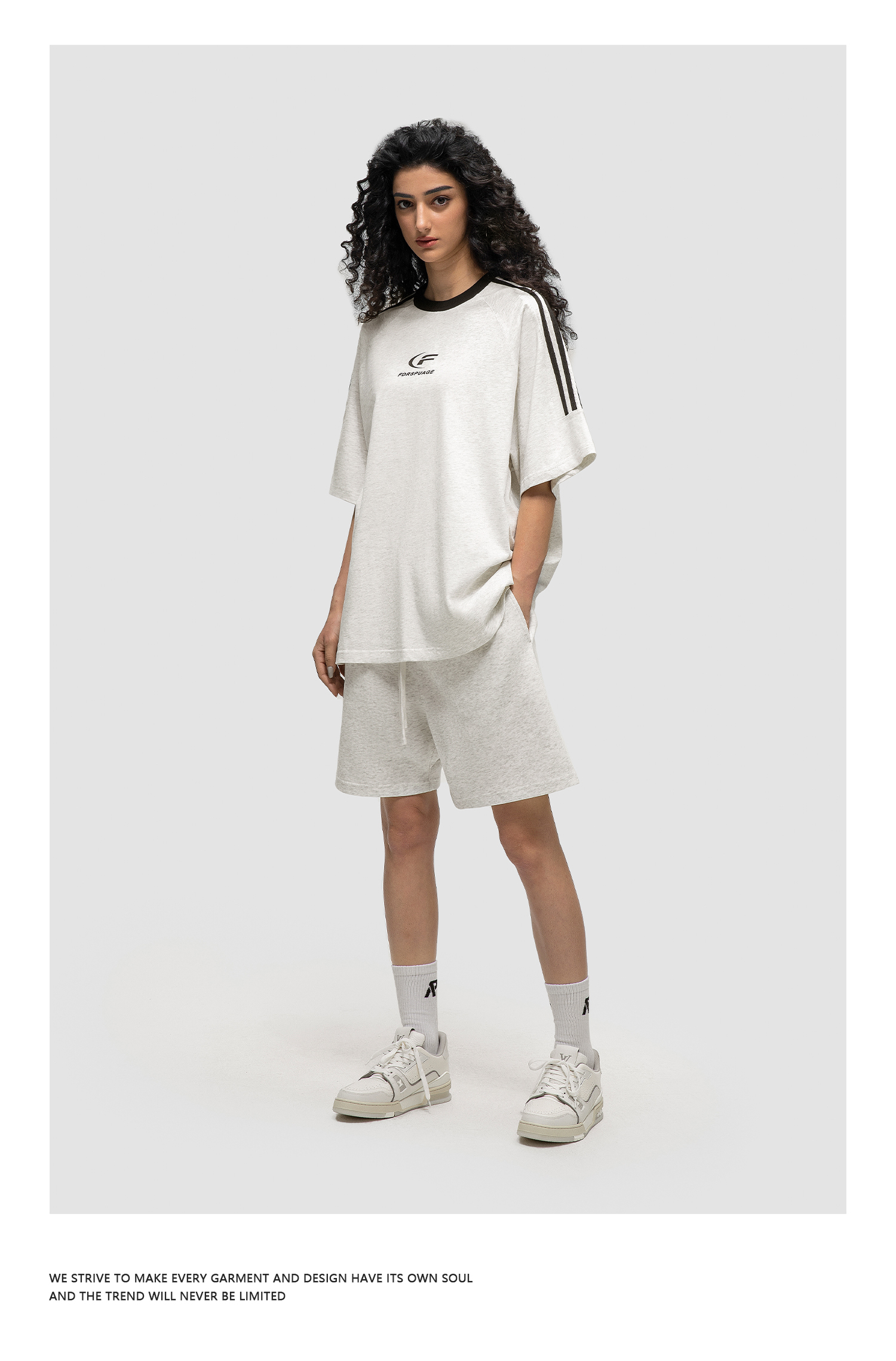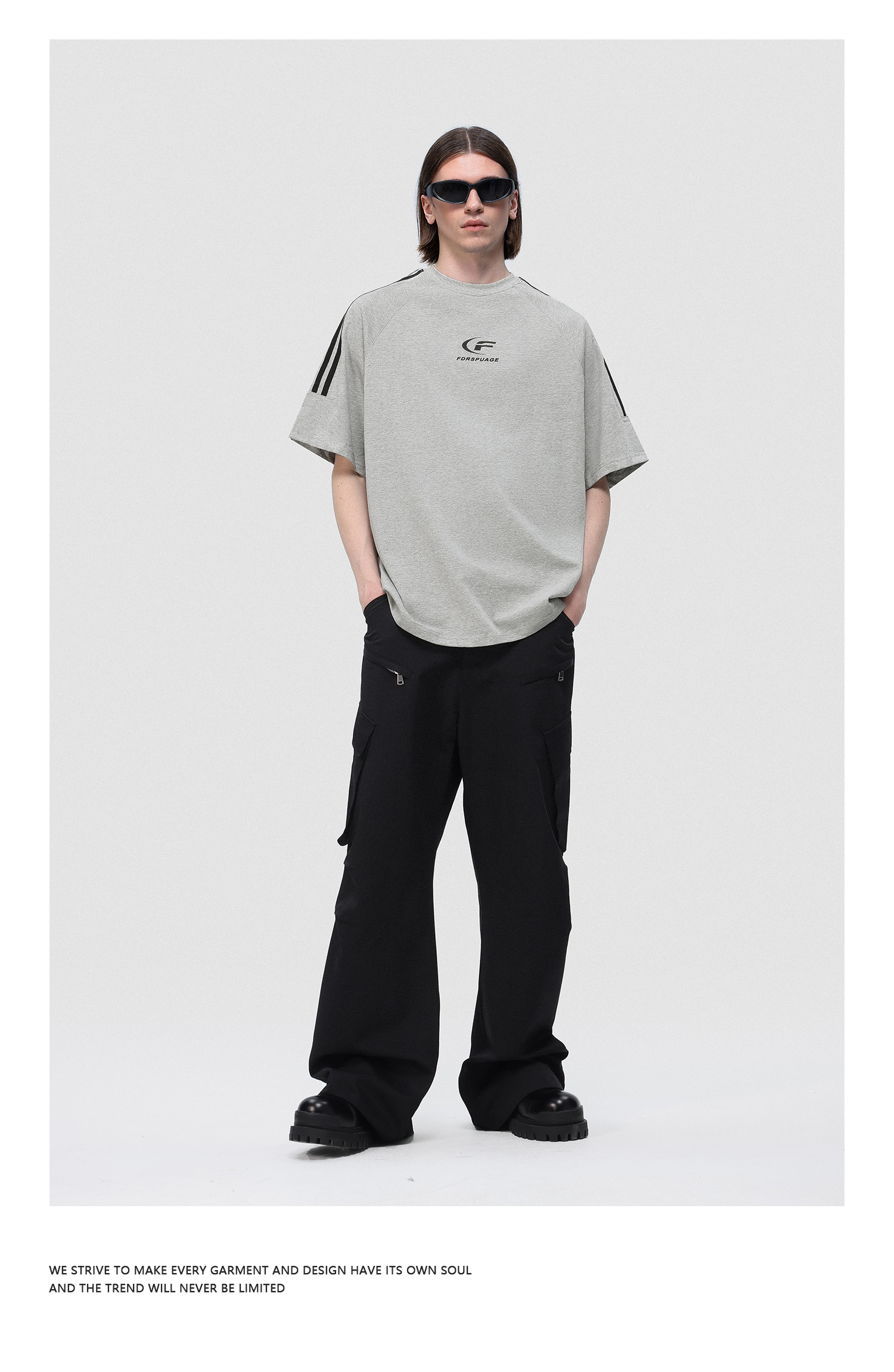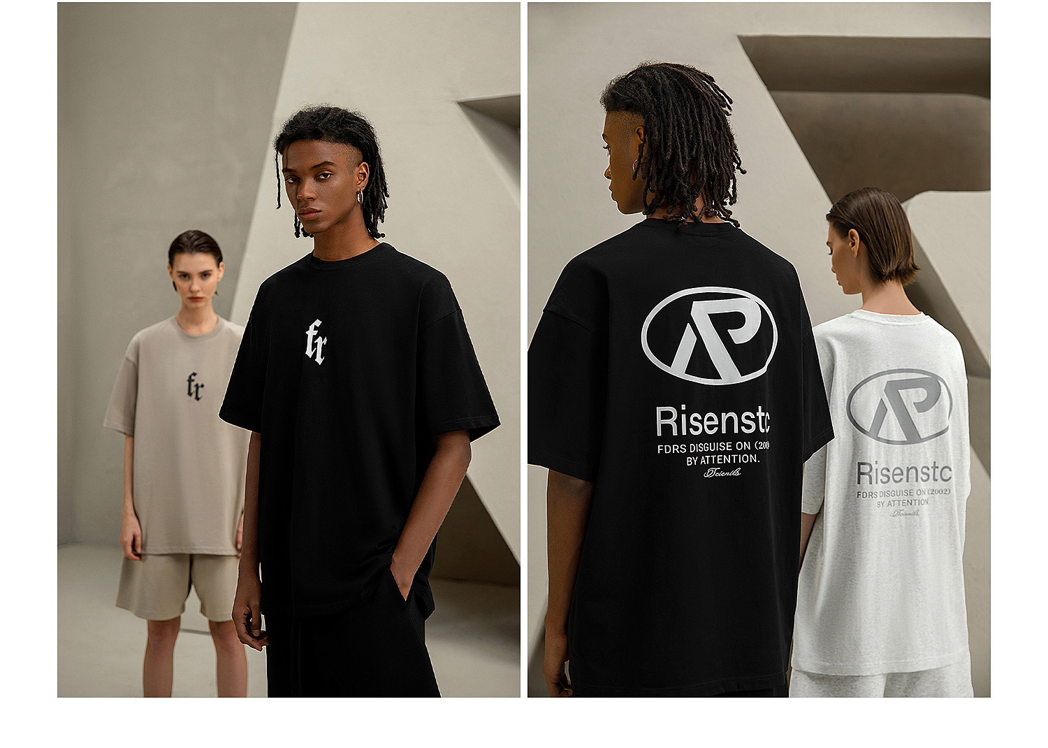 FDR 国潮美式复古拼接插肩短袖t恤男女夏季高街情侣宽松织带上衣