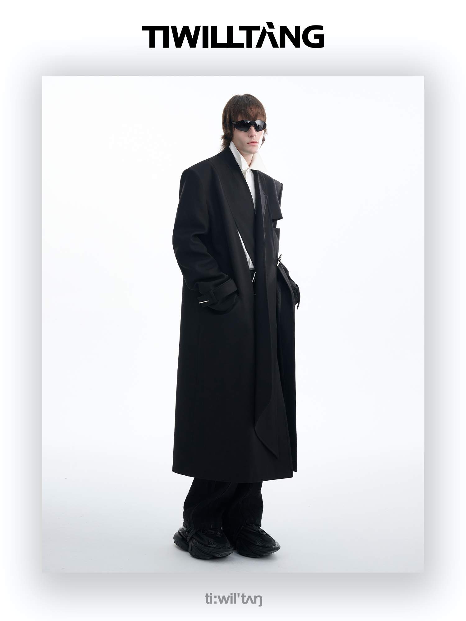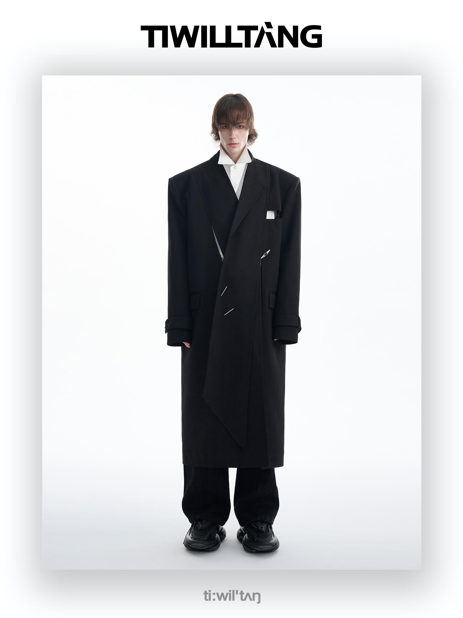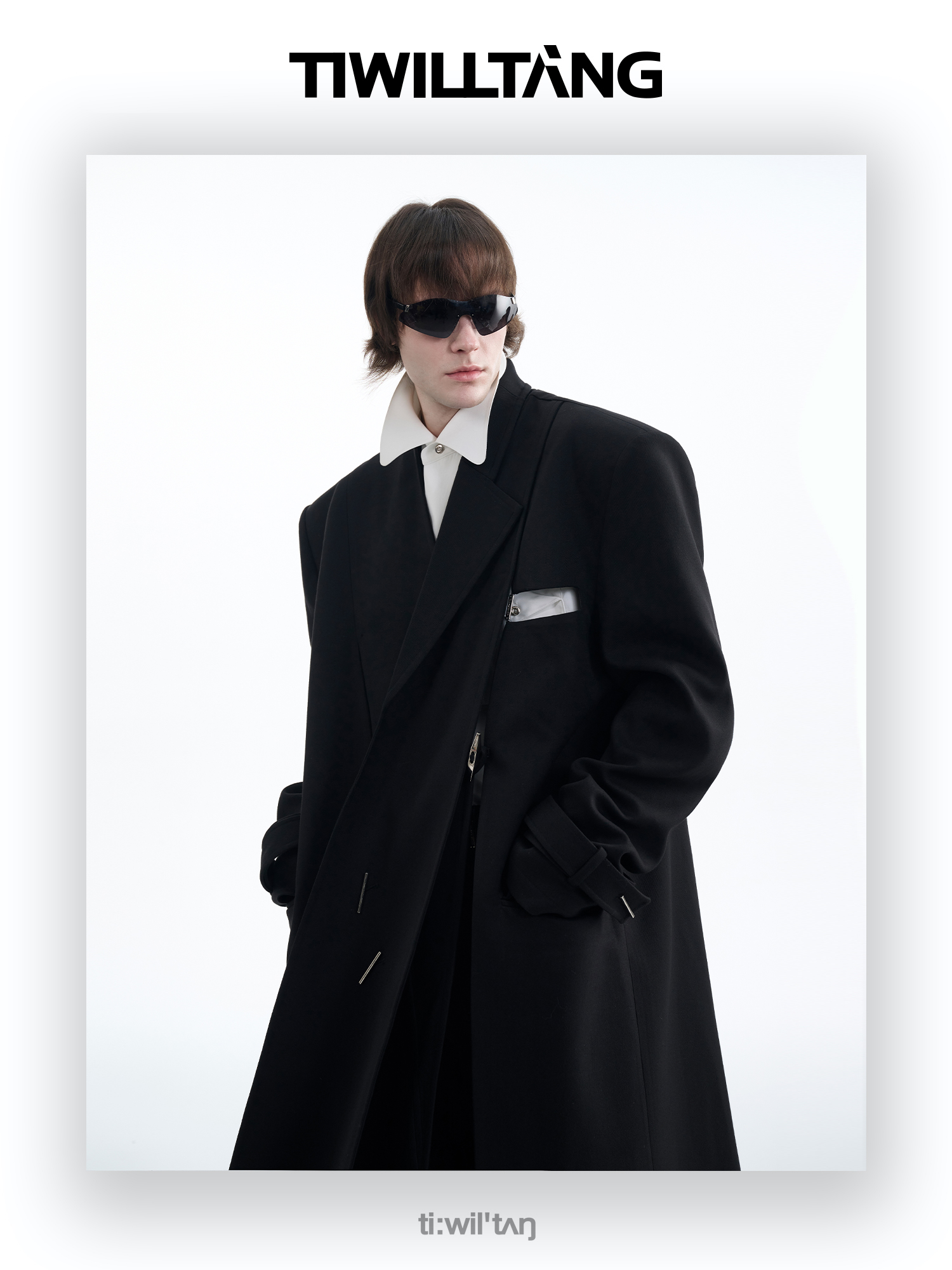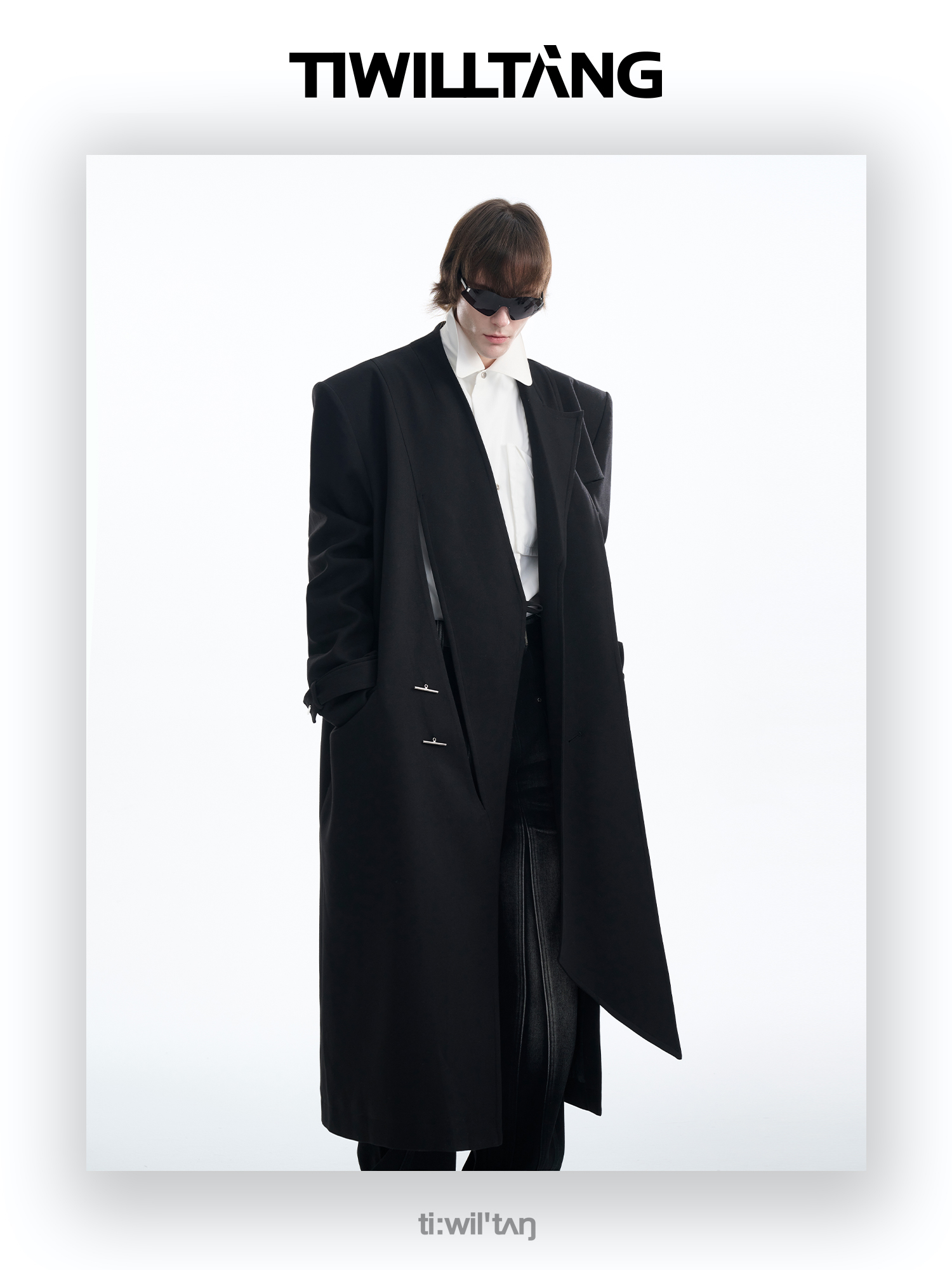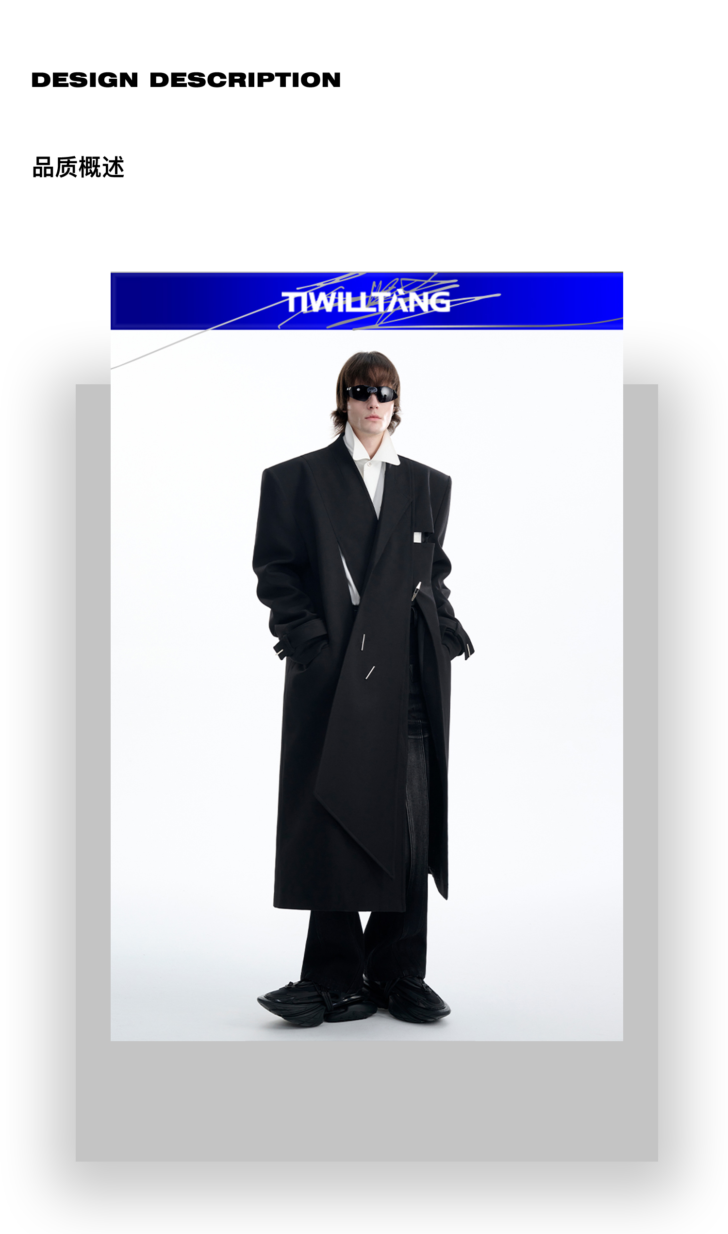 [主理人同款]TIWILLTANG启世录“嚣溯凝寂”交错镂空大衣男解构缎面中长款外套