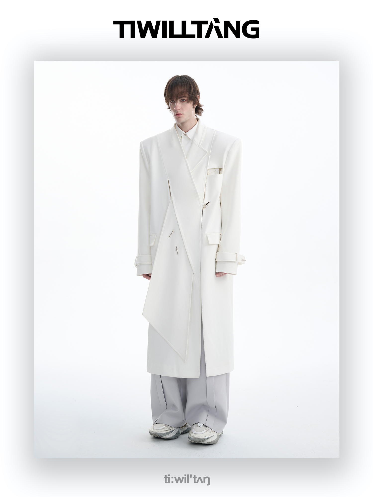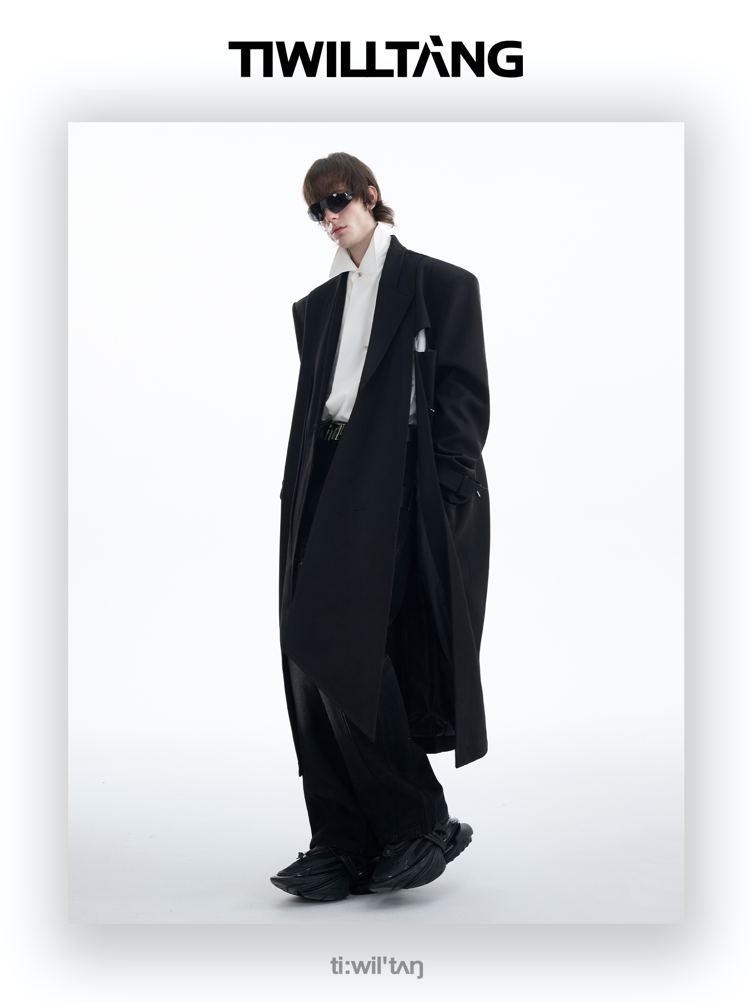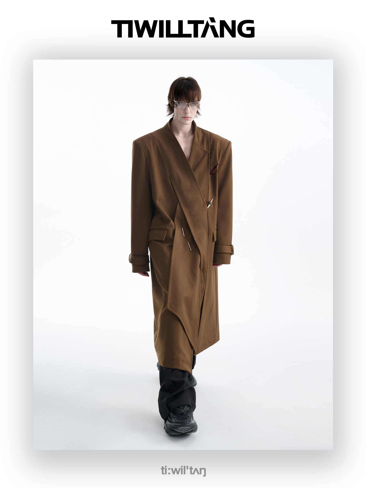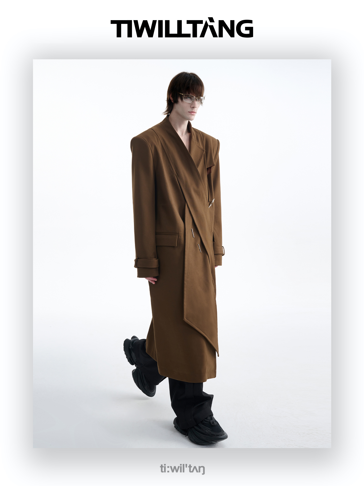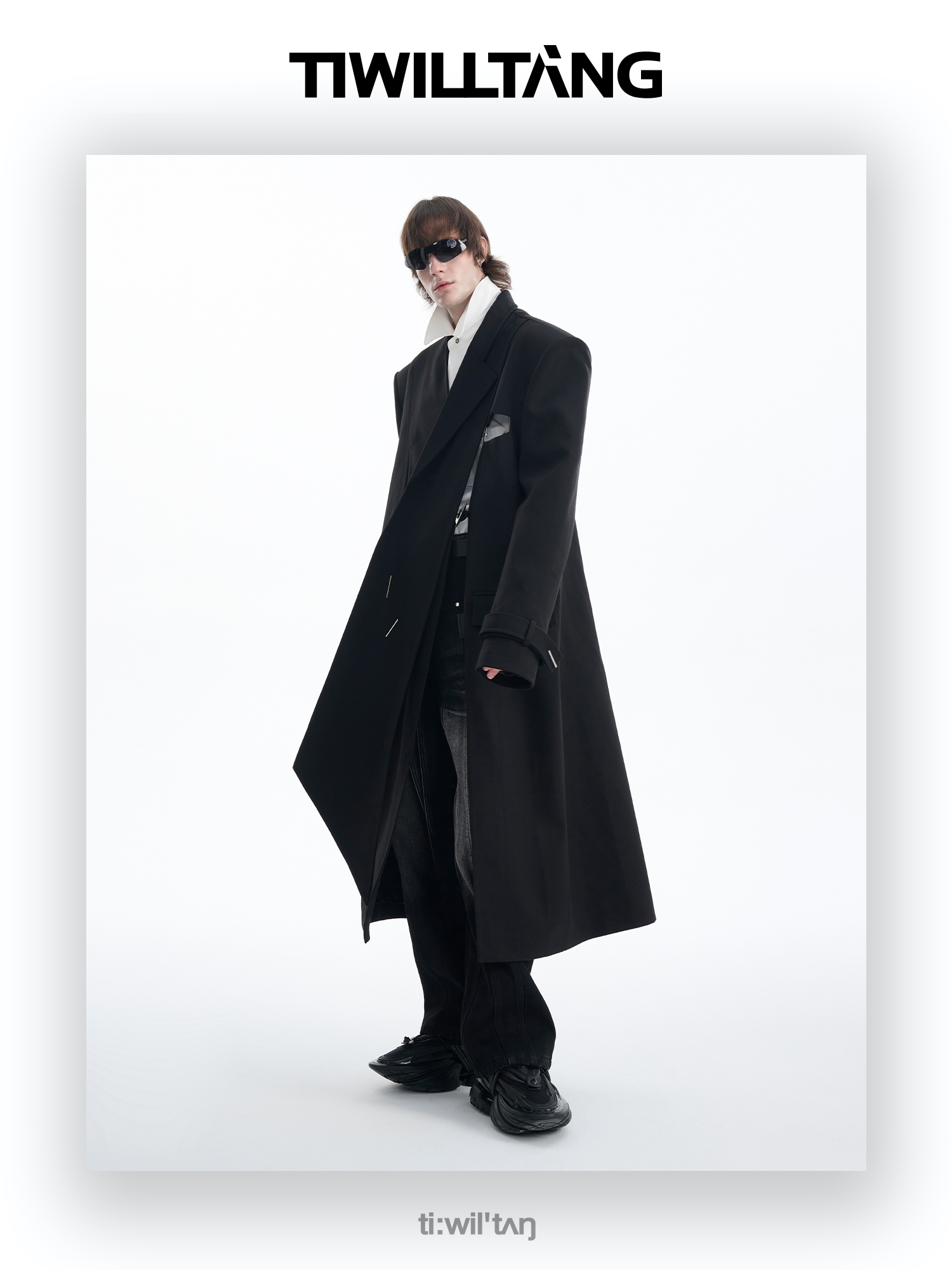 [主理人同款]TIWILLTANG启世录“嚣溯凝寂”交错镂空大衣男解构缎面中长款外套