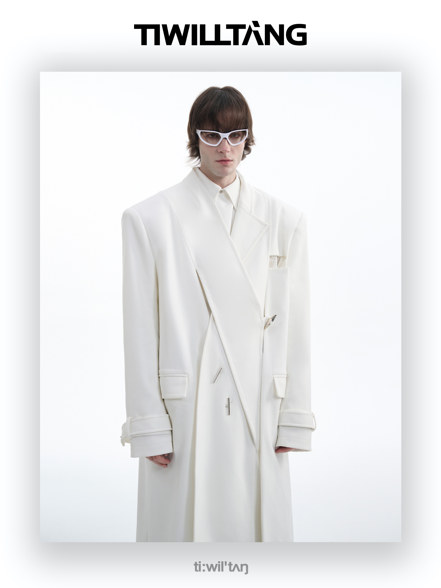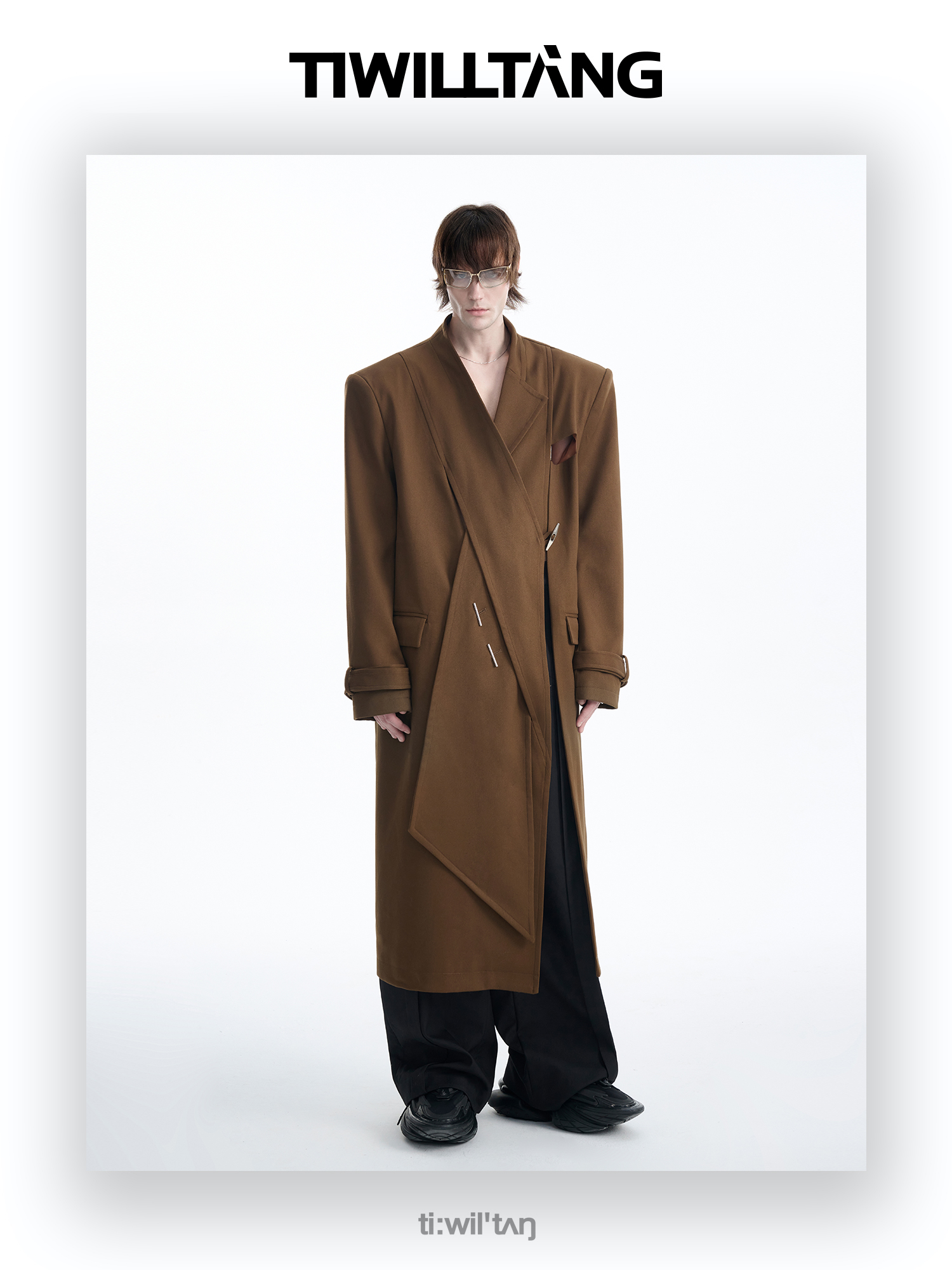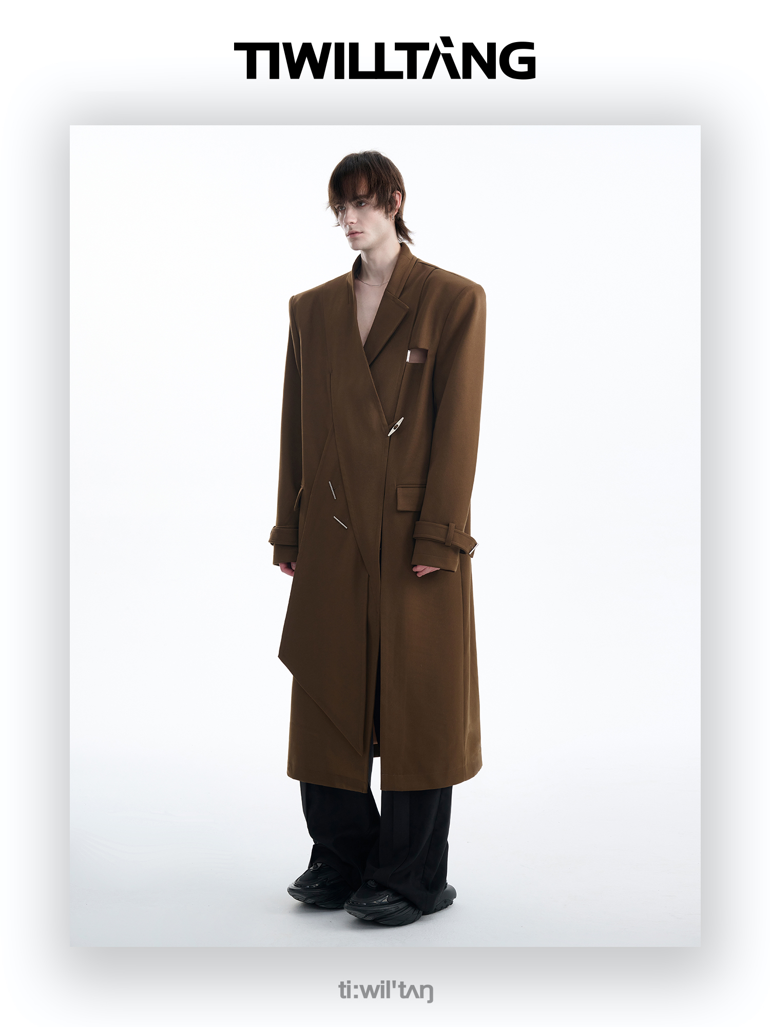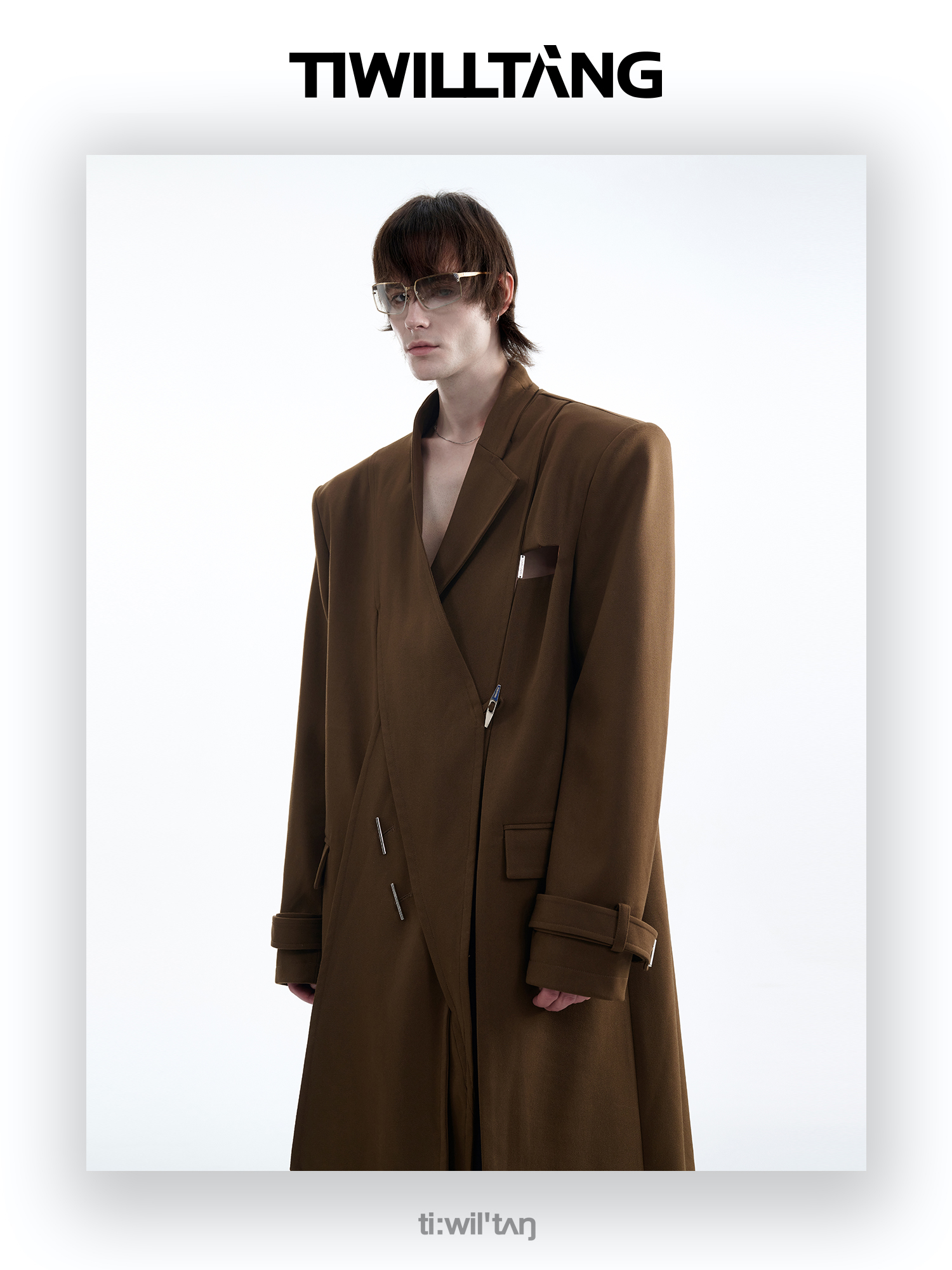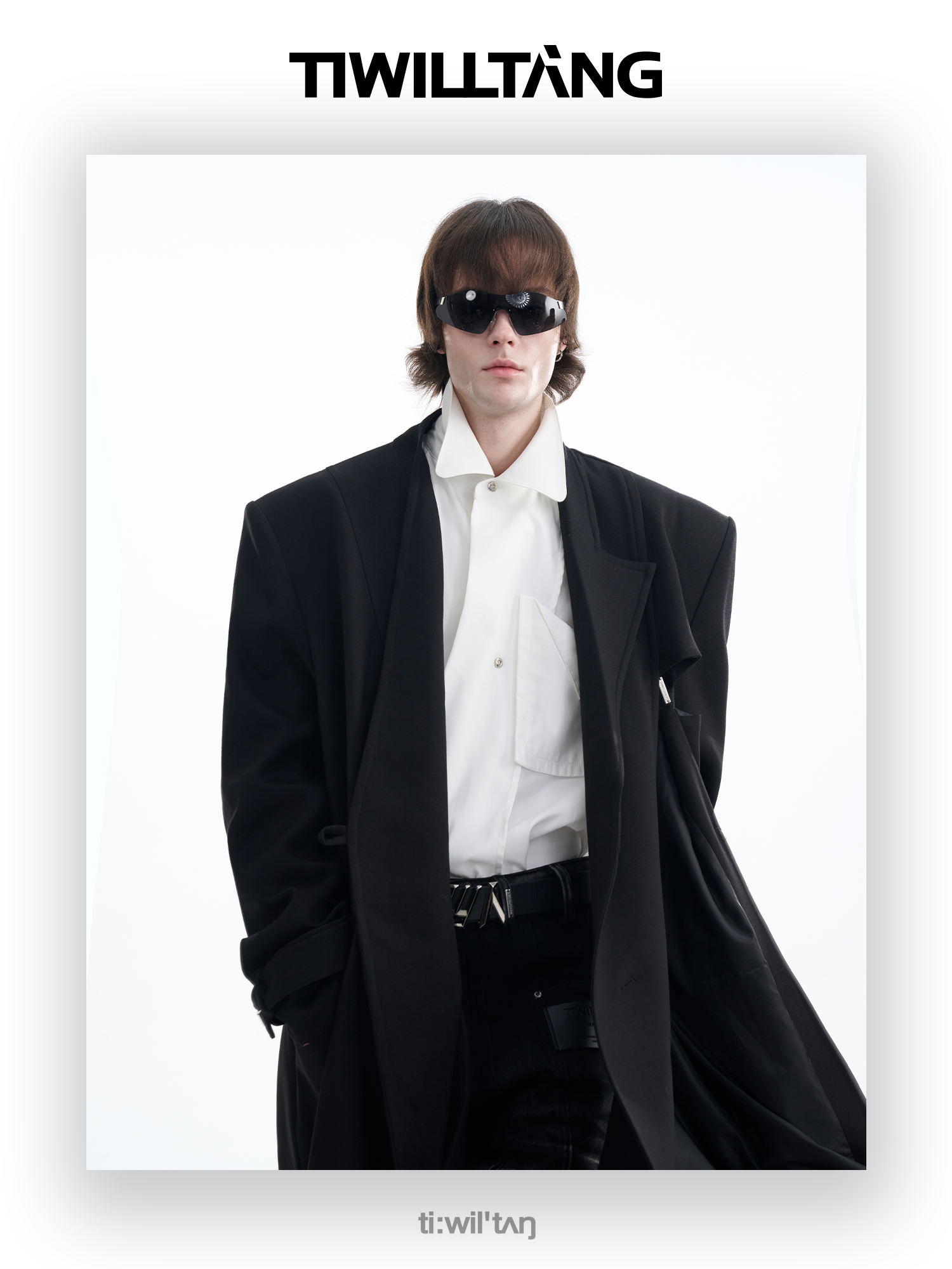 [主理人同款]TIWILLTANG启世录“嚣溯凝寂”交错镂空大衣男解构缎面中长款外套