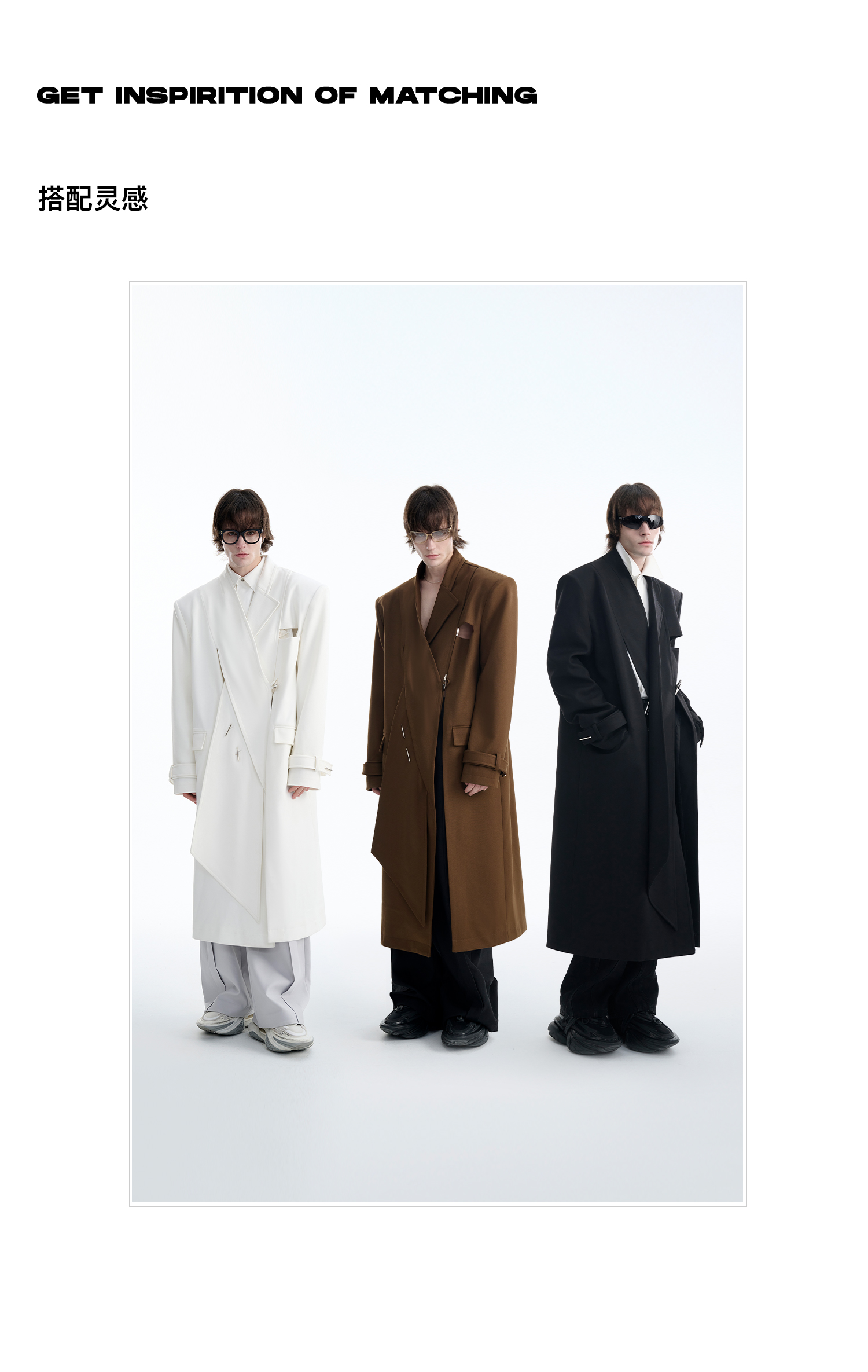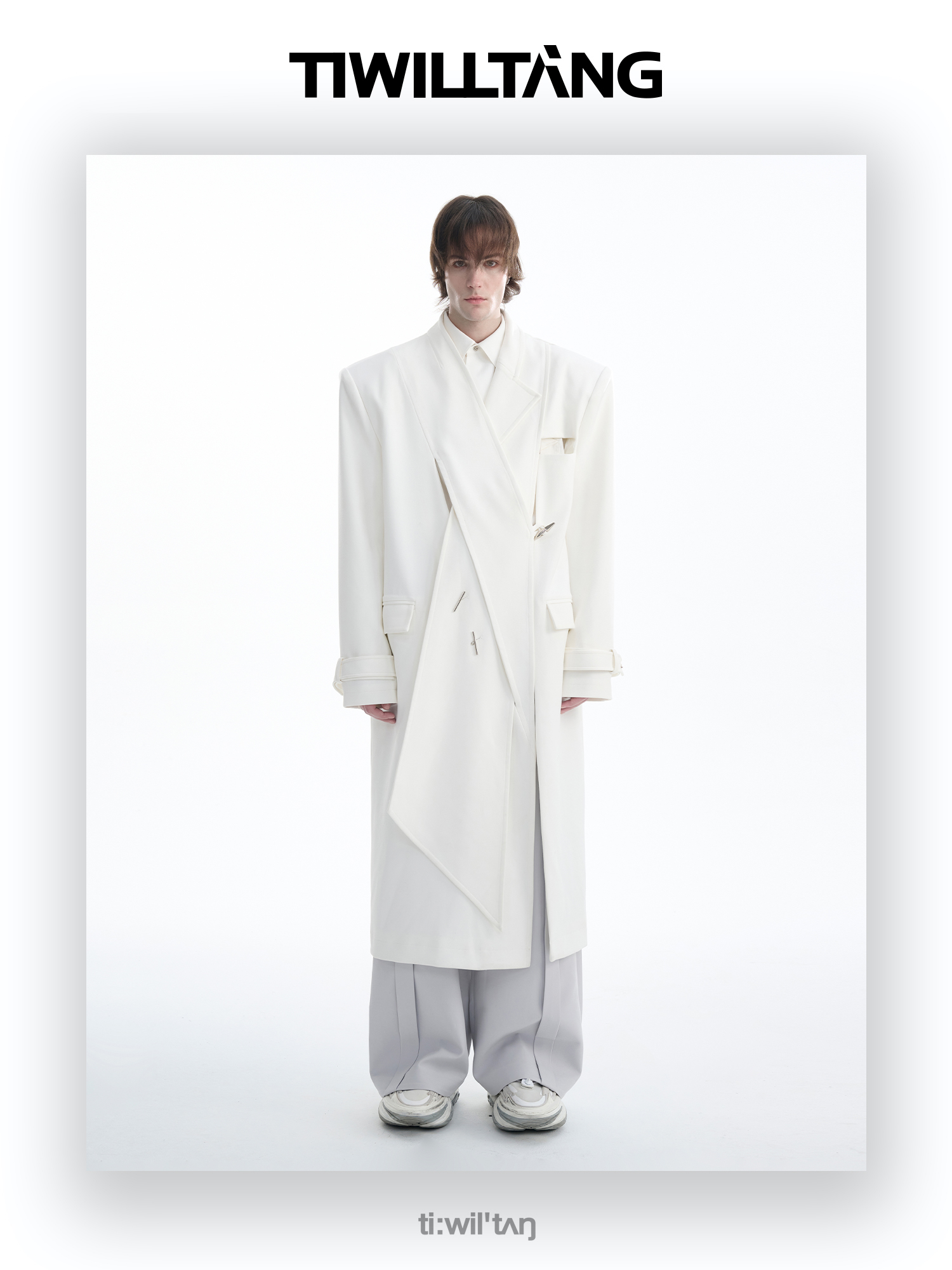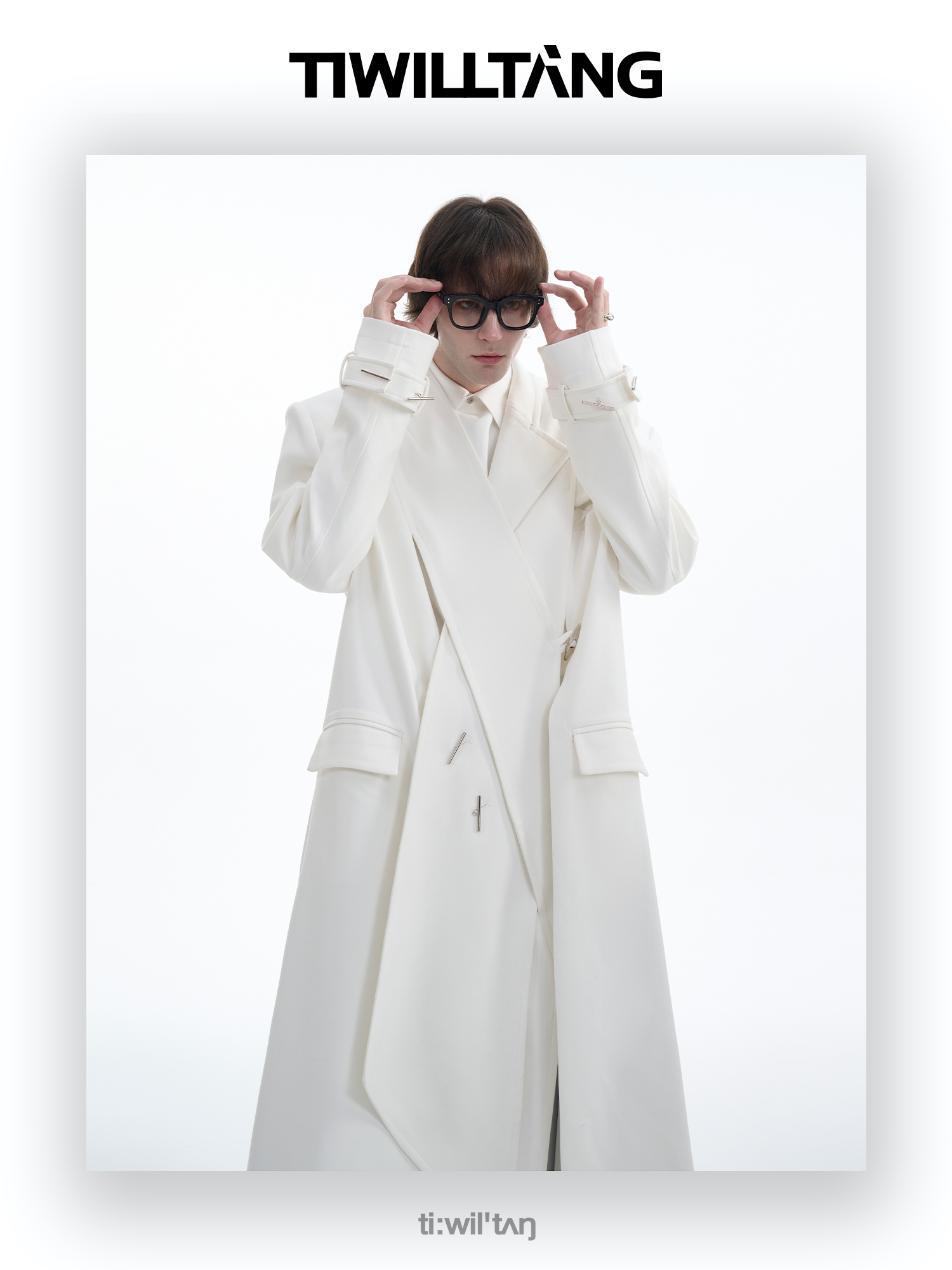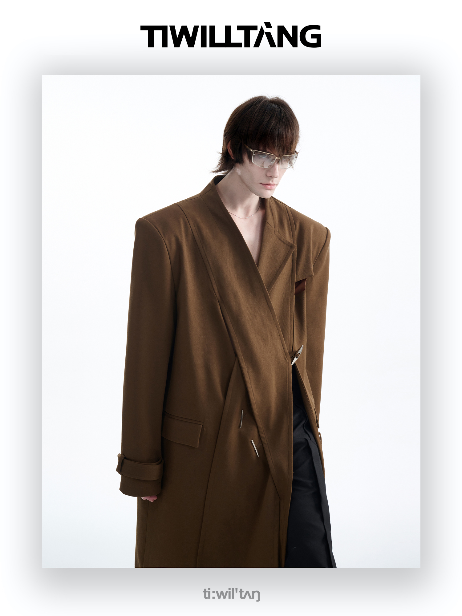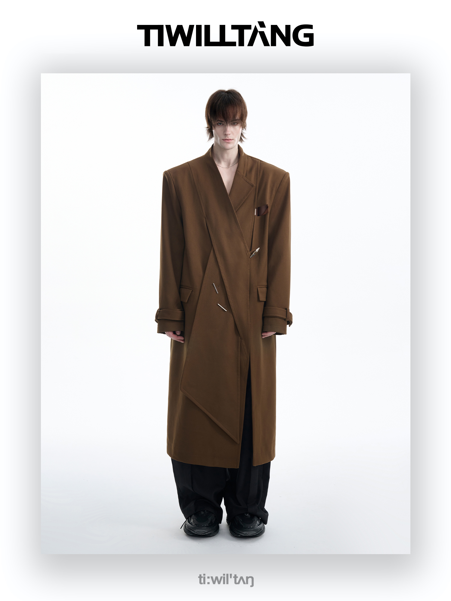 [主理人同款]TIWILLTANG启世录“嚣溯凝寂”交错镂空大衣男解构缎面中长款外套