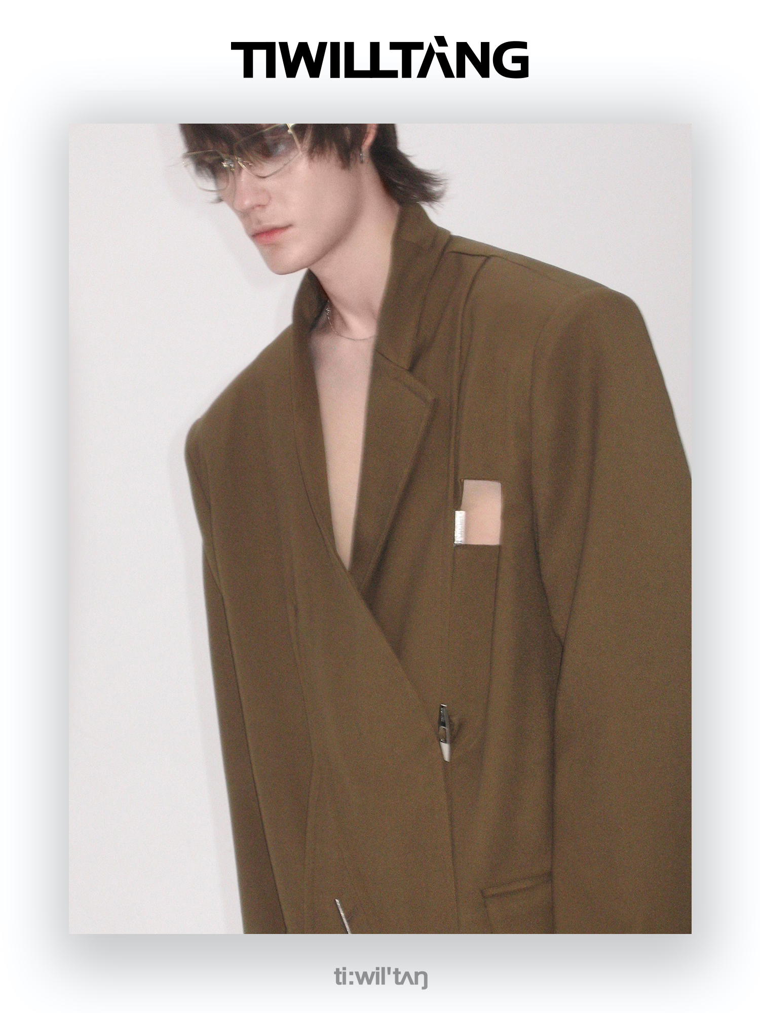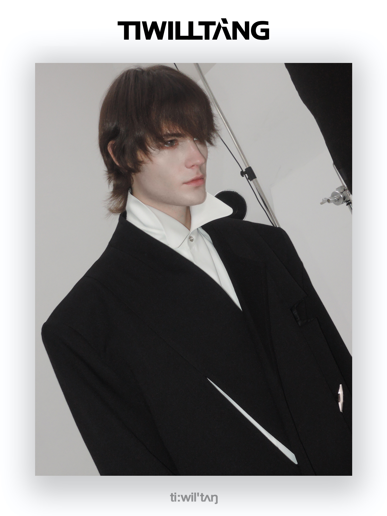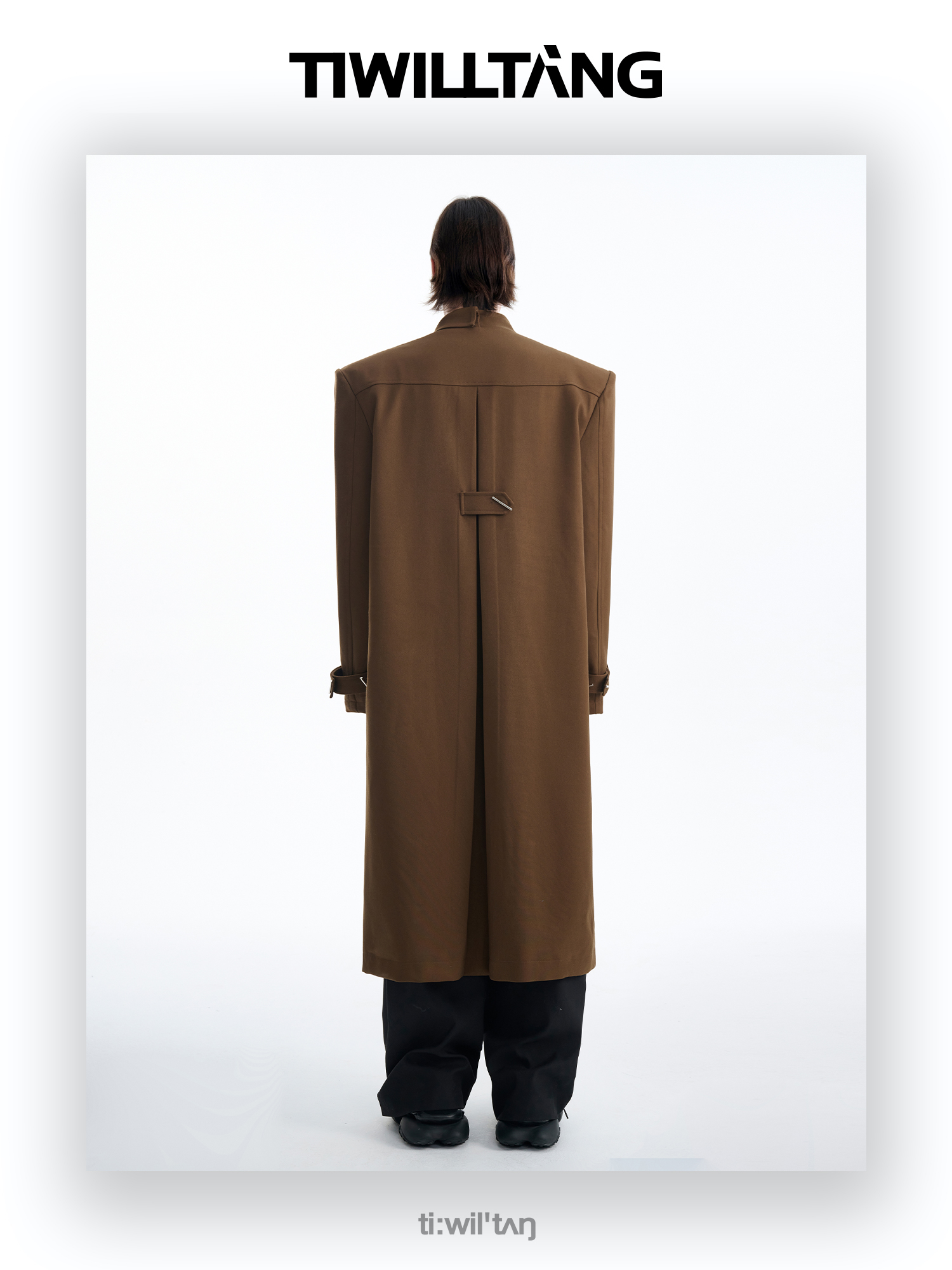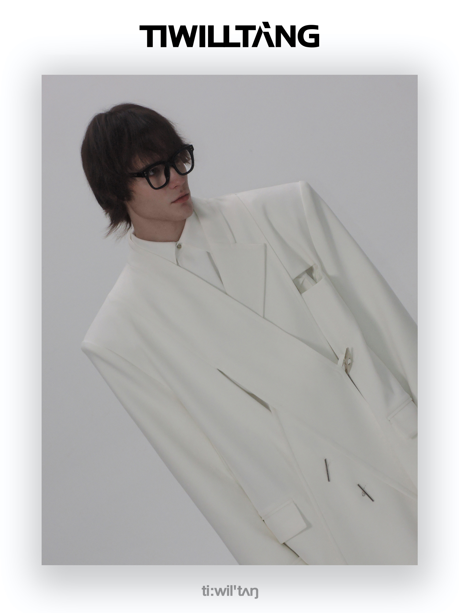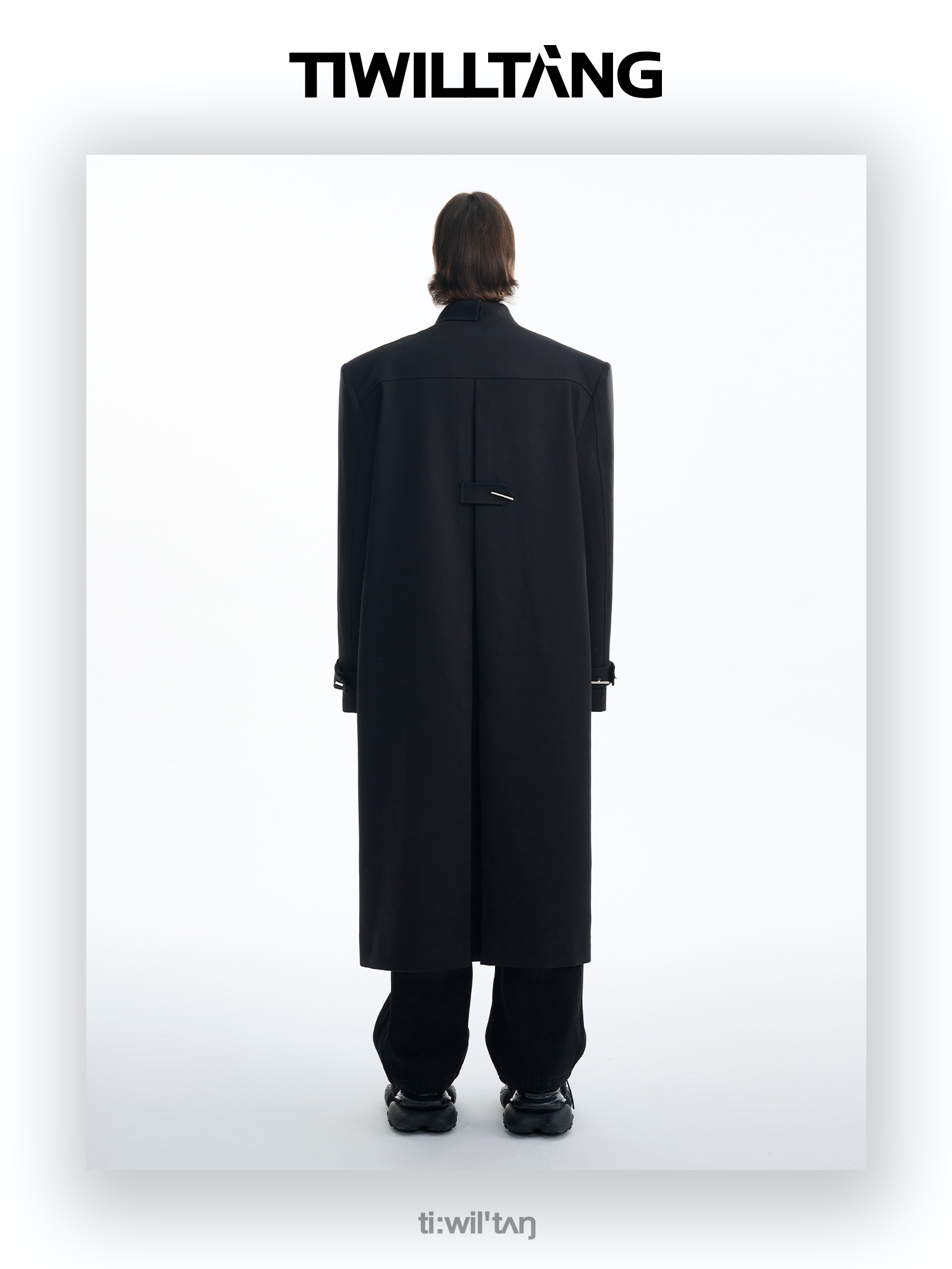 [主理人同款]TIWILLTANG启世录“嚣溯凝寂”交错镂空大衣男解构缎面中长款外套