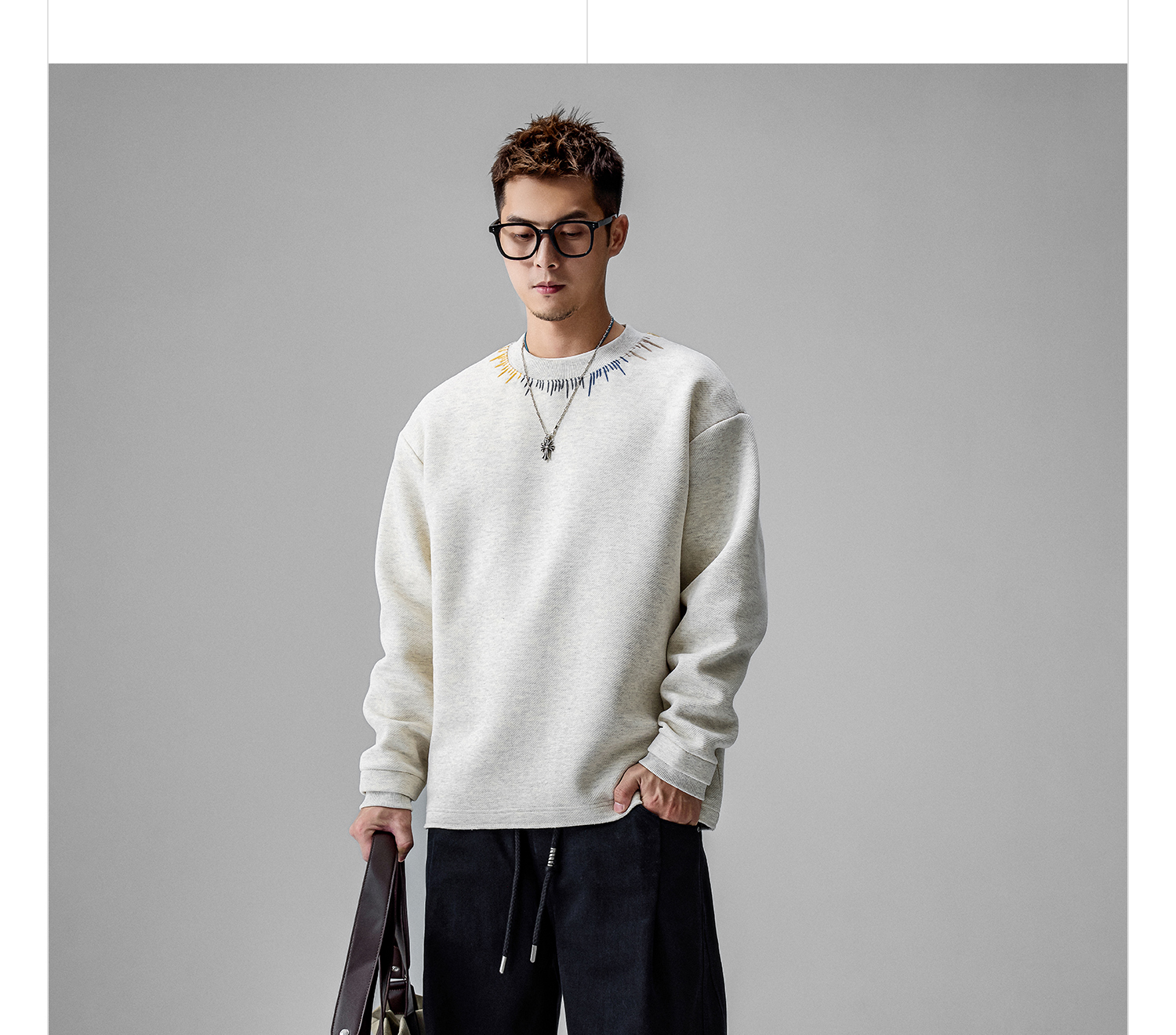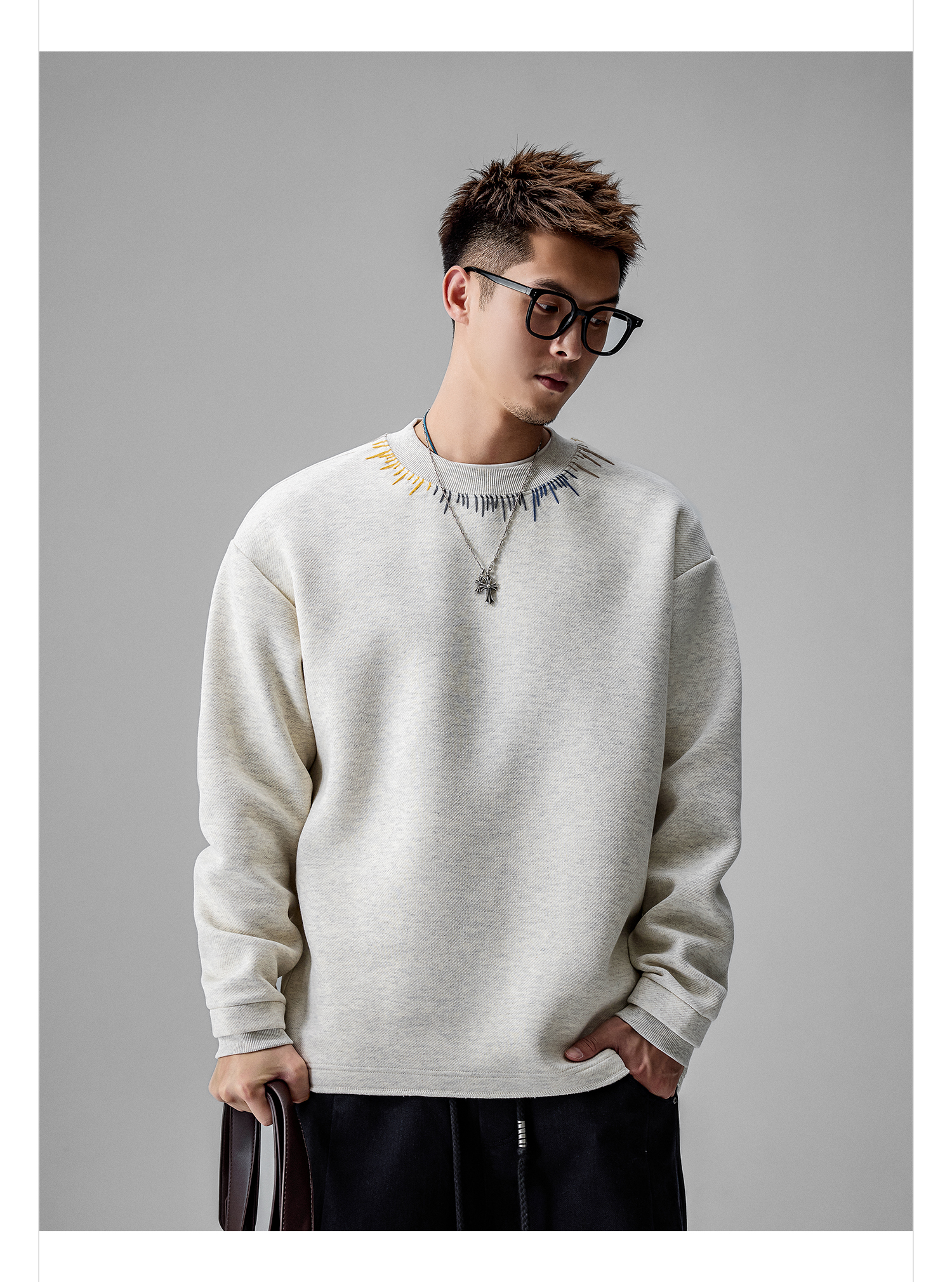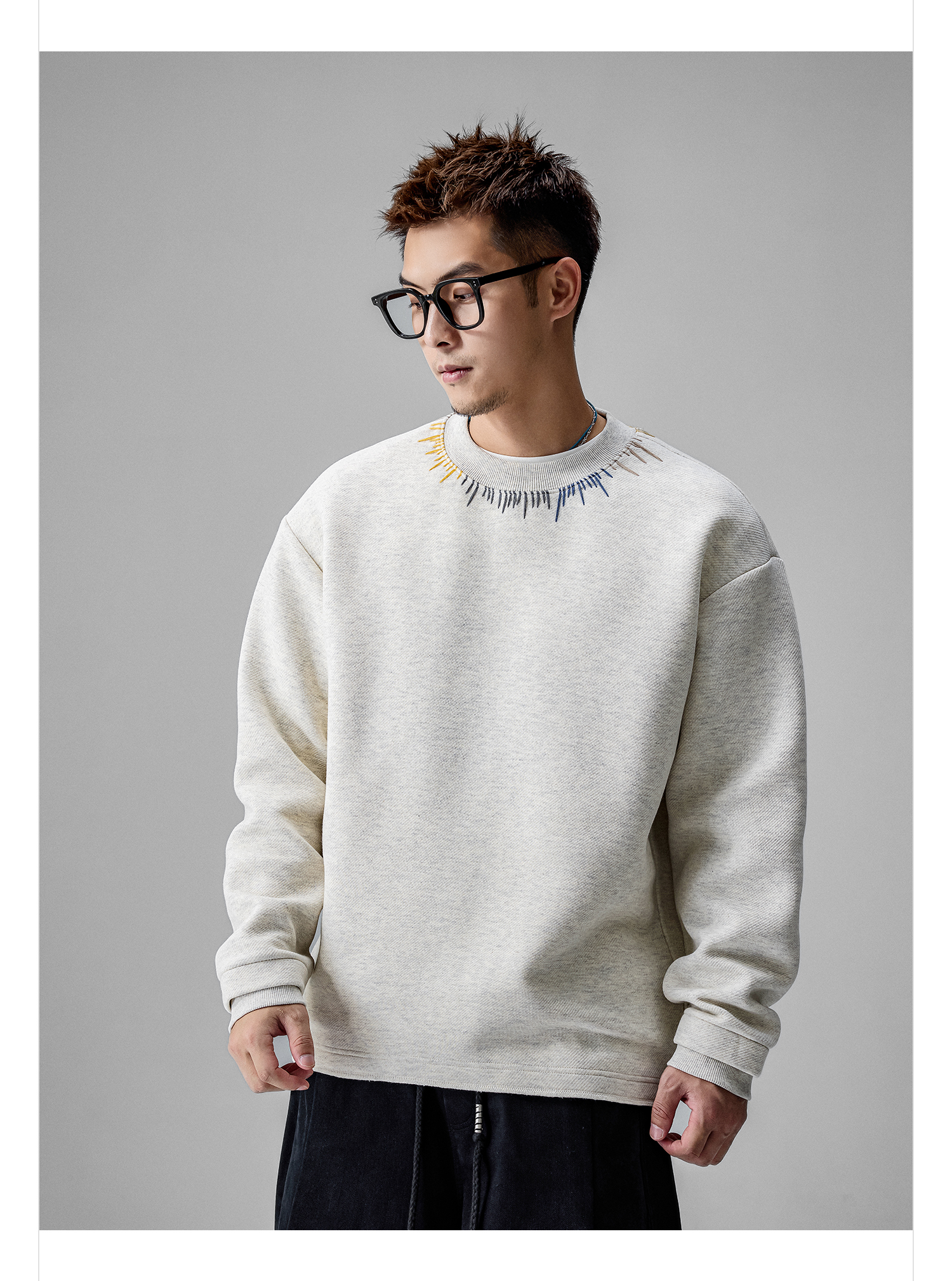 徐太浪【刺绣圆领 休闲百搭】套头毛衣男秋冬保暖大码内搭打底衫