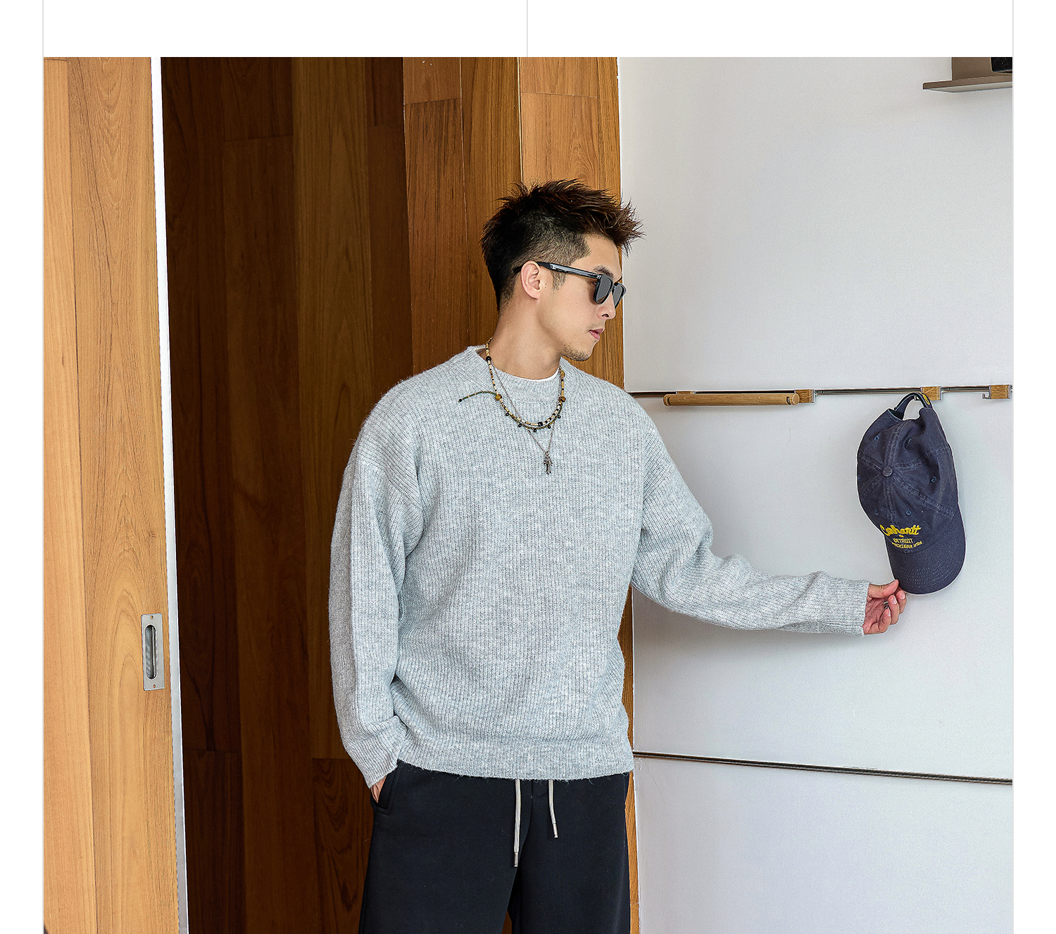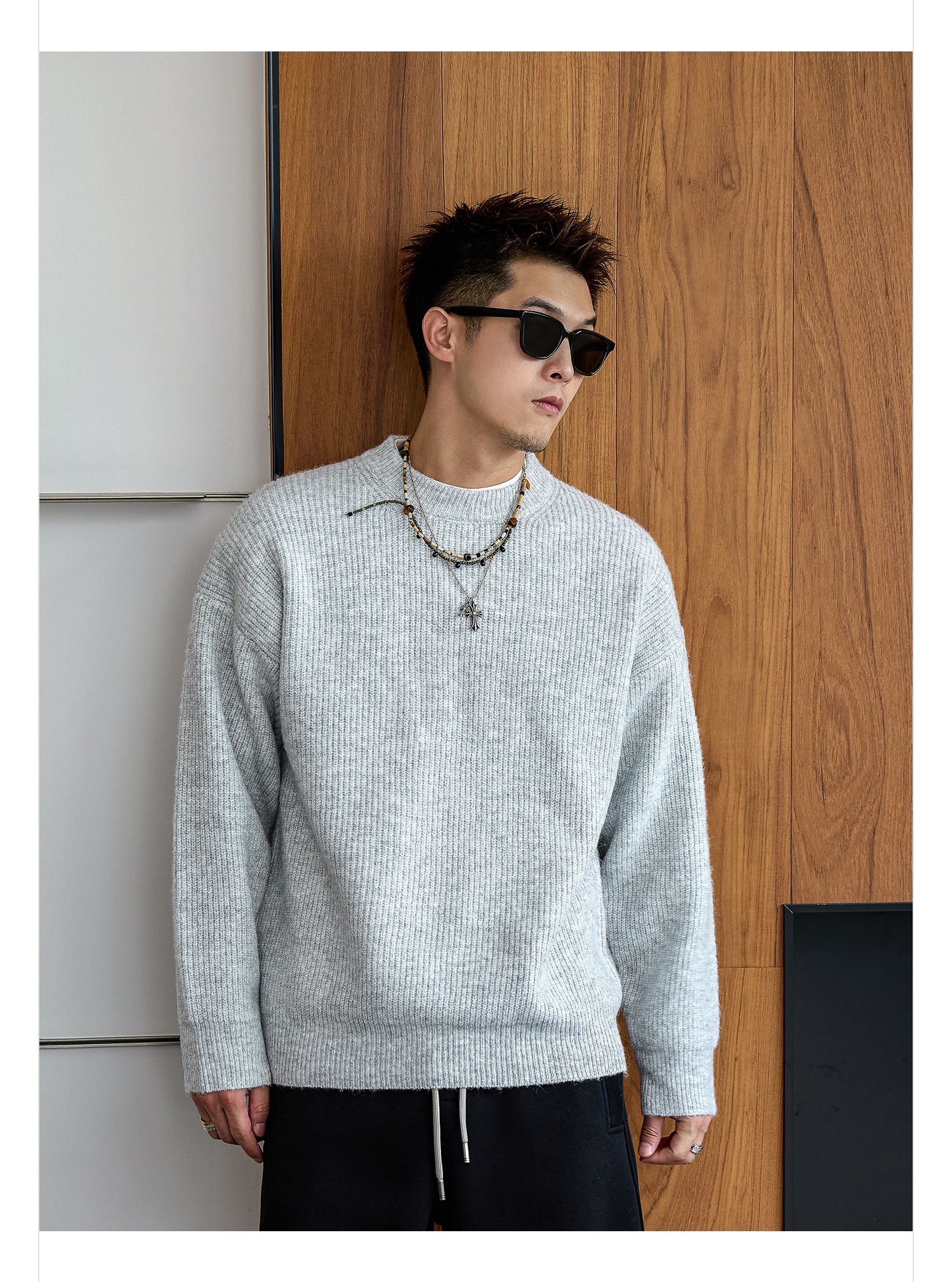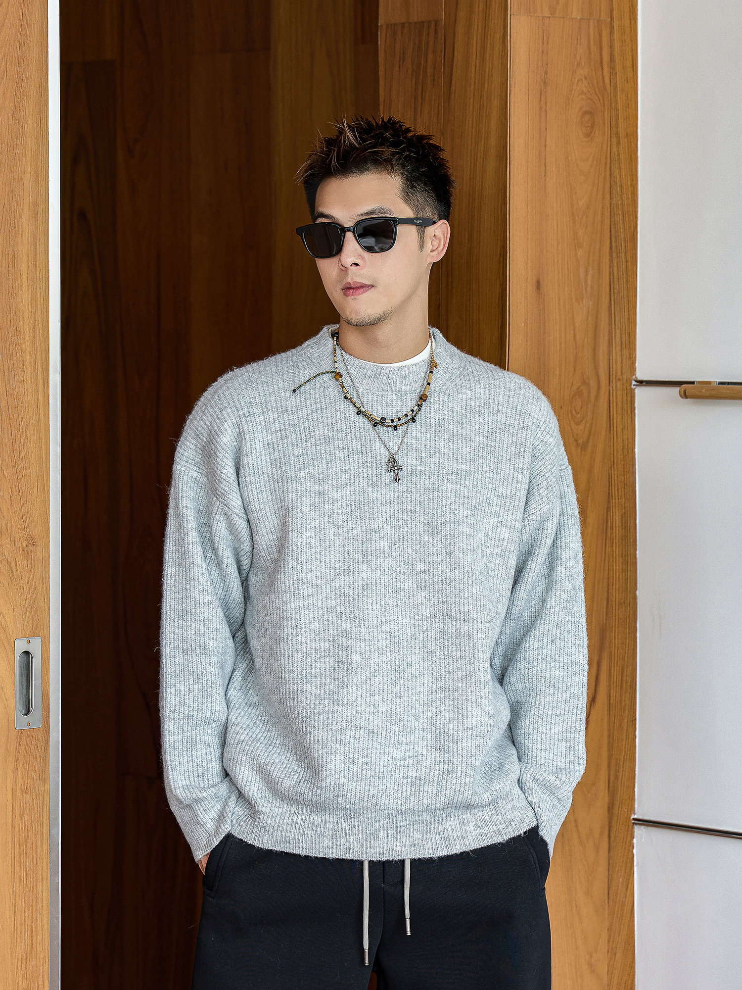 徐太浪【600g混纺 cleanfit】灰色毛衣男秋冬内搭打底针织衫上衣
