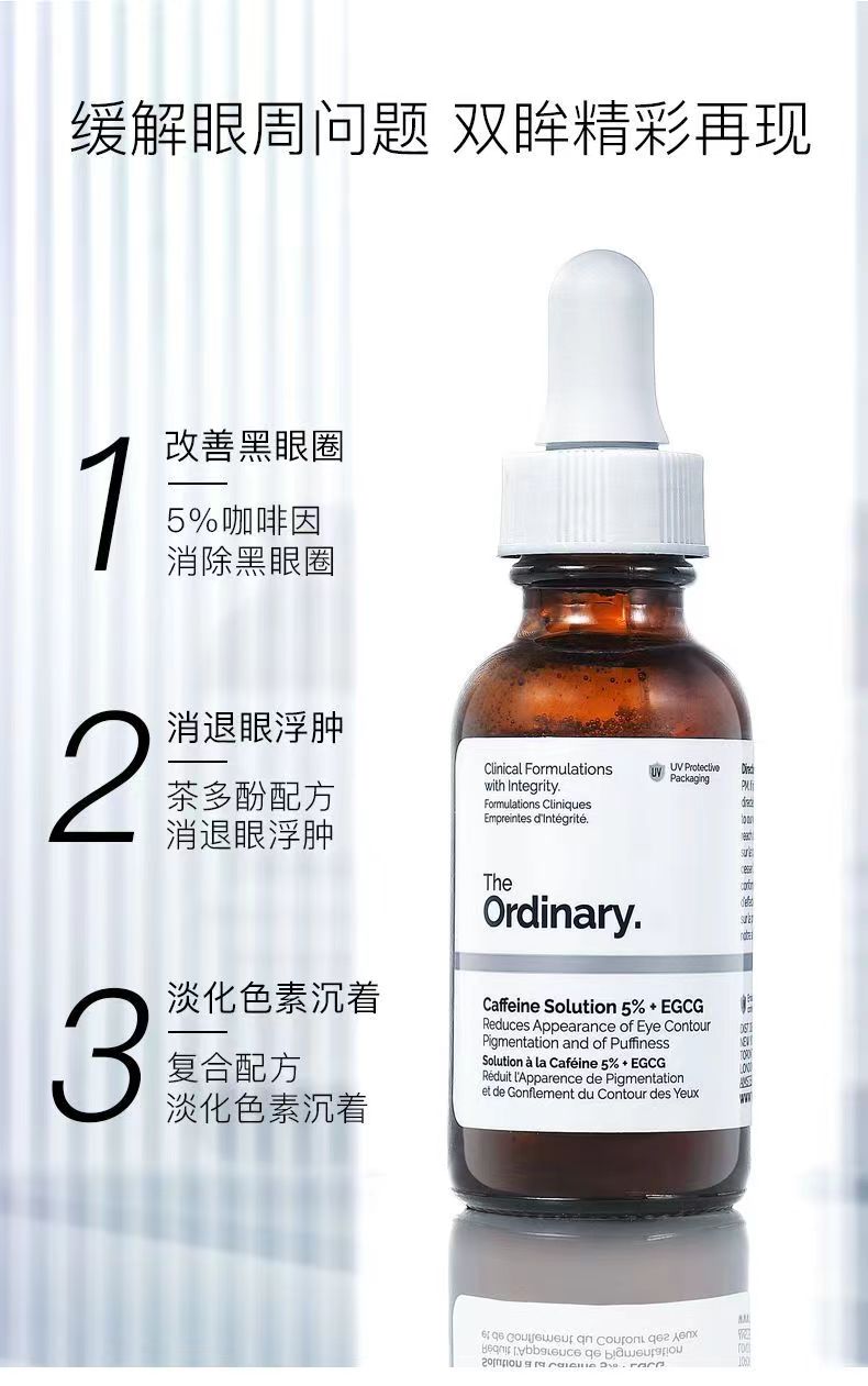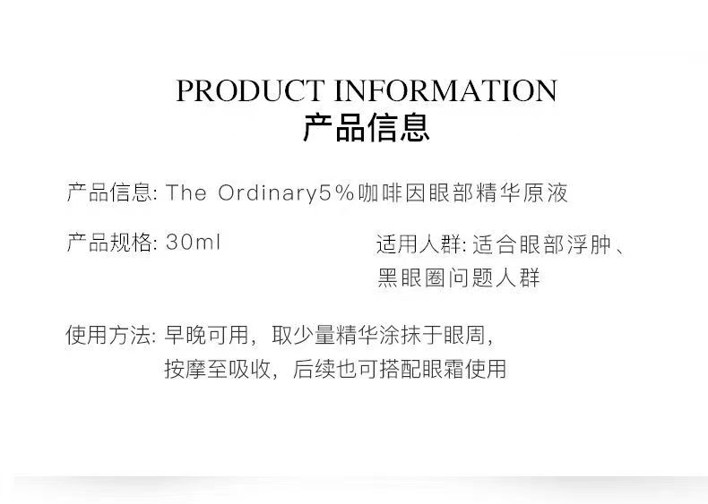 The Ordinary 咖啡因5%+茶多酚眼部精华30ml 淡化黑眼圈细纹紧致眼周