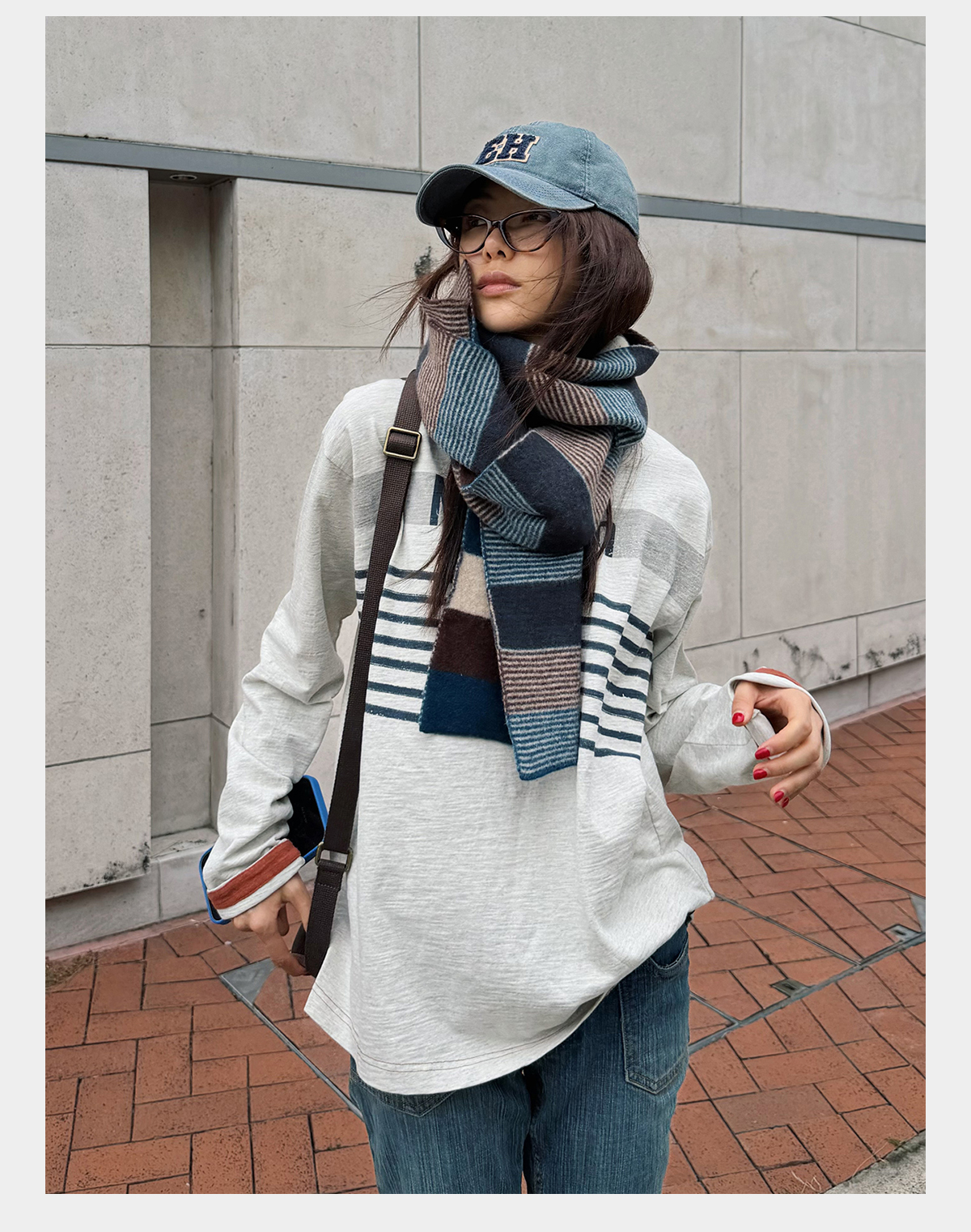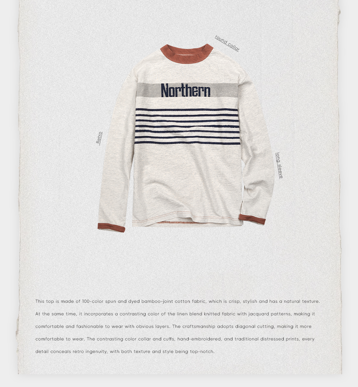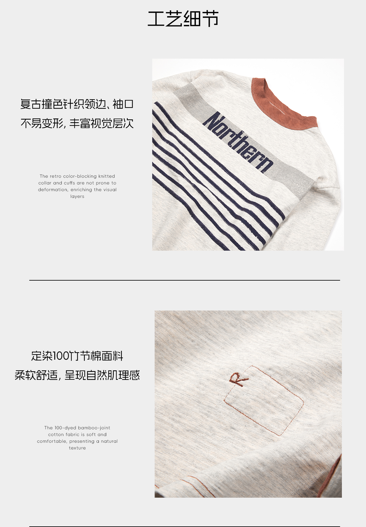 ROMI STUDIO“美式街头”色织定染竹节棉撞色做旧印花T恤RWCASY6440