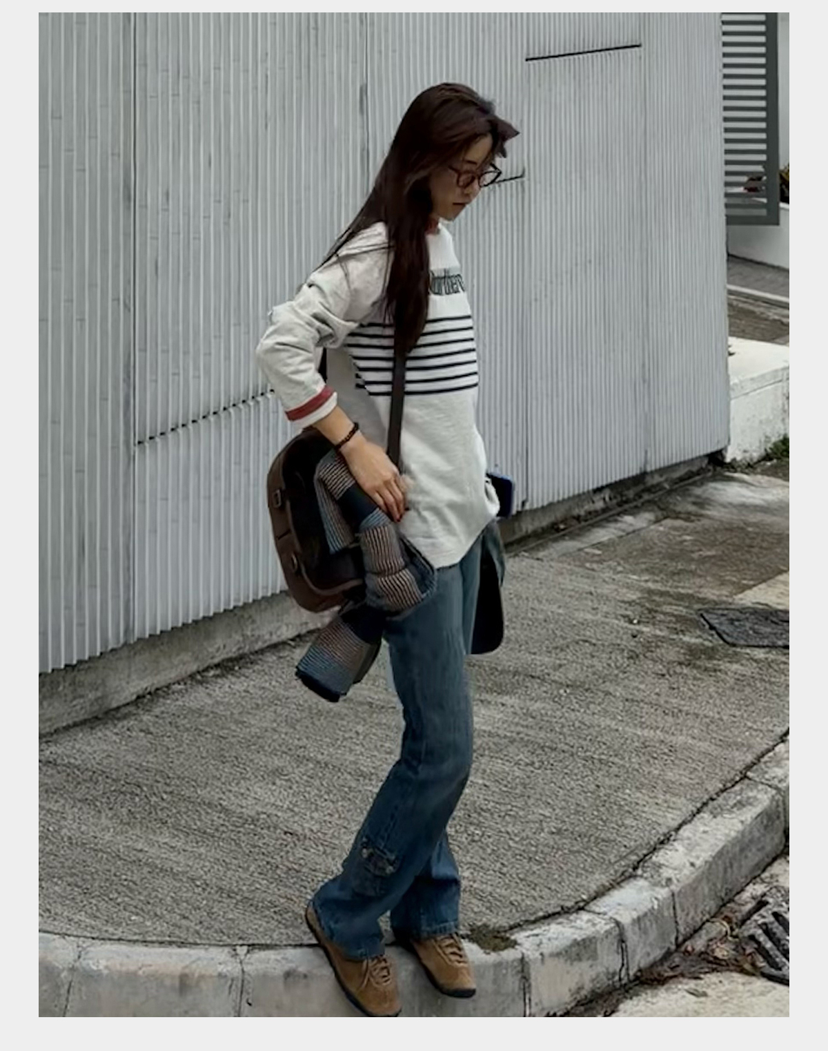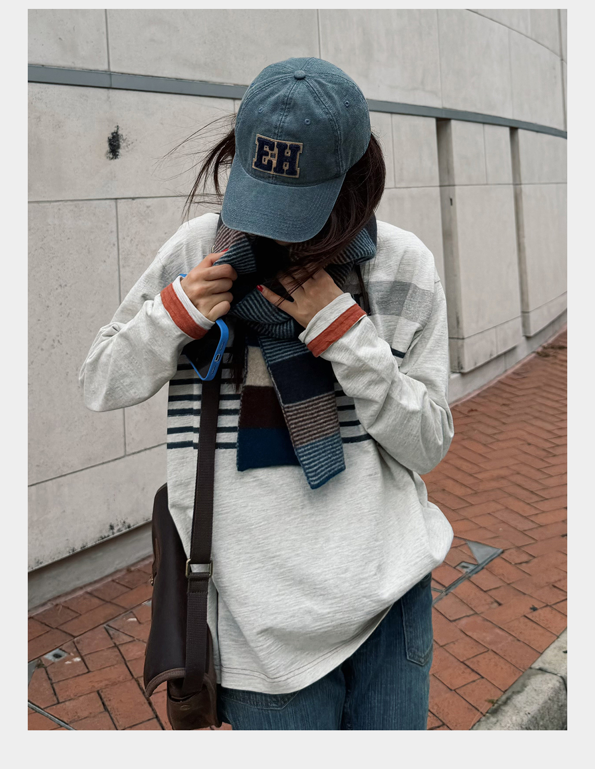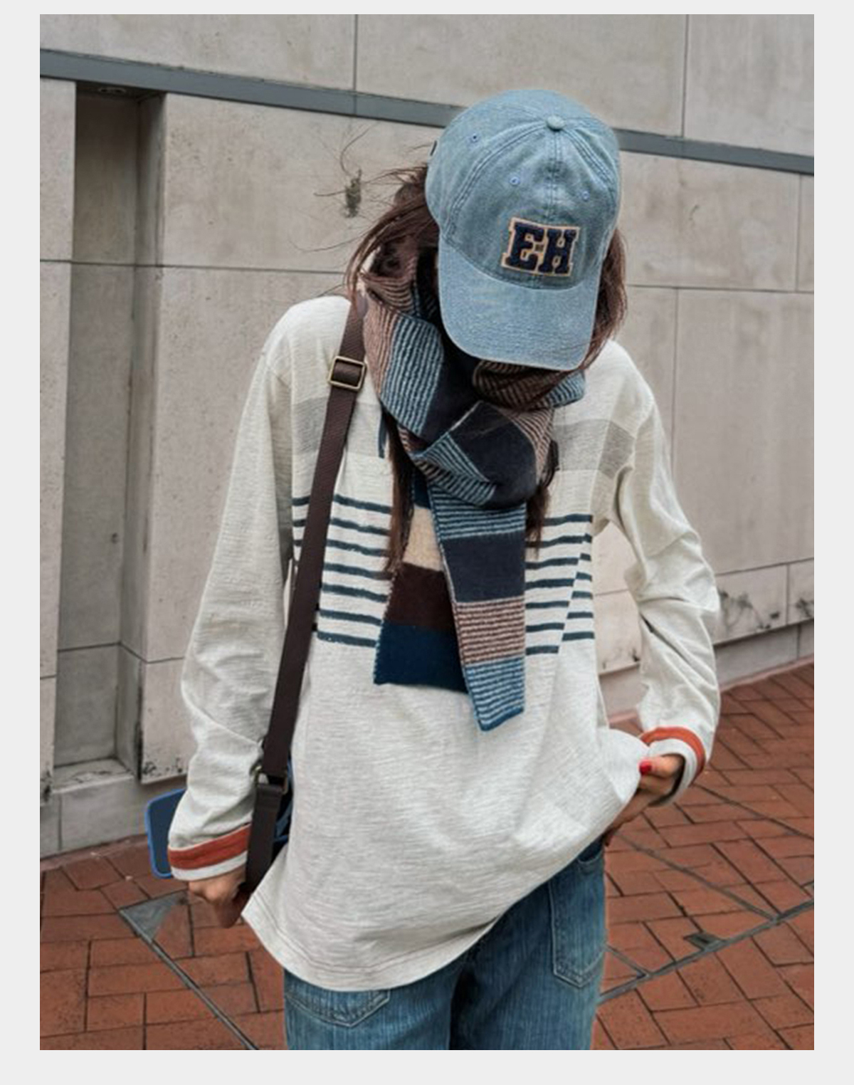 ROMI STUDIO“美式街头”色织定染竹节棉撞色做旧印花T恤RWCASY6440