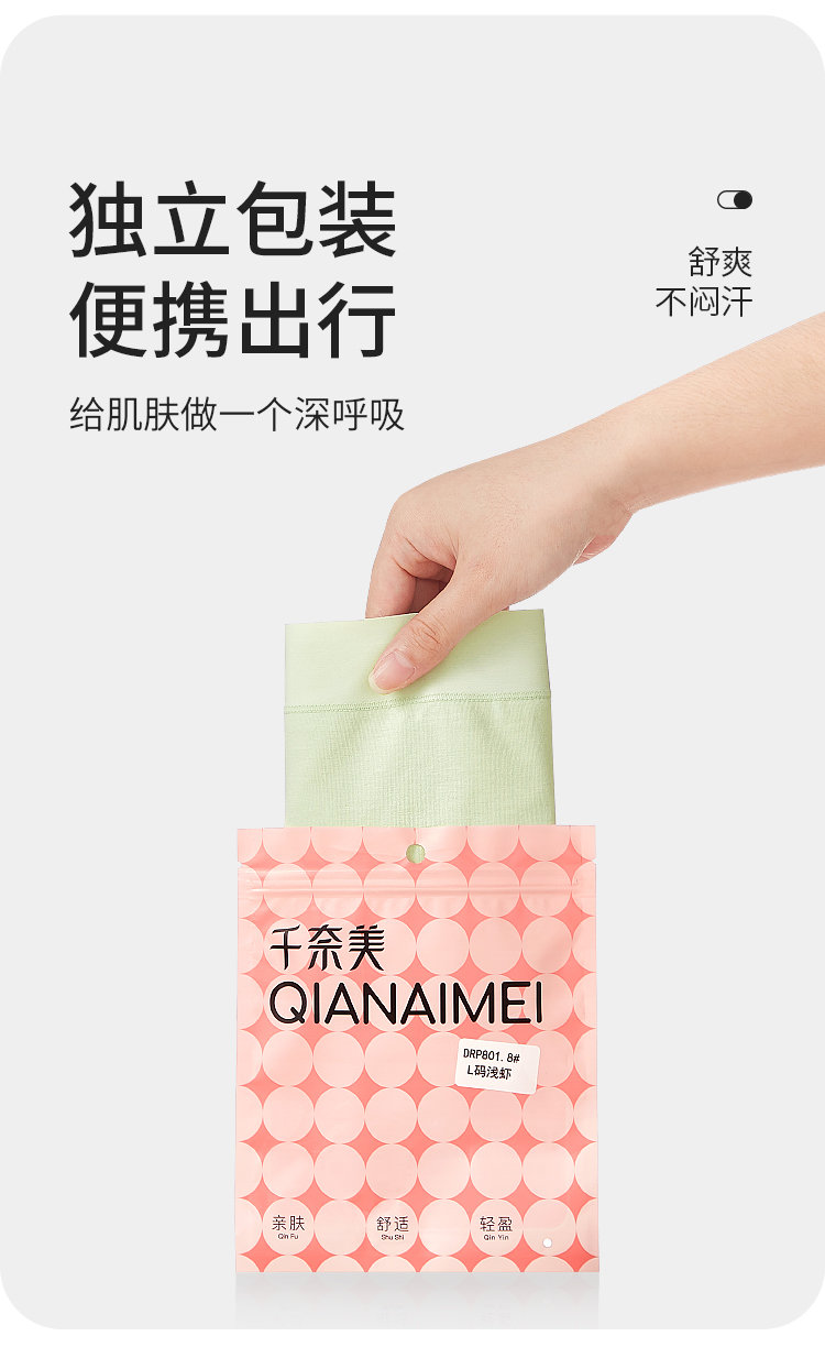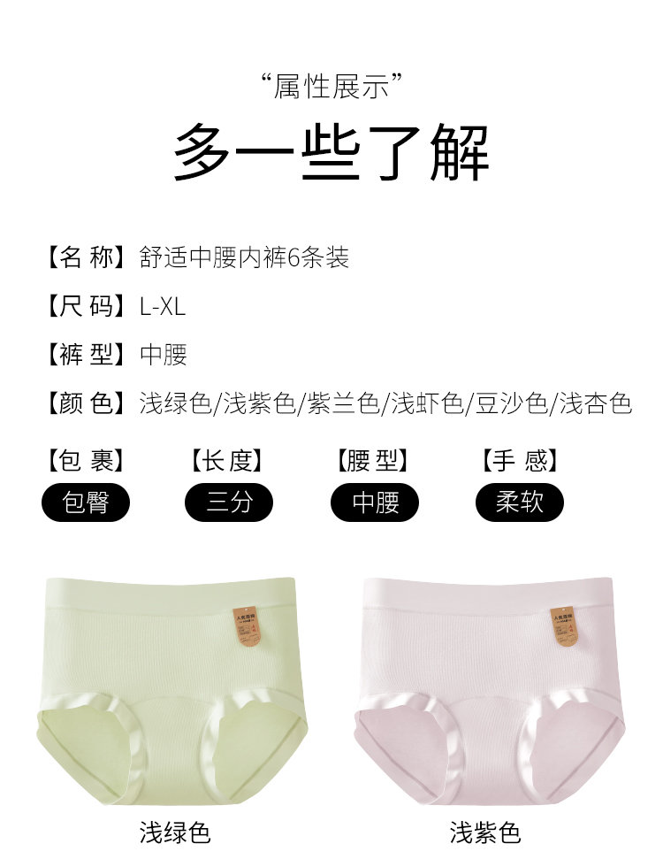 【品名】千奈美A类原棉32A抗菌抗hpv加长底裆女士内裤6条DRP801.6
