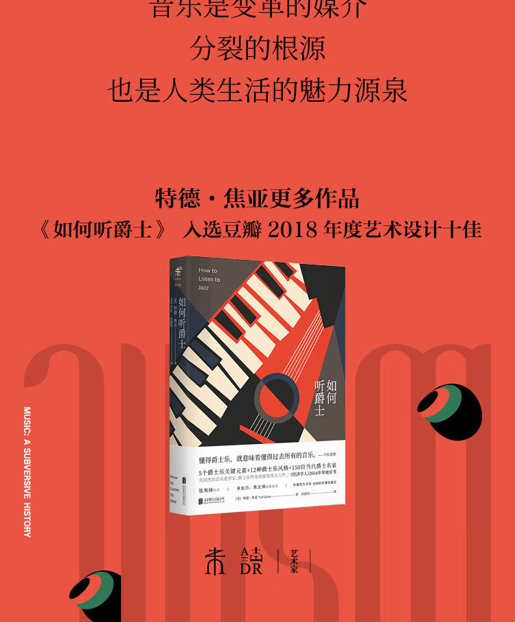 特德·焦亚,钢琴演奏家、爵士乐资深评论家、音乐史学家,著有《如何听爵士》《爵士乐史》以及《爵士乐标准曲》等相关音乐书籍11种,作品屡获殊荣。特德·焦亚曾于斯坦福大学任教,出任过www.jazz.co m网站总编。他被《达拉斯晨报》誉为“美国杰出的音乐史学家之一”,并于2017年获得了由“爵士乐新闻记者出版协会”授予的“爵士乐新闻业终身成就奖”。