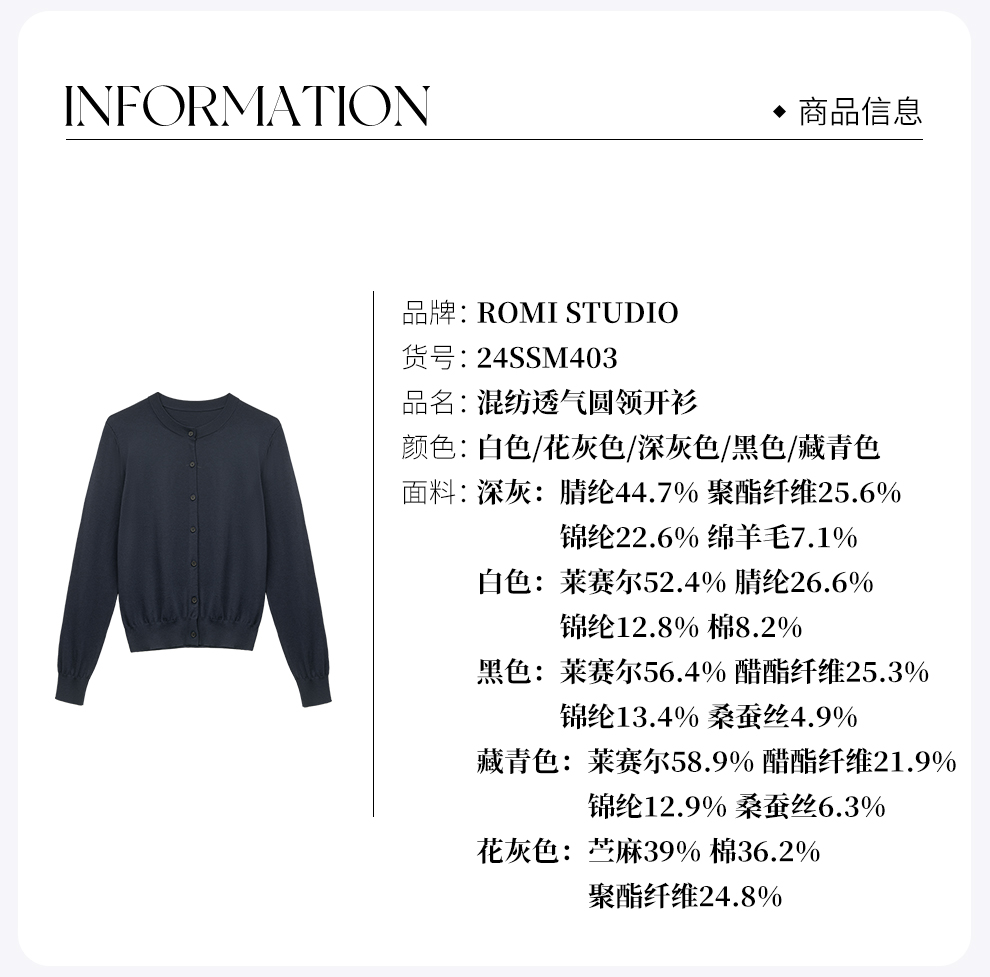 ROMI STUDIO“法式衣橱"16针单边冚毛织混纺透气圆领开衫 24SSM403