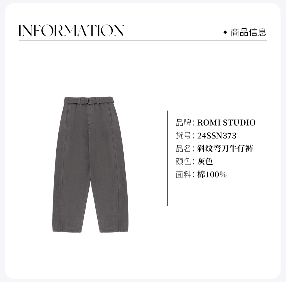 ROMI STUDIO"率性优雅"100%斜纹牛仔棉腰带弯刀牛仔裤24SSN373