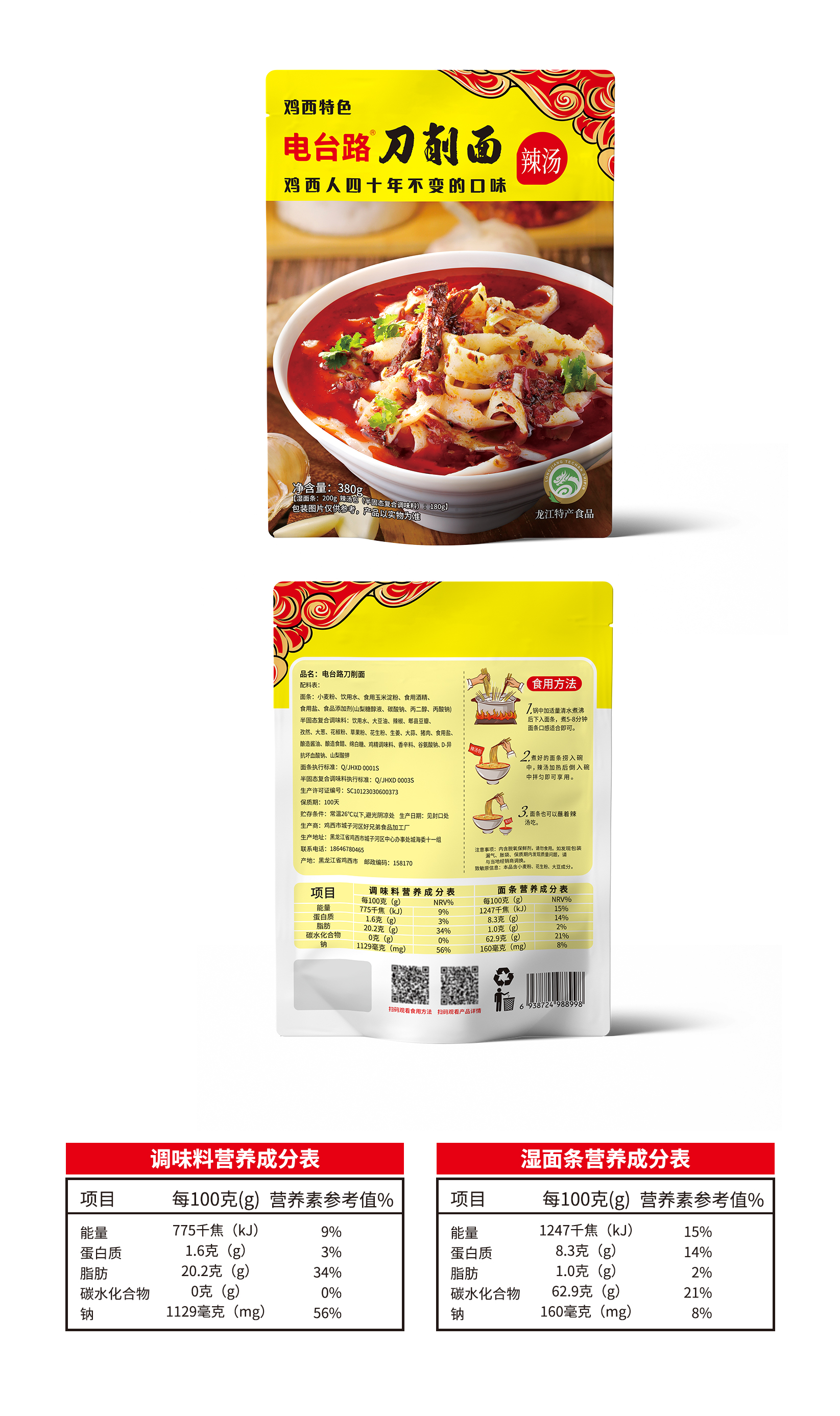 鸡西刀削面电台路黄牌子带辣汤宽面条袋装辣汤面条方便食品面条