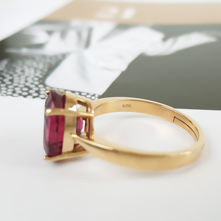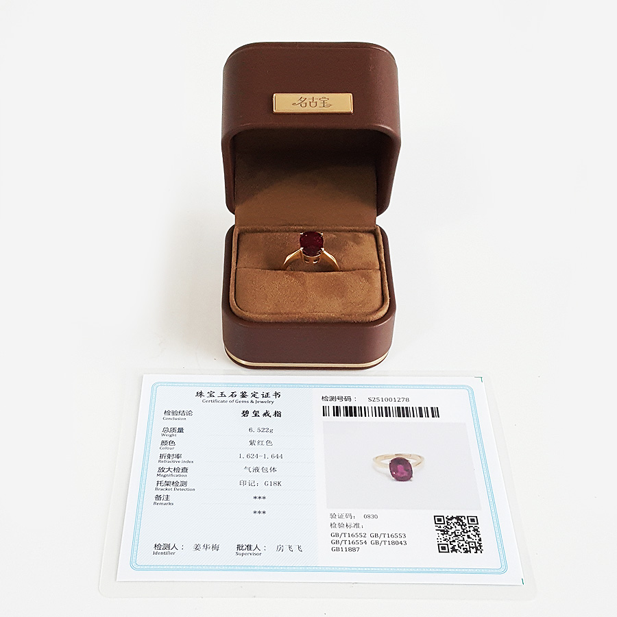 【天然正品】AU750玫瑰金镶天然卢比莱近3克拉碧玺戒指23号(戒圈可改)女士191025TJ58