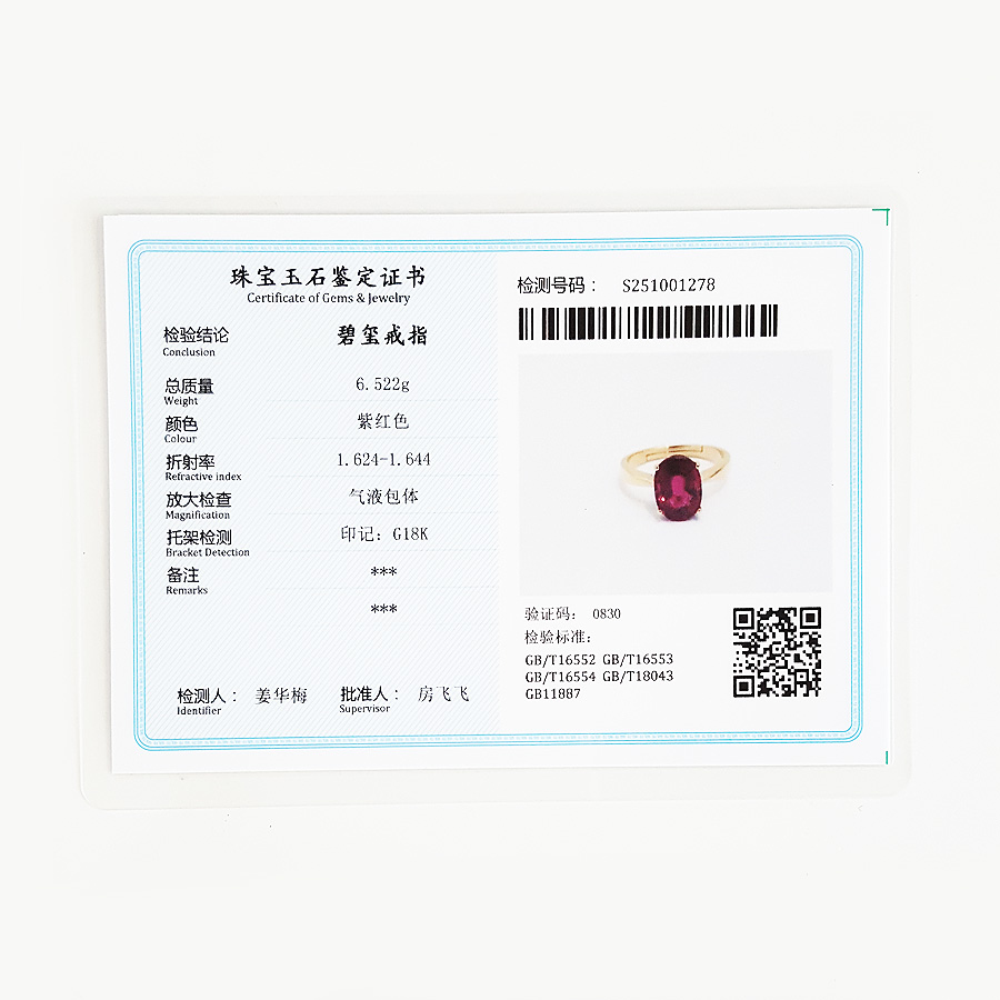 名称 | AU750玫瑰金镶天然卢比莱近3克拉碧玺戒指 |