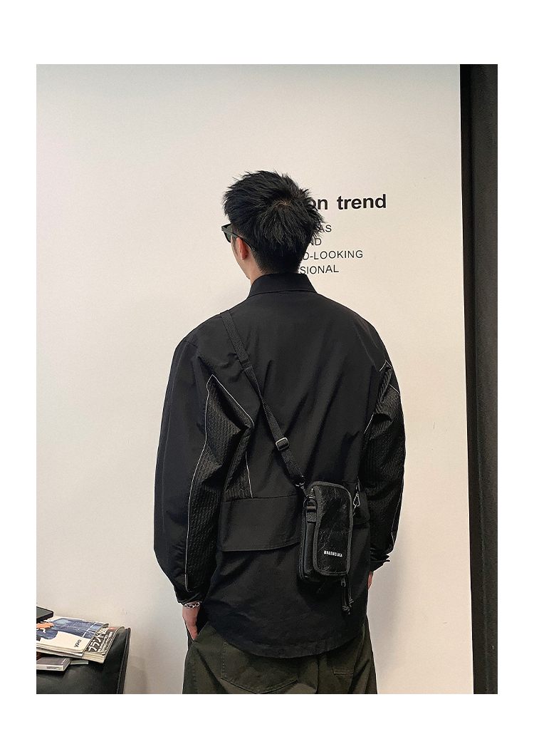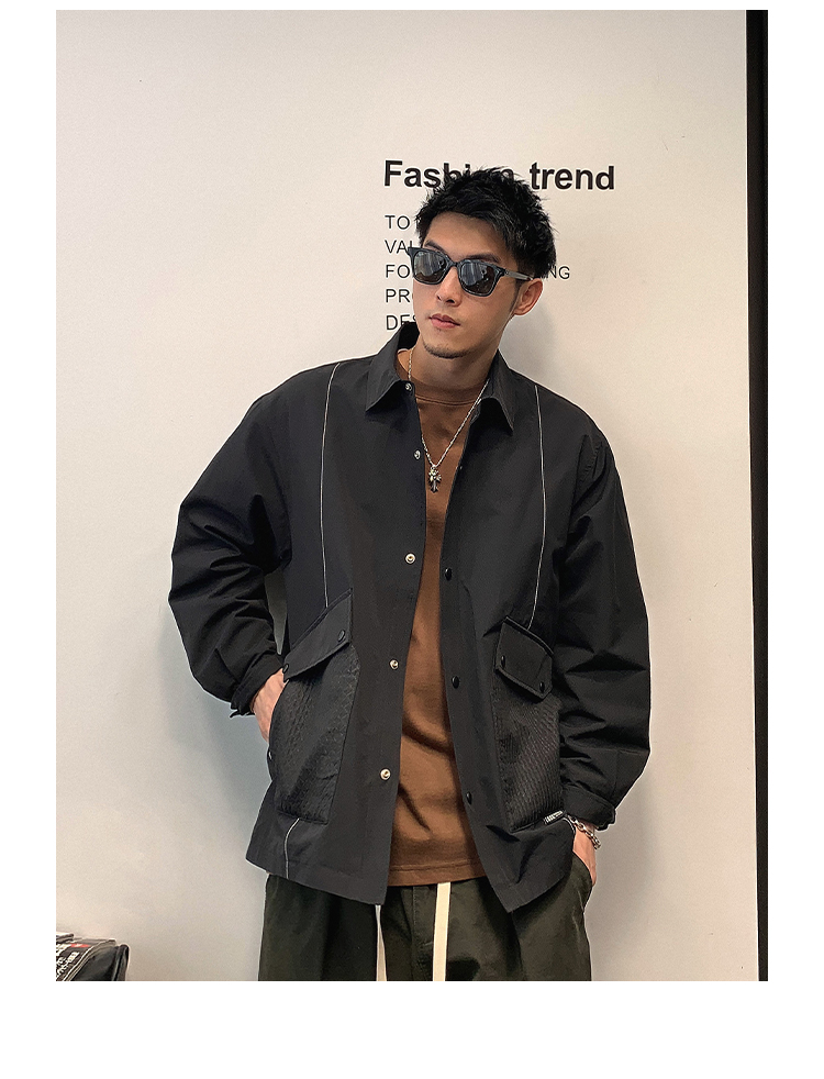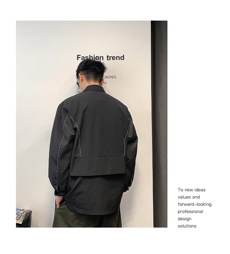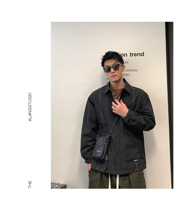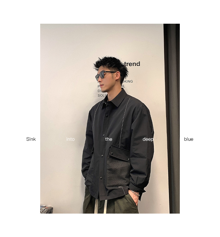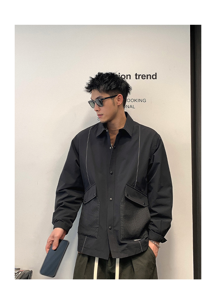 徐太浪高级感黑色方领夹克男春秋潮牌美式休闲宽松拼接口袋外套潮