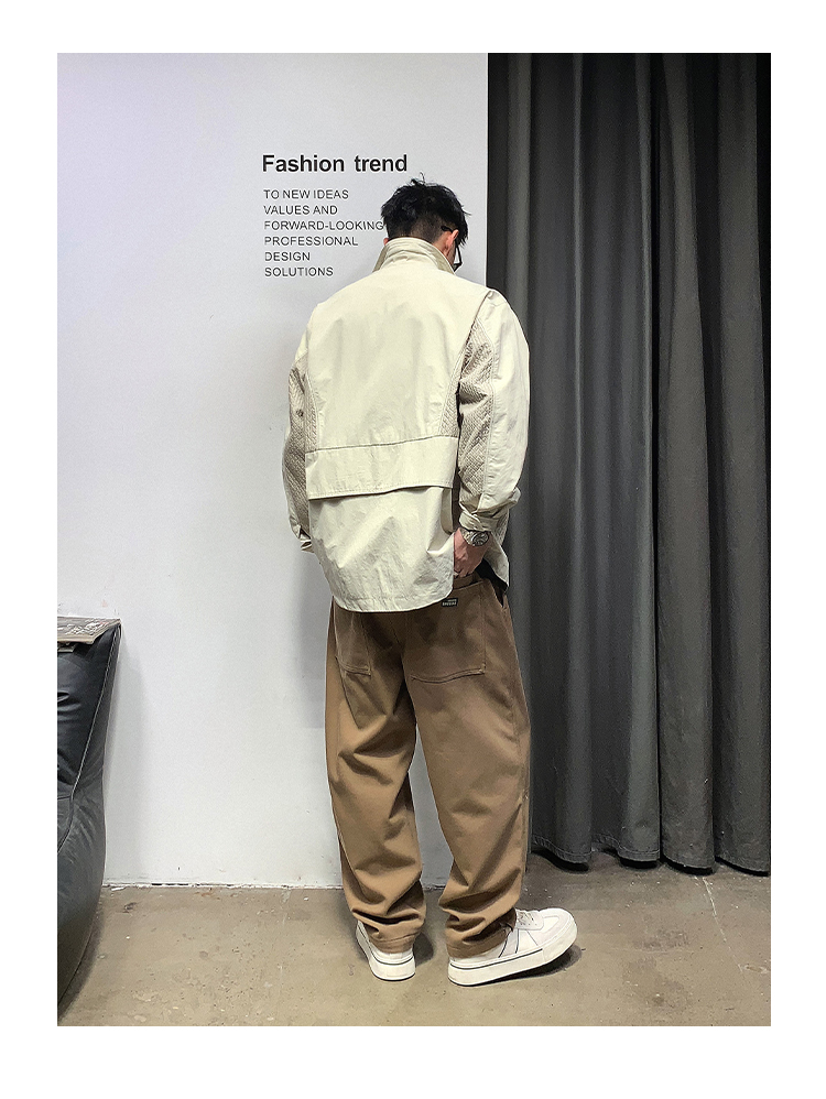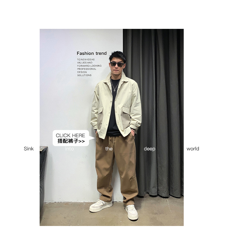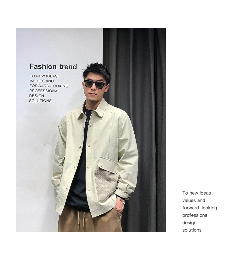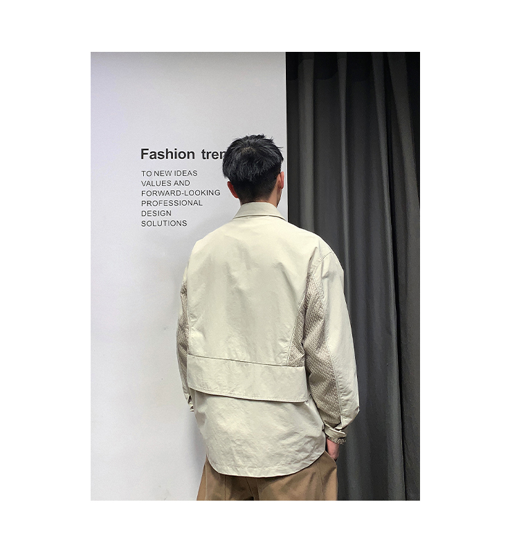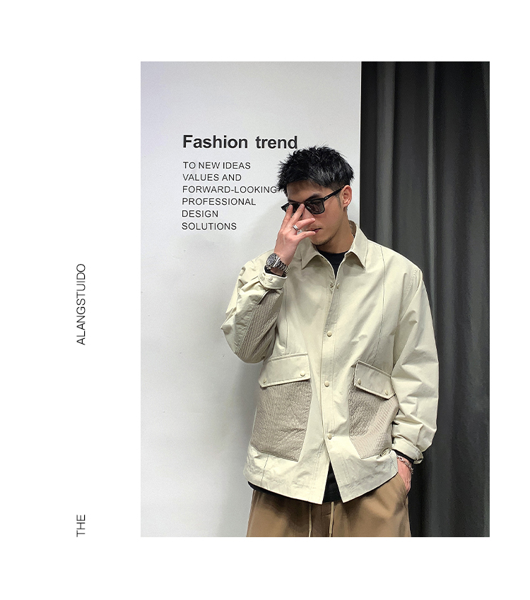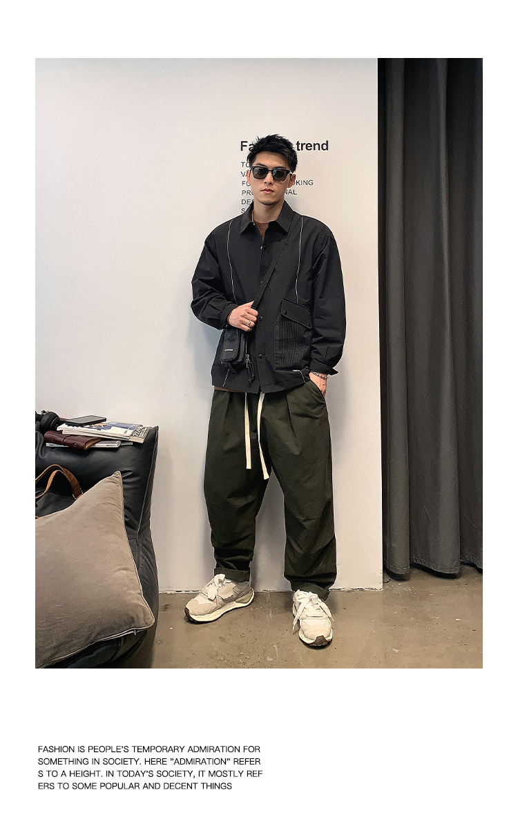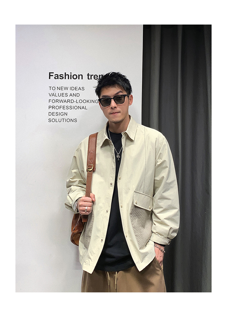 徐太浪高级感黑色方领夹克男春秋潮牌美式休闲宽松拼接口袋外套潮
