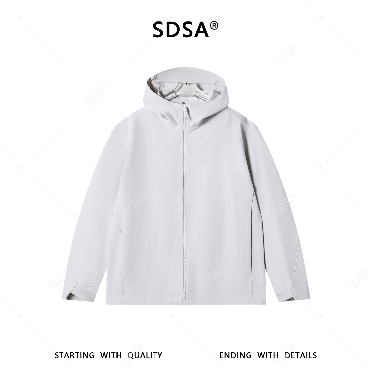 SDSA男装2026新款高贵轻奢简约纯色拉链立领软壳连帽夹克外套
