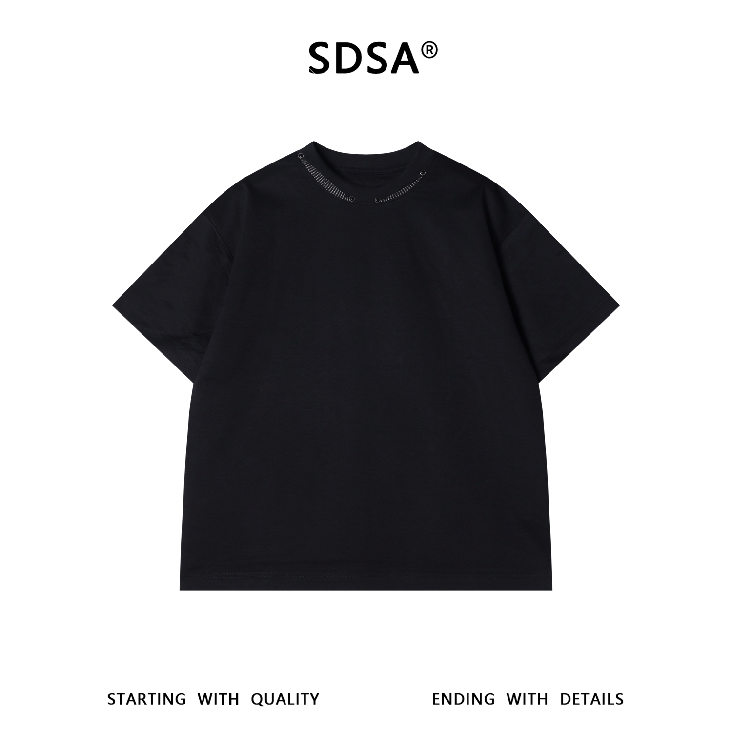 SDSA男装2026新款高贵轻奢潮牌简约拼接铆钉圆领短袖T恤百搭上衣