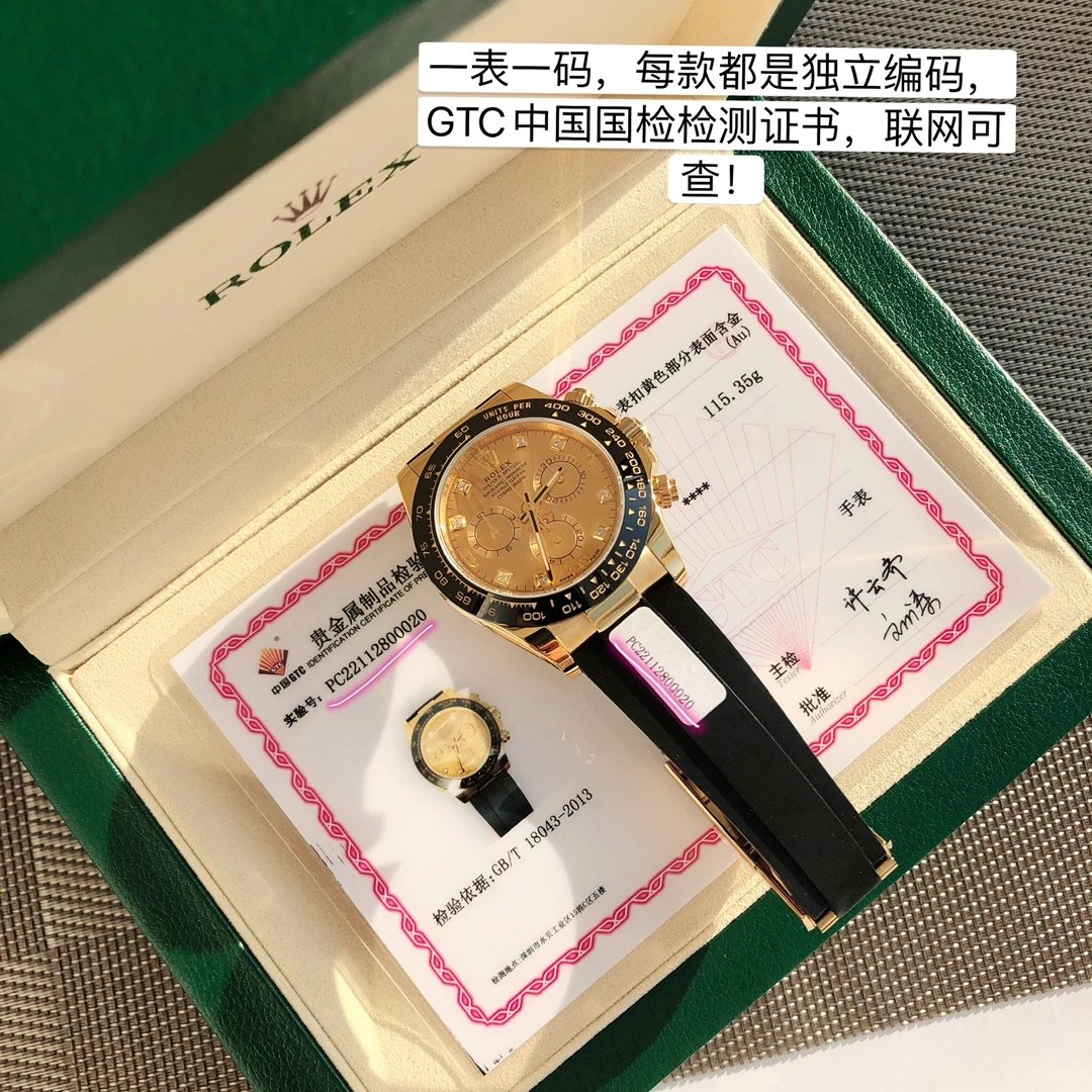 ROLEX-劳力士迪通拿系列。鼎力巨作 ,真真正正整表包金永不掉色。劳力士专利904钢百分百。顶级工艺包金真金含量支持任意检测!
