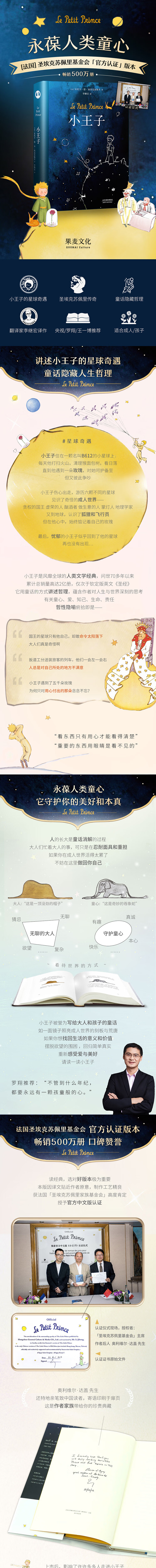 遥远星球上的小王子,与美丽而骄傲的玫瑰吵架负气出走,在各星球漫游中,小王子遇到了傲慢的国王、酒鬼、惟利是图的商人,死守教条的地理学家,后来来到地球上,试图找到治愈孤独和痛苦的良方。