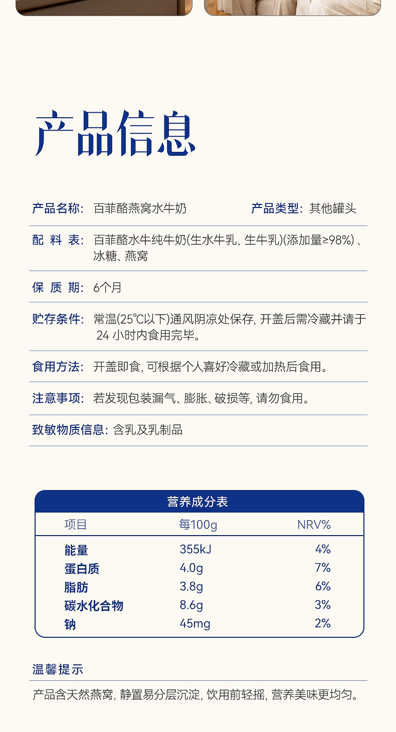 百菲酪 燕窝水牛奶 孕妇儿童营养牛奶 150g/瓶