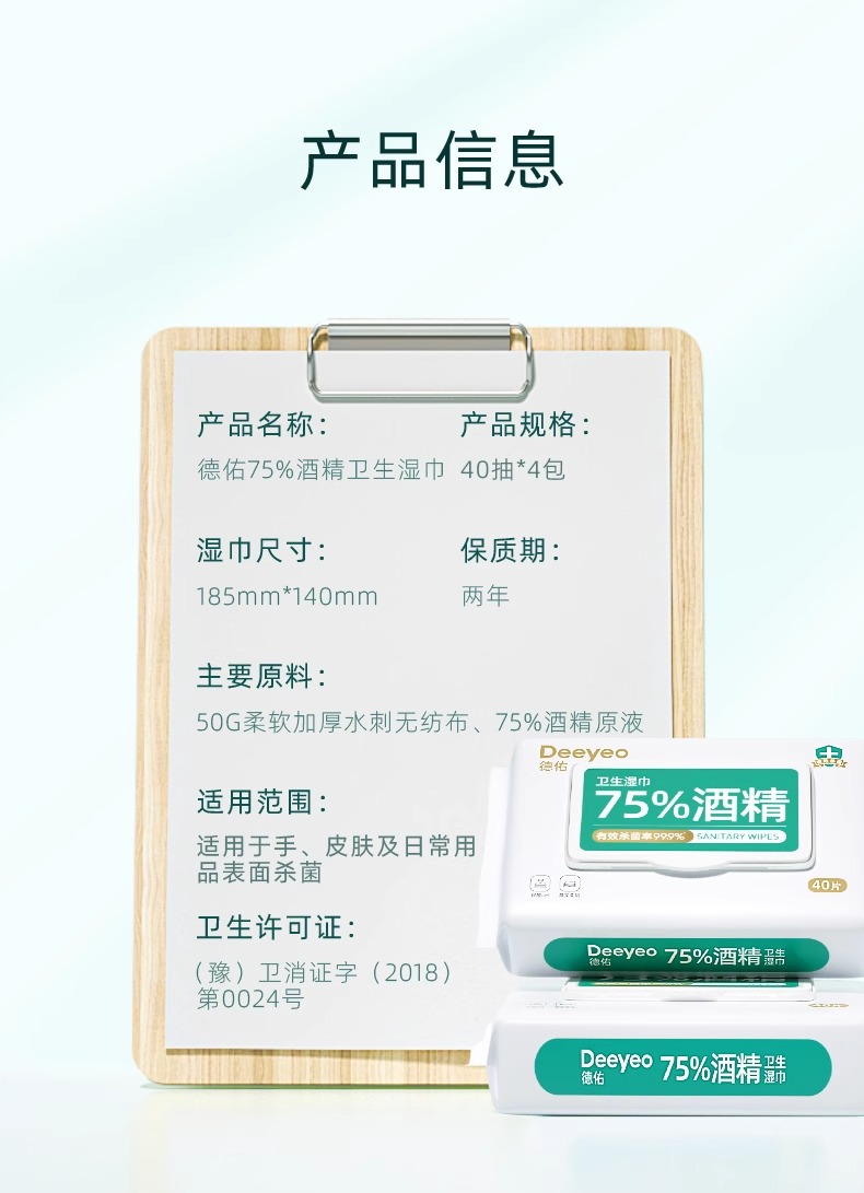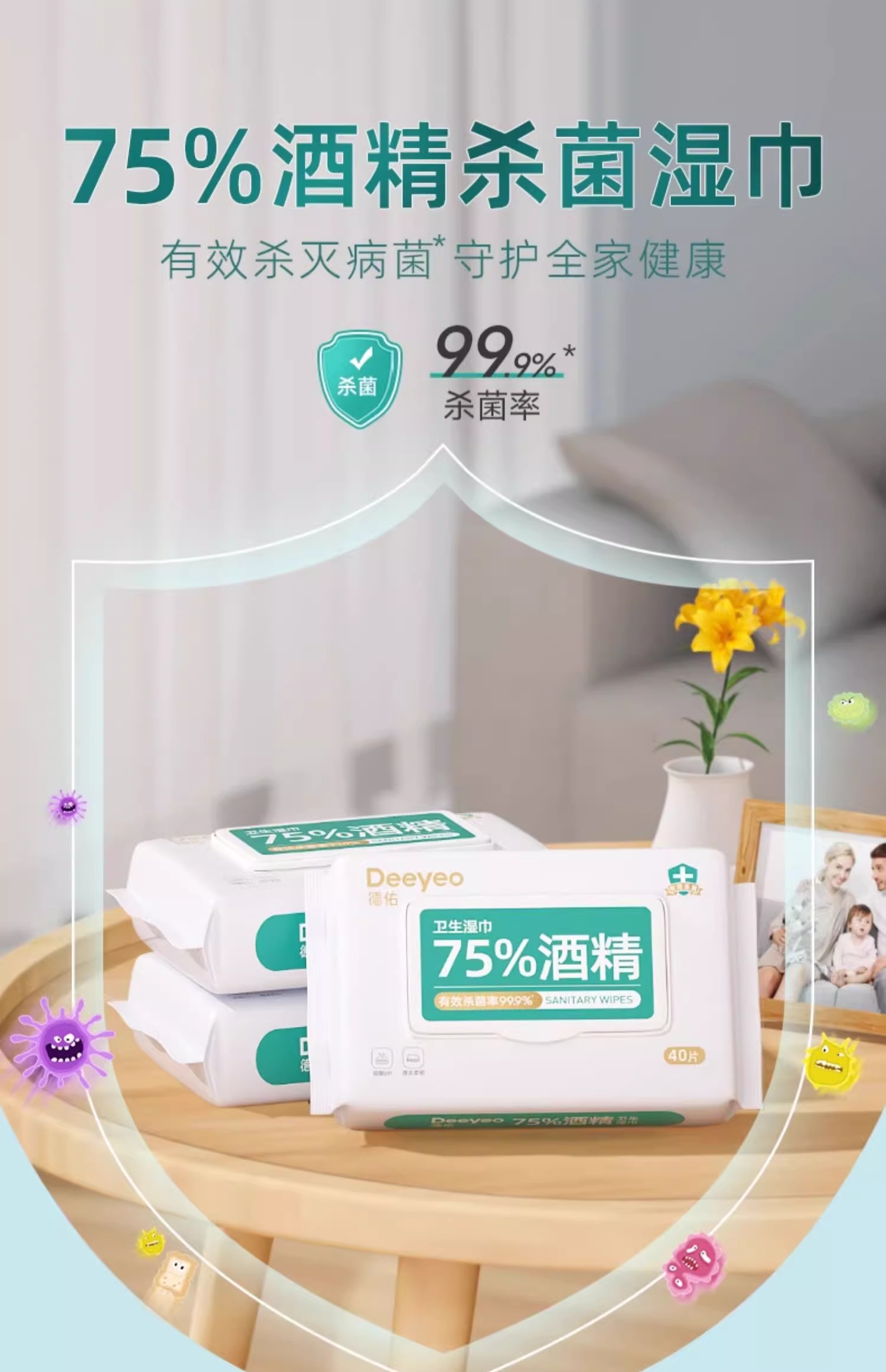 DY德佑75度酒精湿巾加厚家庭实惠大包装擦手40抽*4包/8包