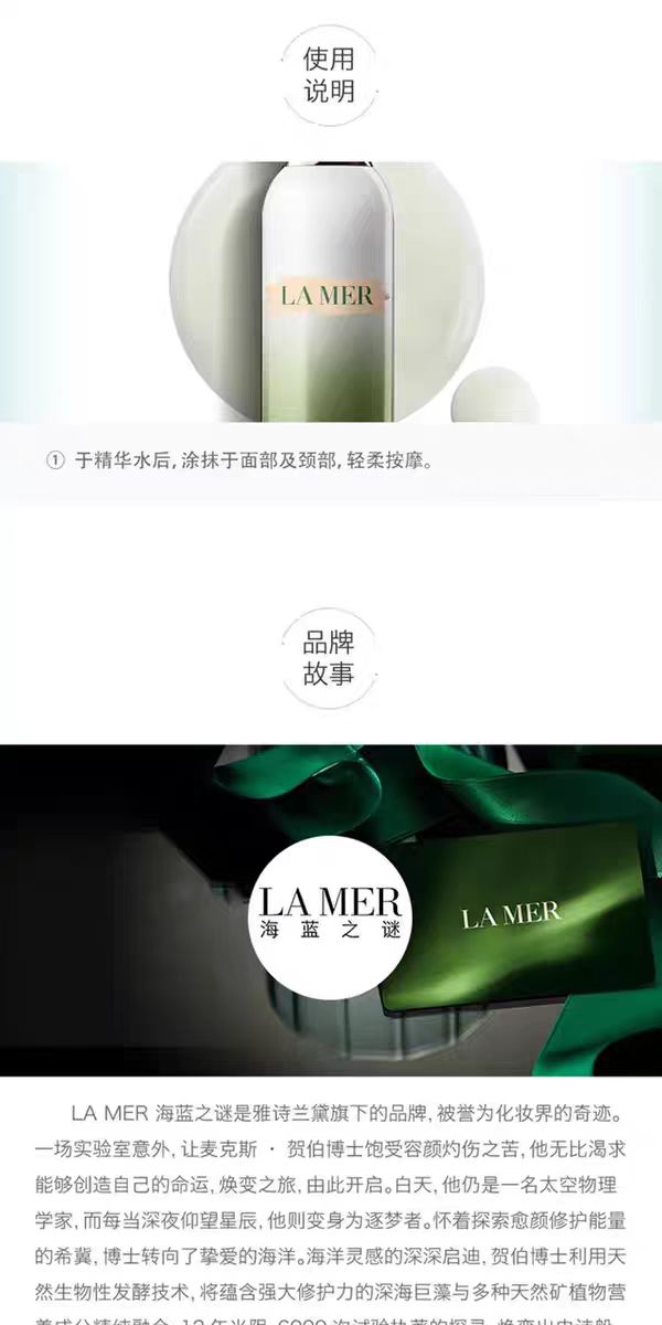 品牌名称:LA MER海蓝之谜 品牌发源地:美国