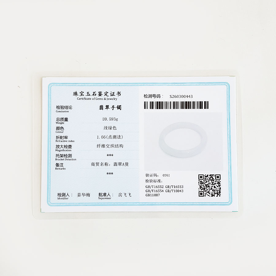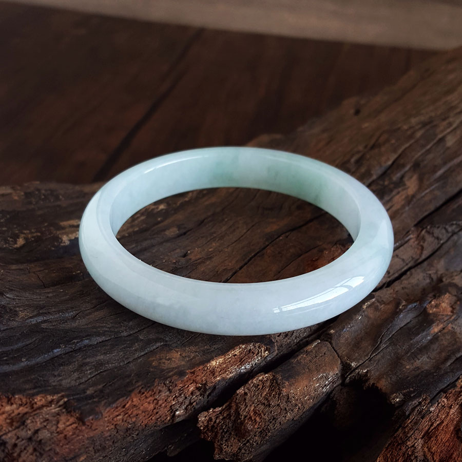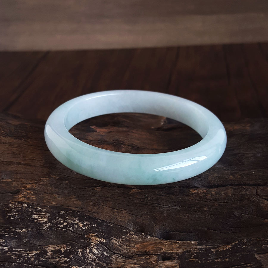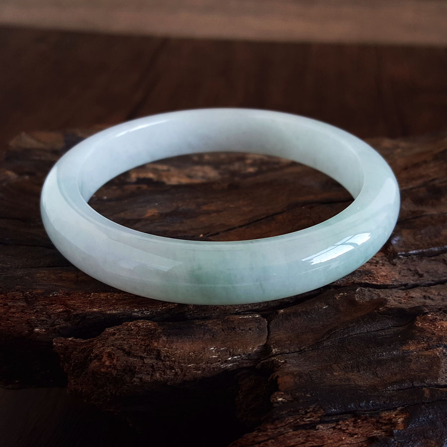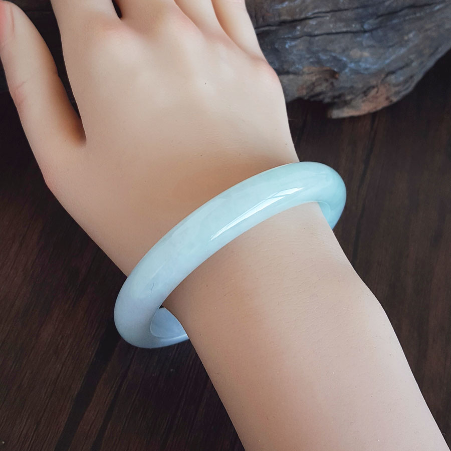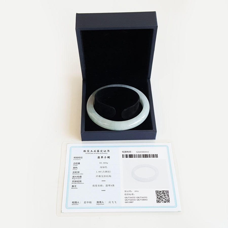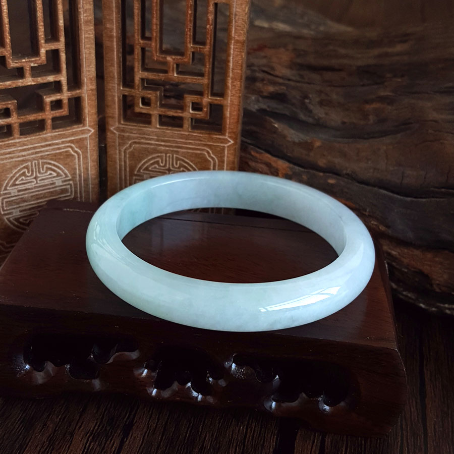 名称 | 天然正桩细腻无纹裂62.5号糯种青白底翡翠手镯 |