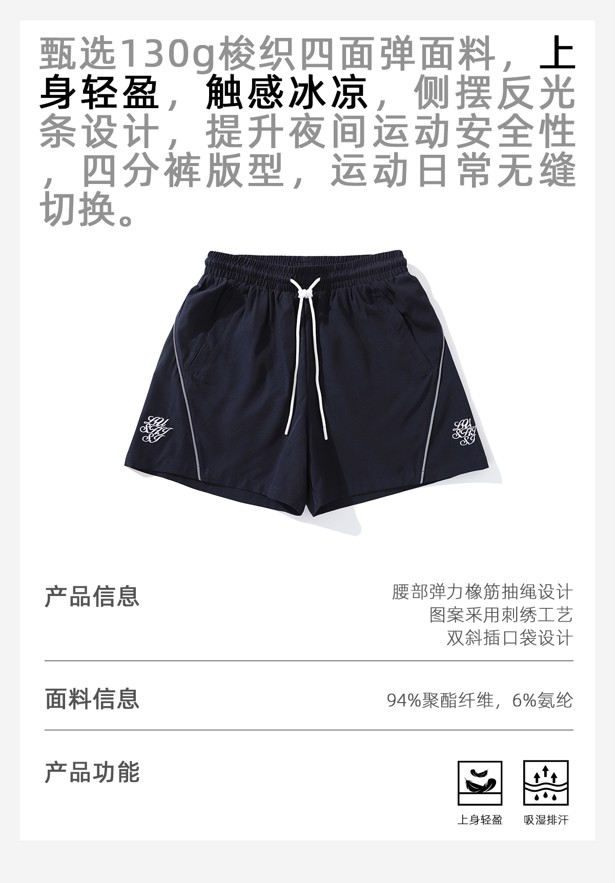 LUSHISI雷励前行主题运动篮球短裤四面弹面料吸湿排汗凉感轻盈裤