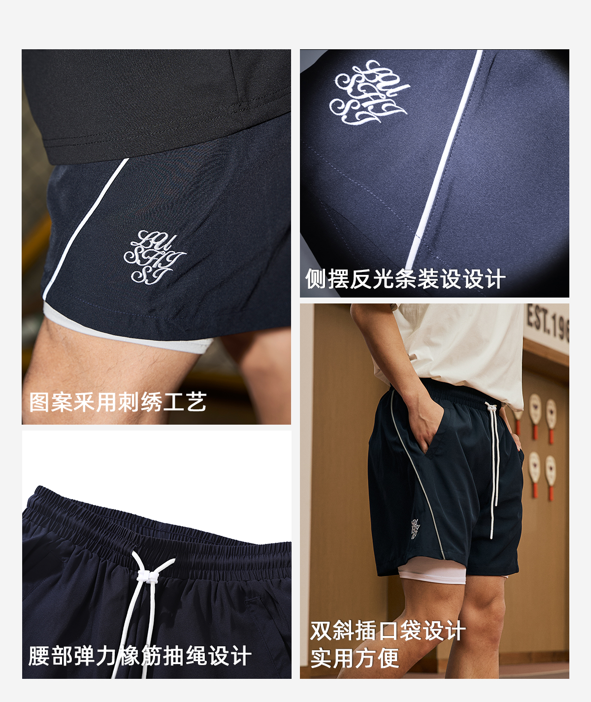 LUSHISI[日月星辰]美式刺绣运动速干篮球短裤训练不过膝四五分裤