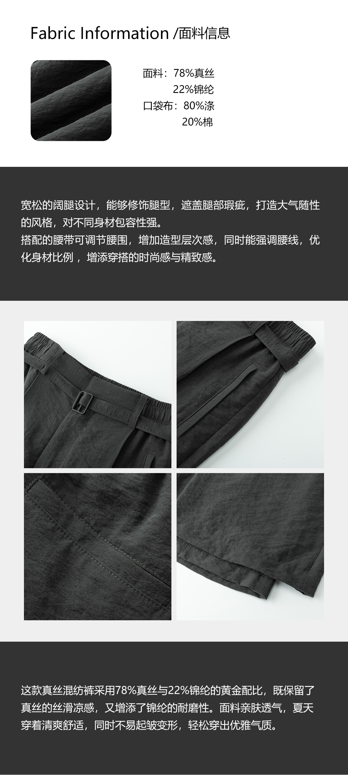 COCO ZONE 刘一一 【真丝混纺】复古简约松紧腰带休闲裤CD2A1119