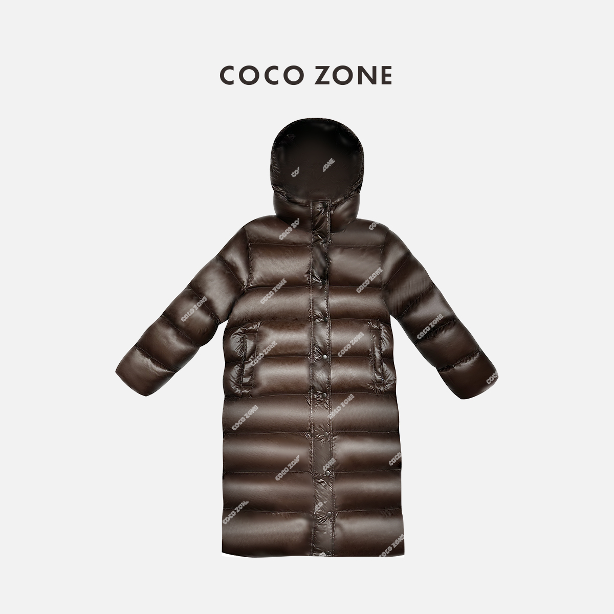 COCO ZONE美拉德90鹅绒秋冬连帽长款保暖羽绒服23C30308