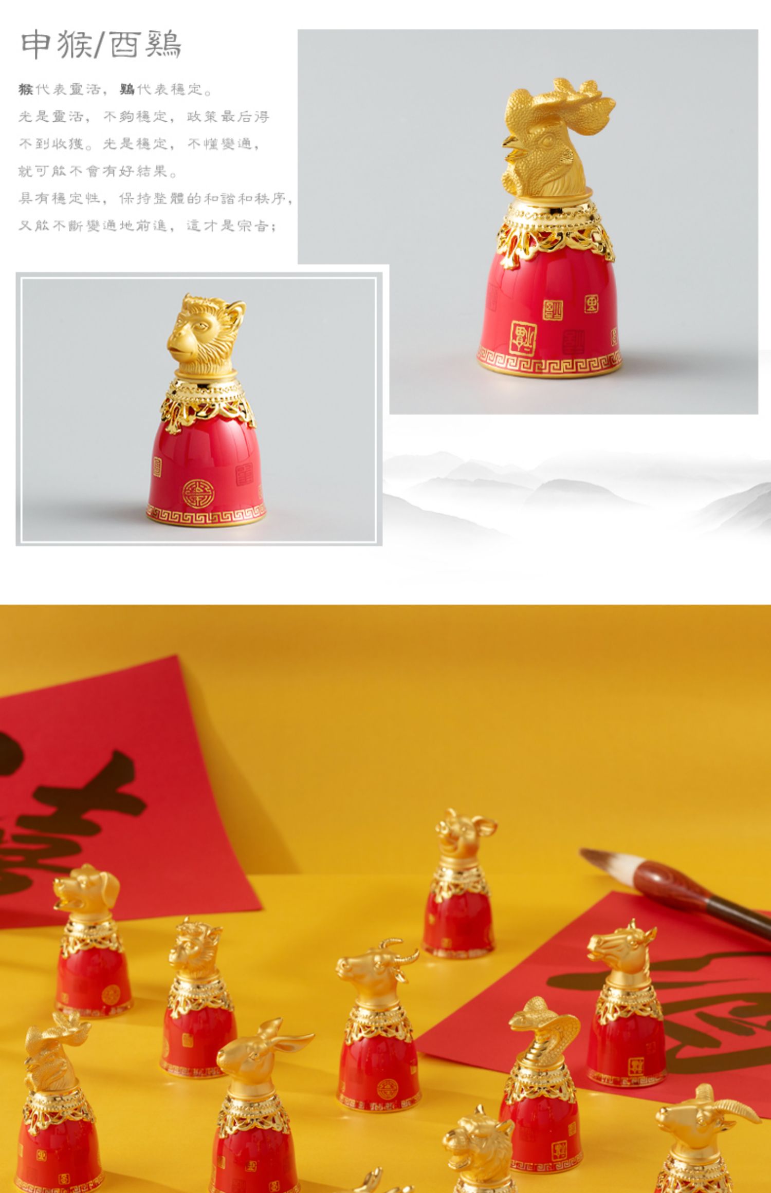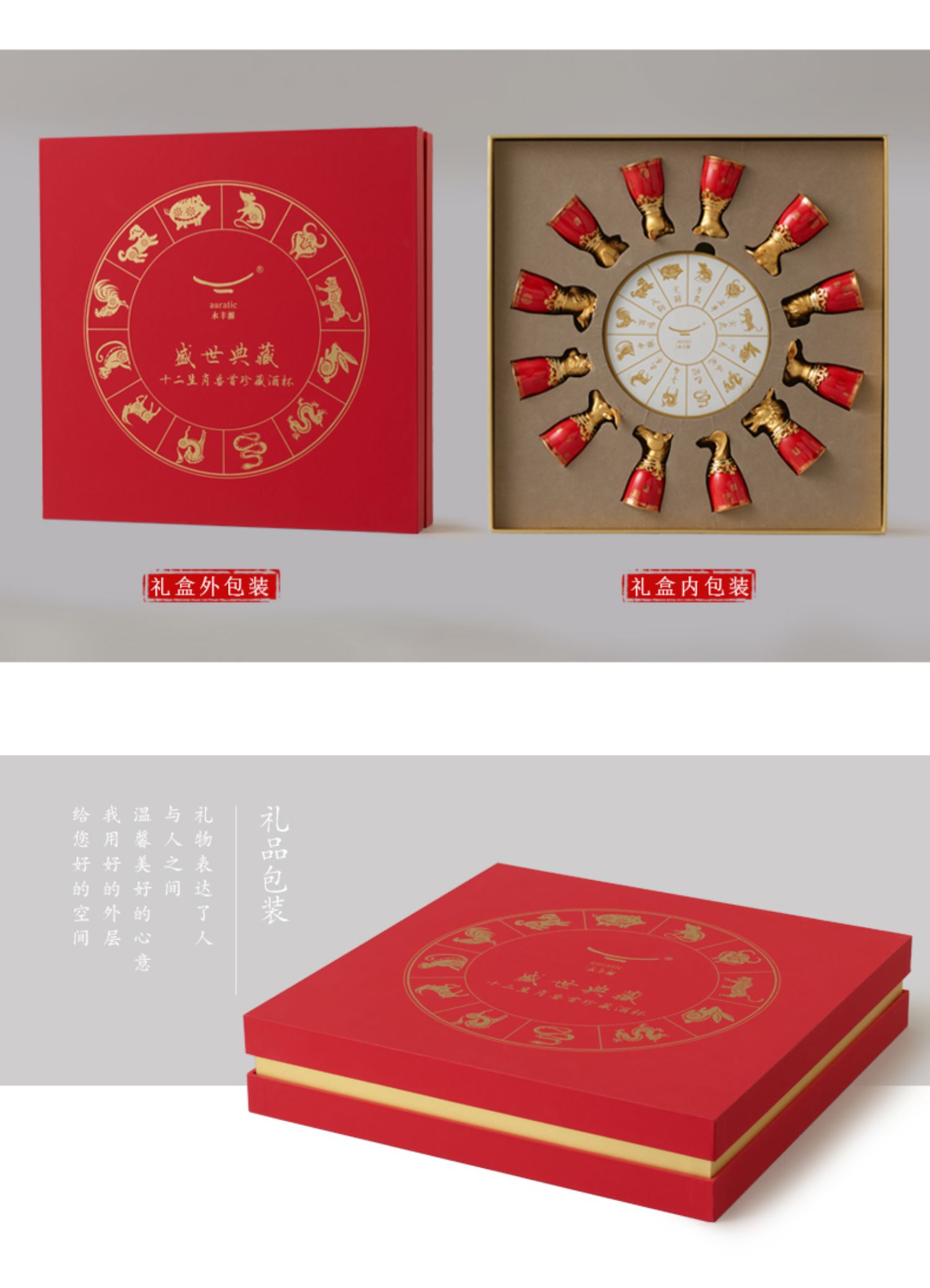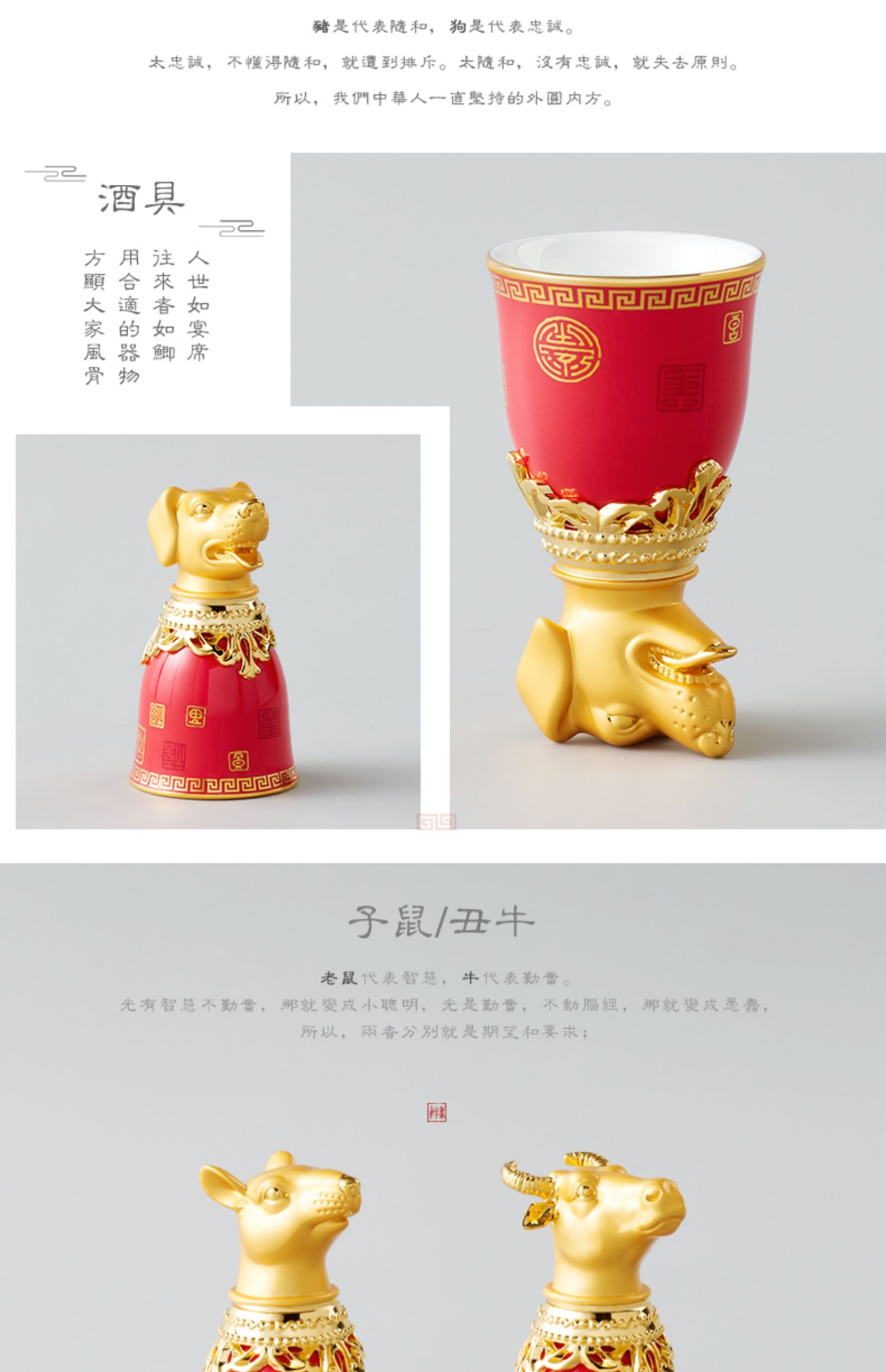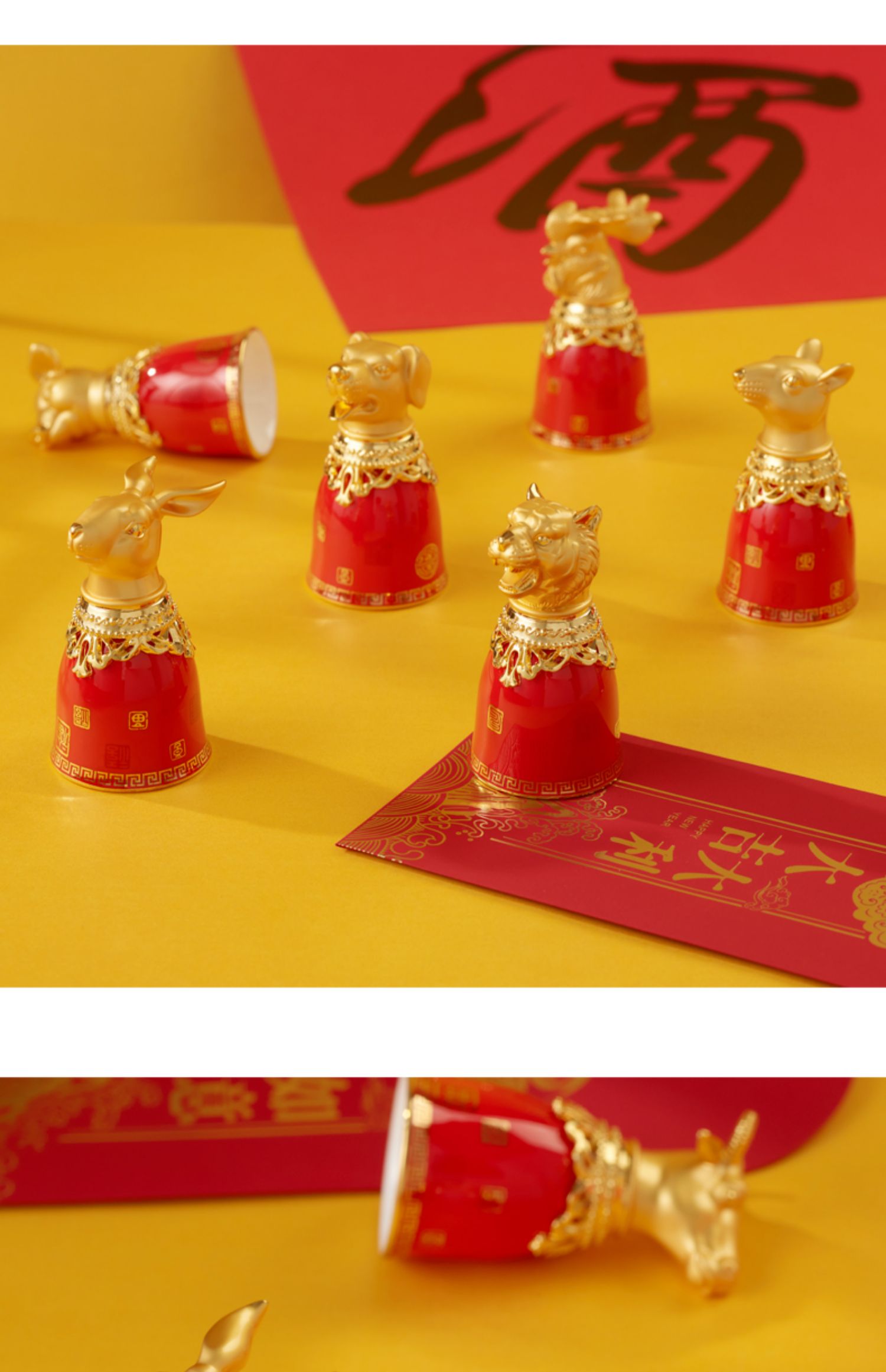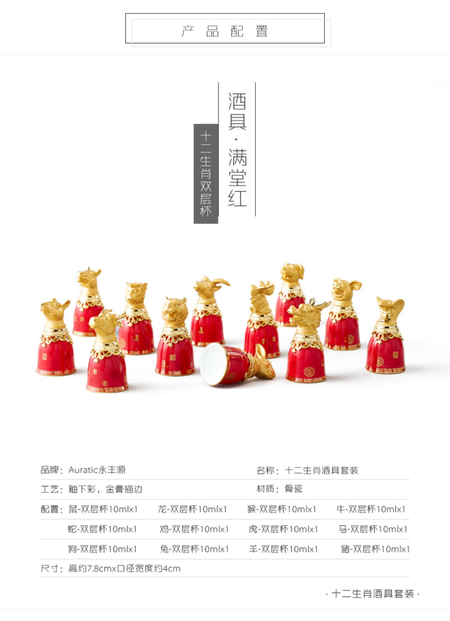 永丰源 满堂红十二生肖烈酒杯 高档陶瓷酒具12兽首陶瓷酒具 送礼