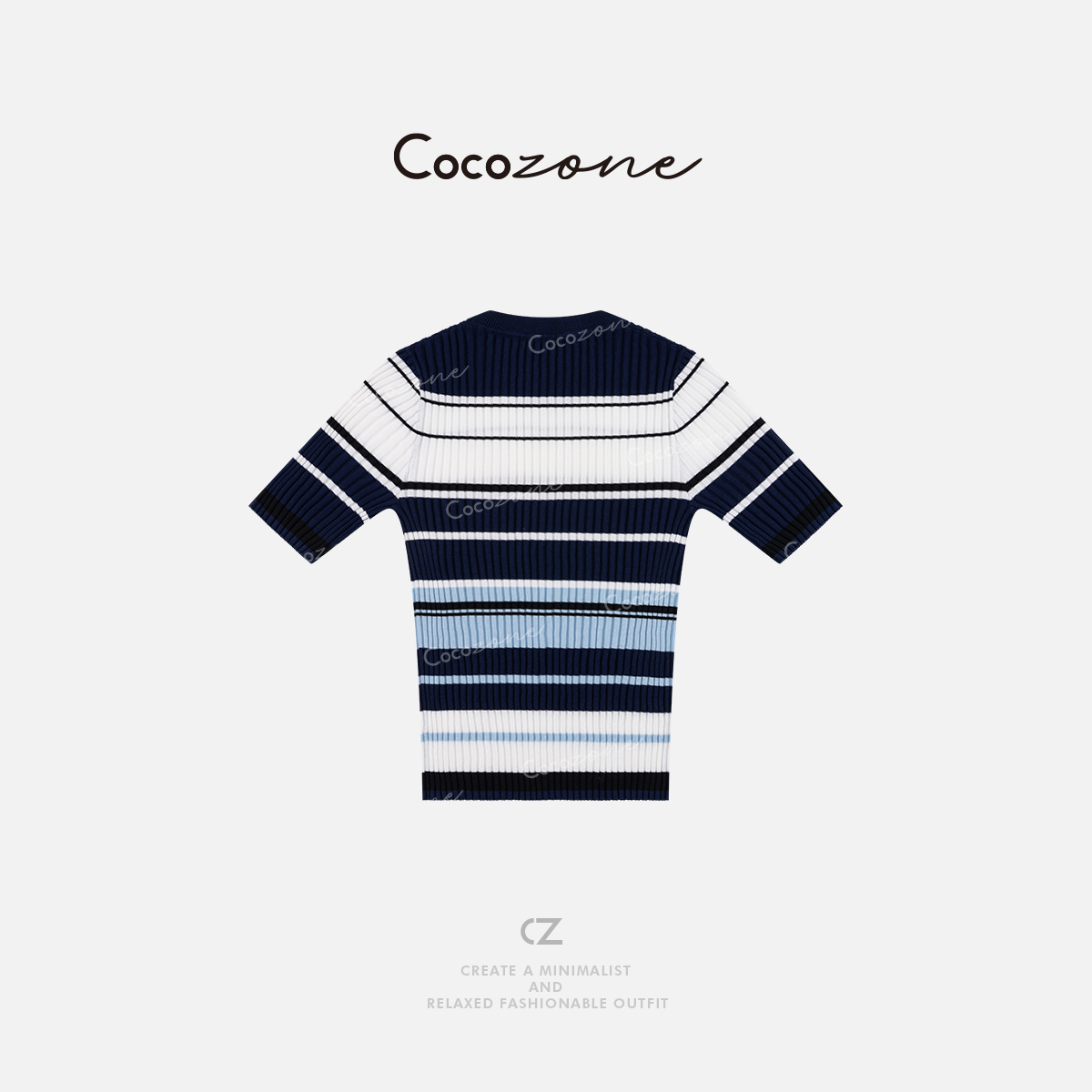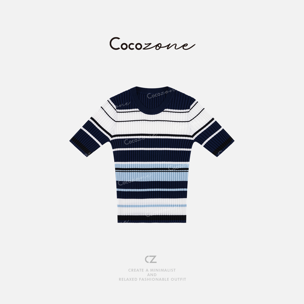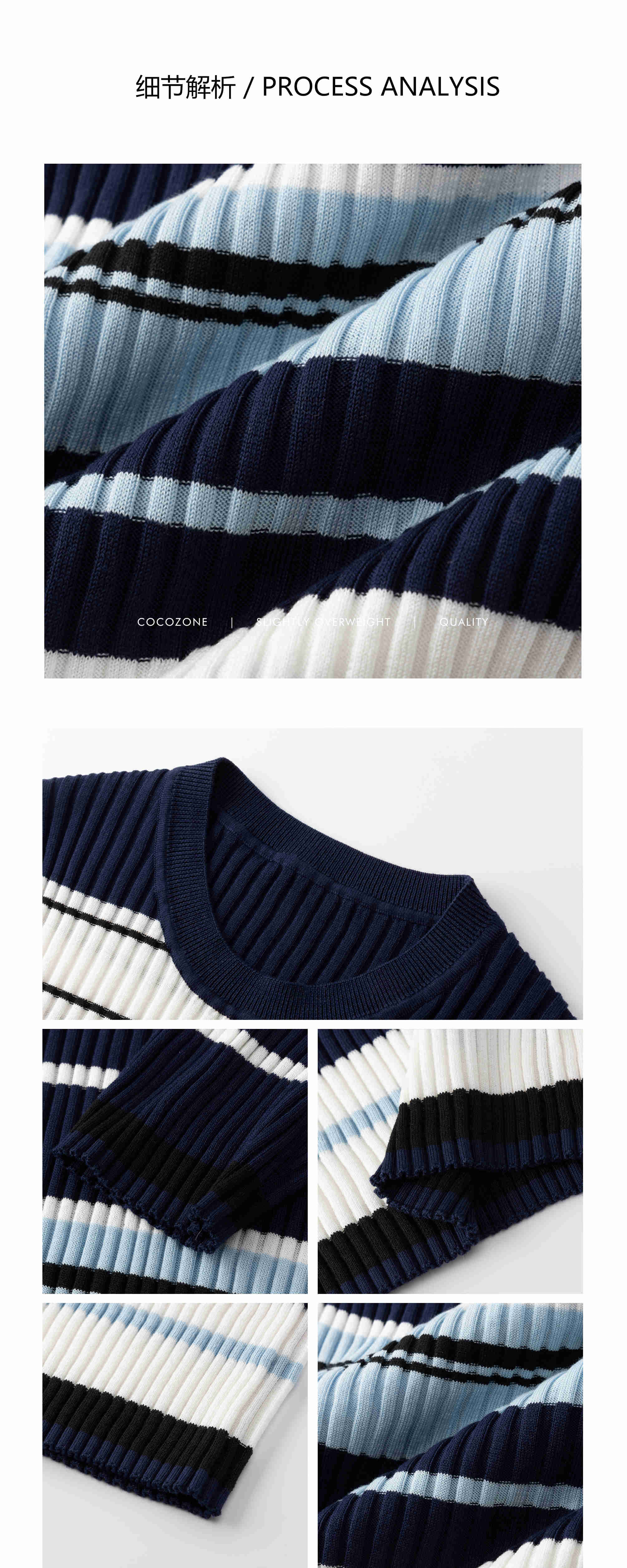 COCO ZONE刘一一 【100莱赛尔】拼接条纹圆领毛针织衫 CD1A0572