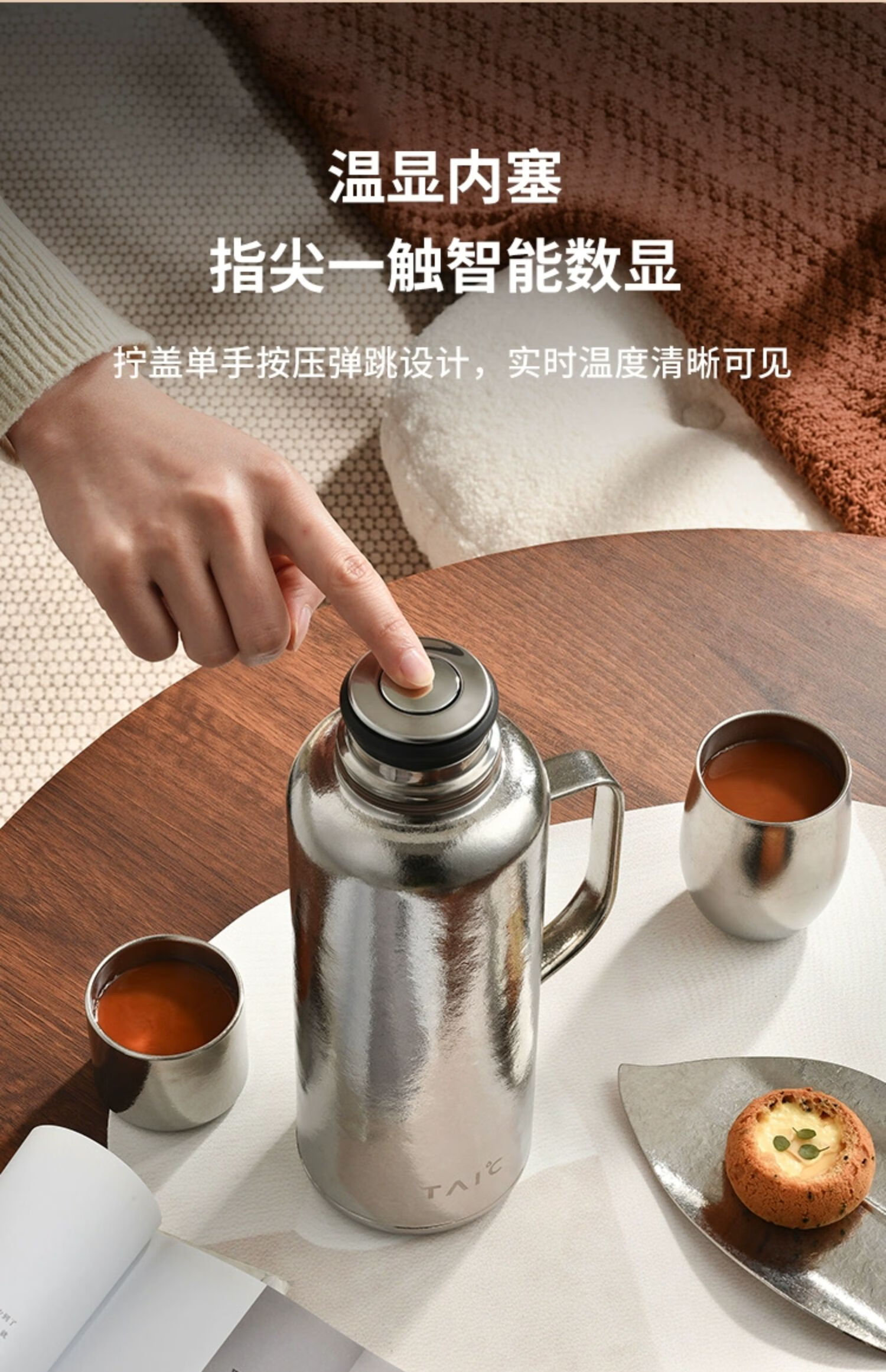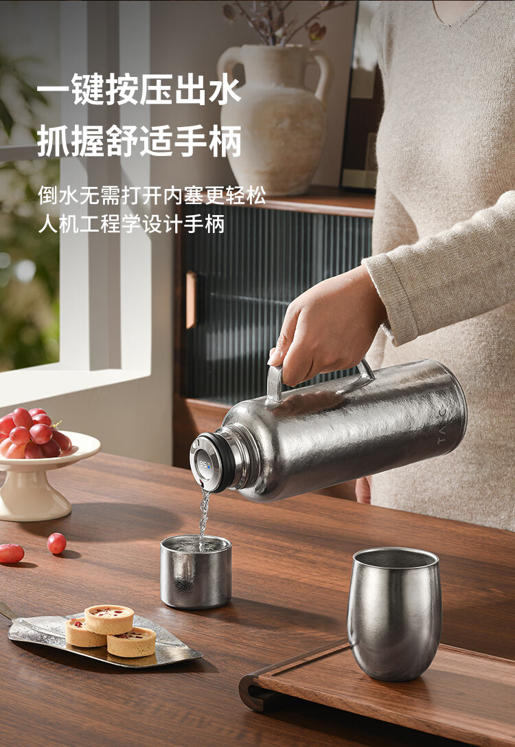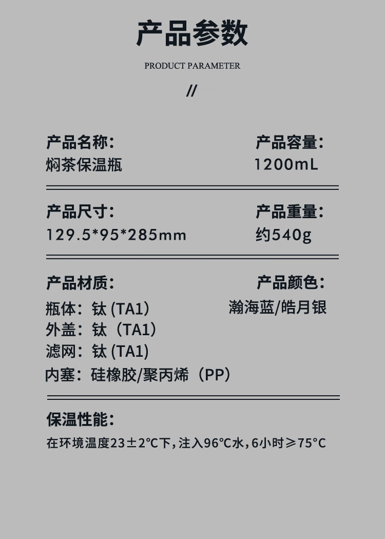 TAIC太可纯钛臻享保温壶焖茶壶保温瓶家用高档弹盖户外露营温显壶 瀚海蓝1.2L