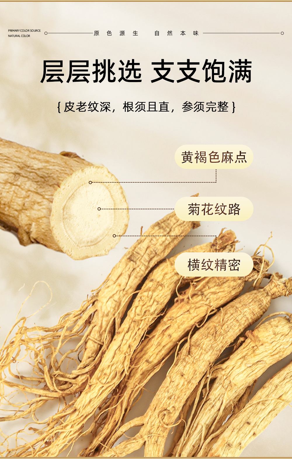 【吉林人参】单支(17-20g)长白山全须生晒参 无硫足干人参 家庭装炖汤专用
