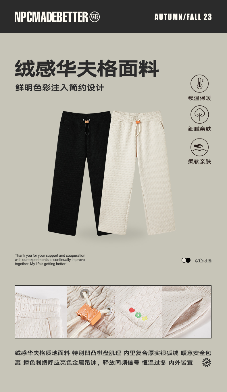 NPC潮牌彩色胶囊系列肌理棋盘格直筒休闲裤多巴胺男潮流NP39TR39